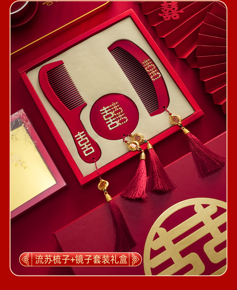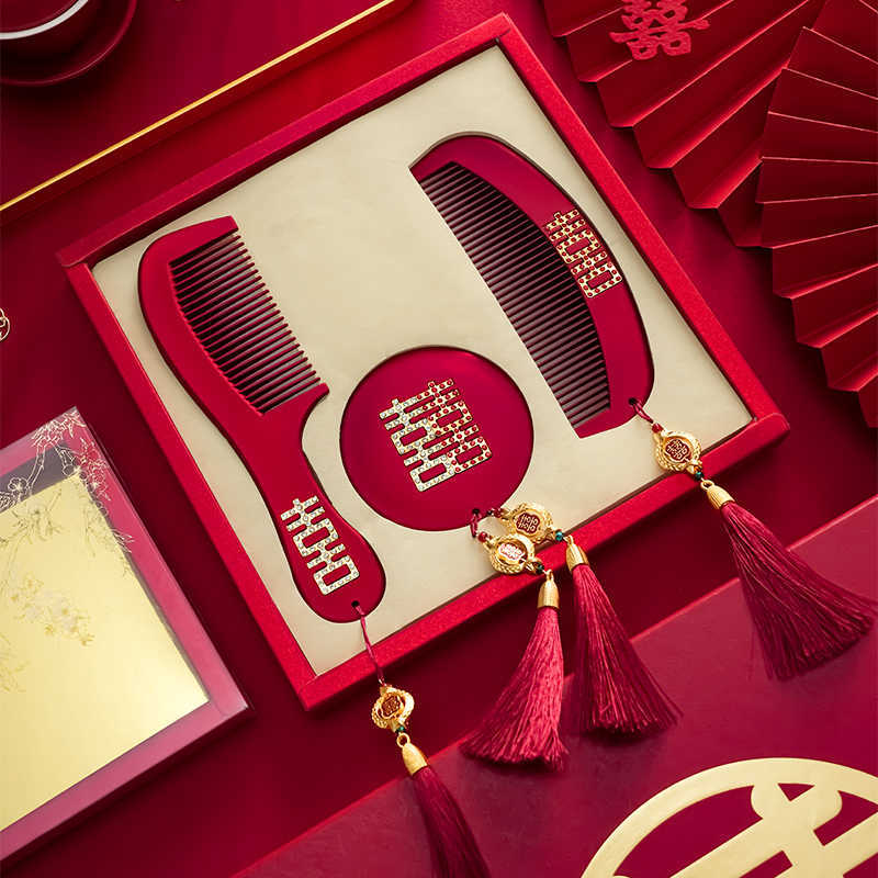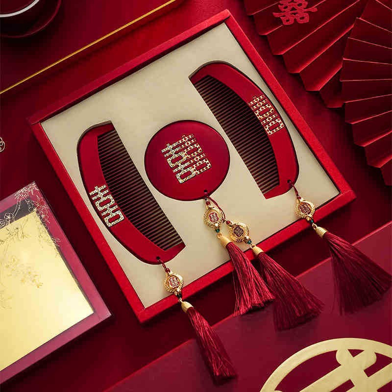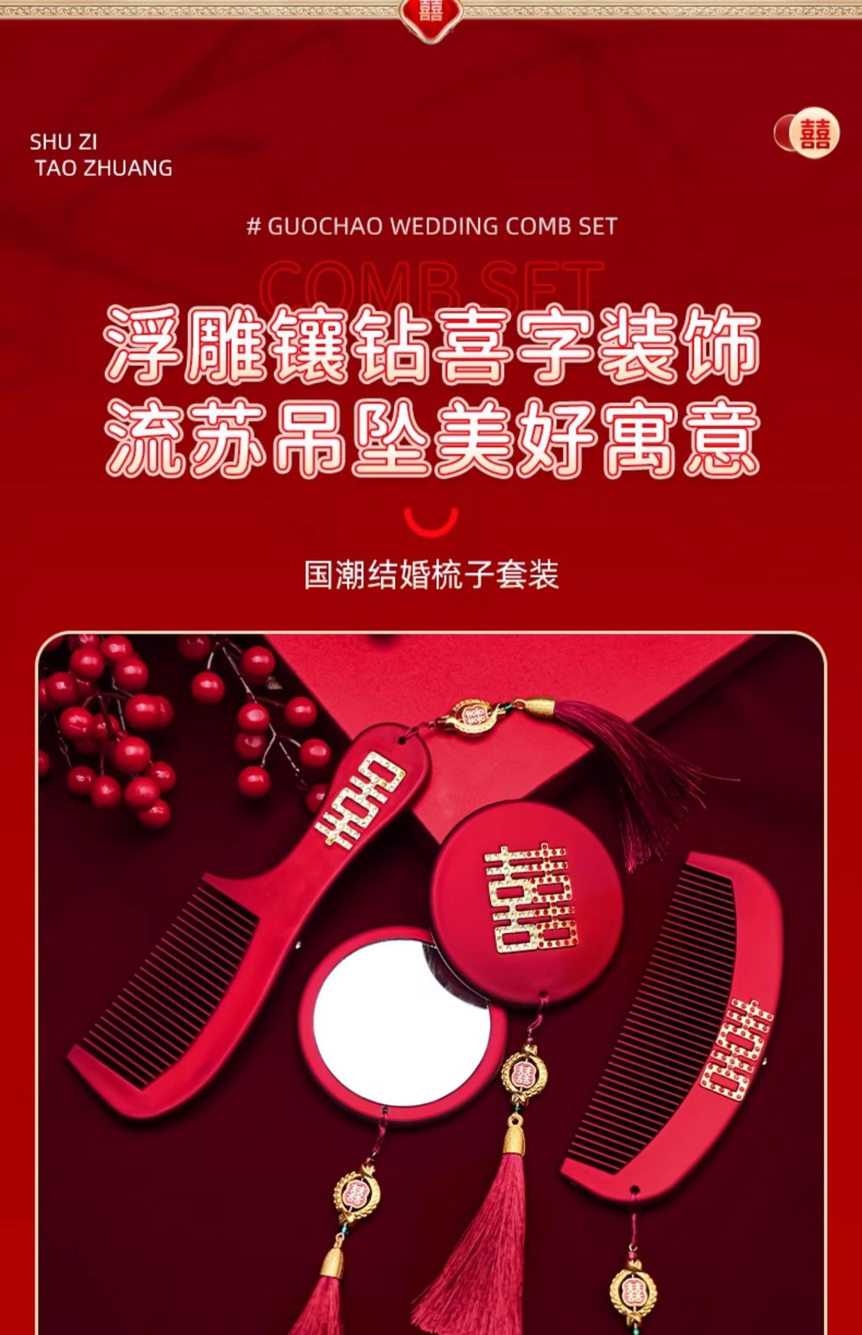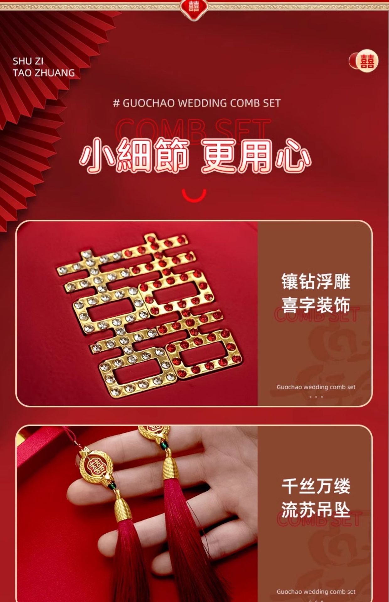 结婚喜梳婚礼陪嫁全套套装红色礼盒新人新娘礼物婚庆女方龙凤物品