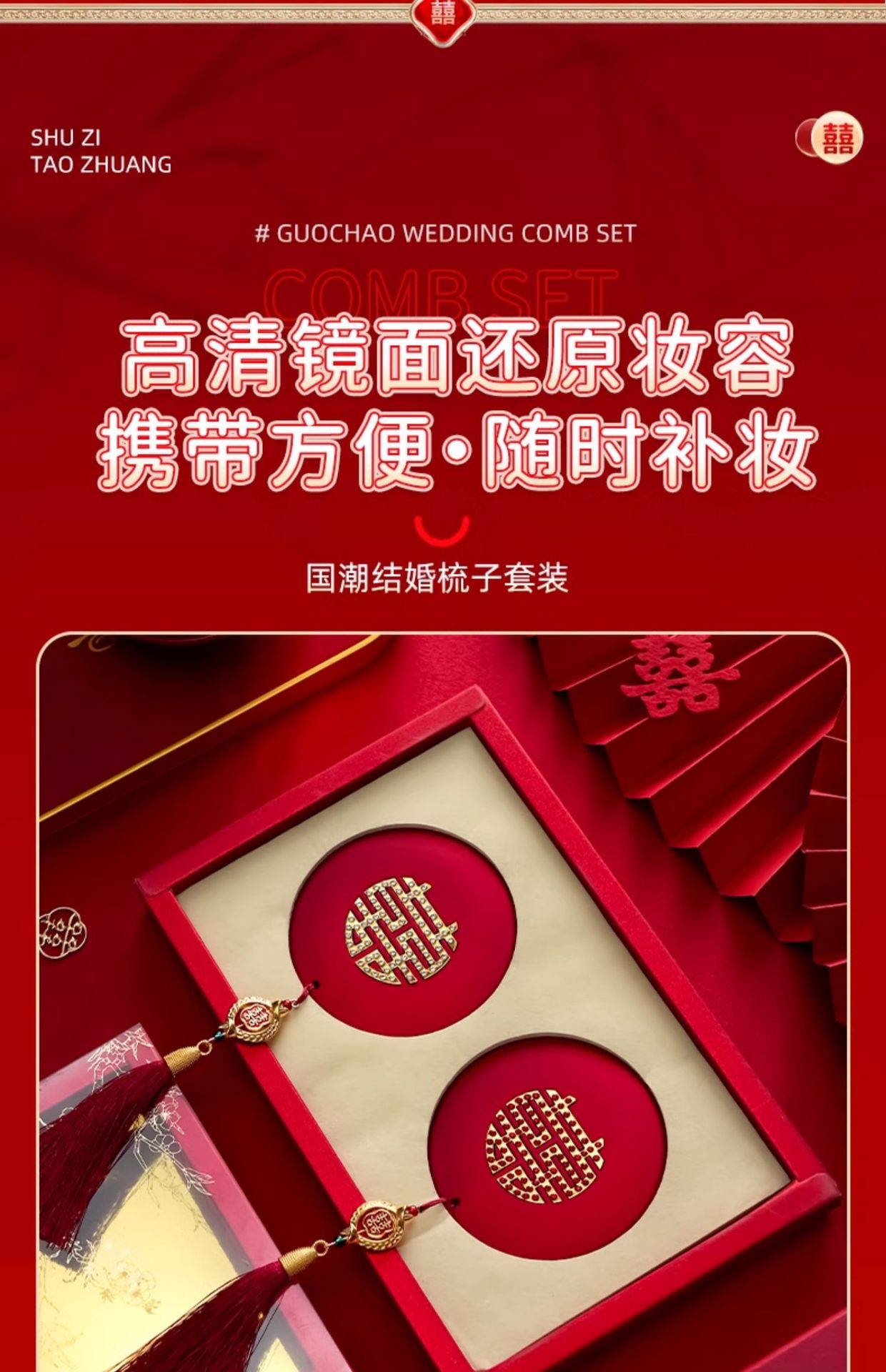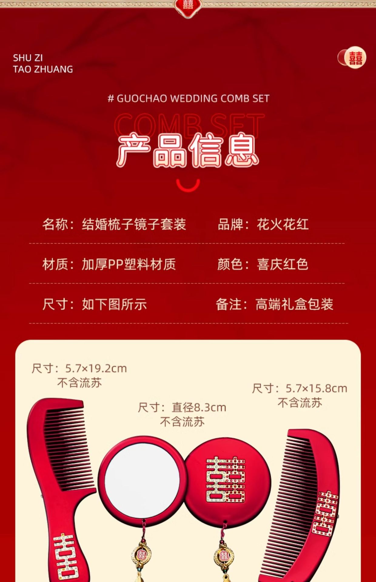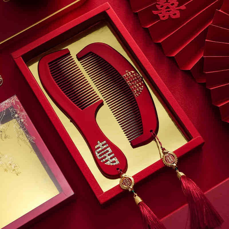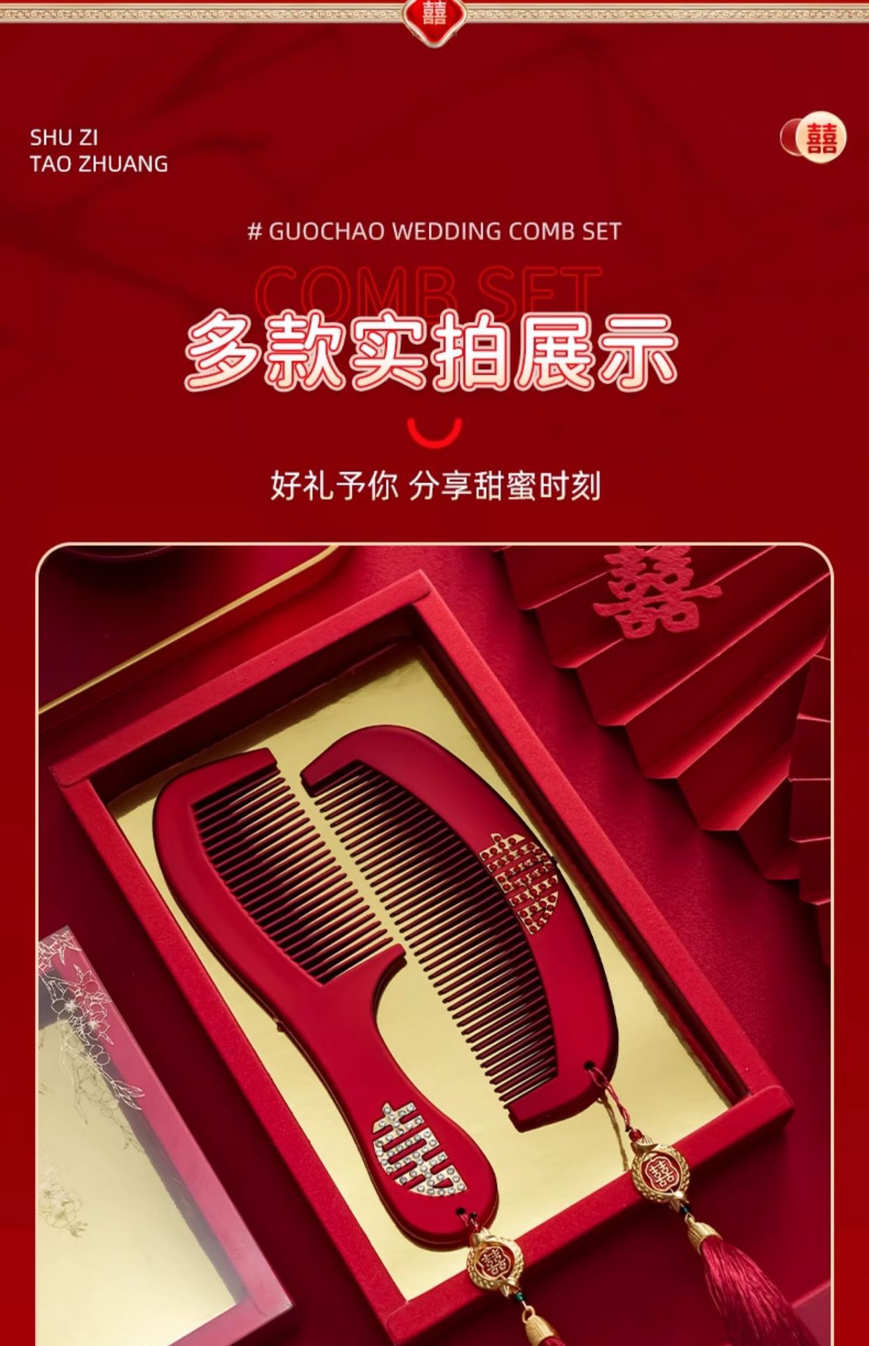 结婚喜梳婚礼陪嫁全套套装红色礼盒新人新娘礼物婚庆女方龙凤物品