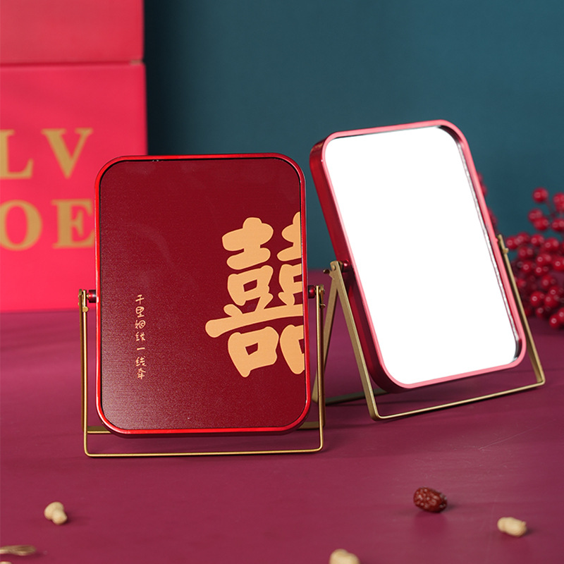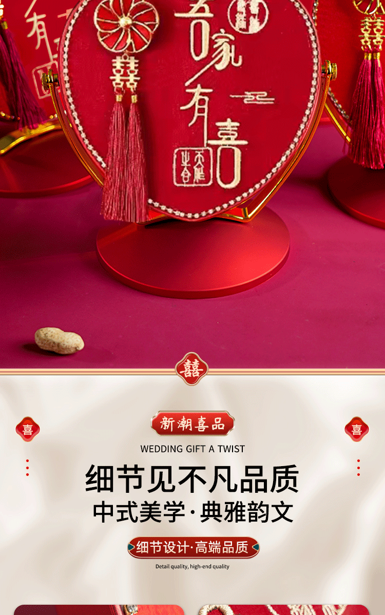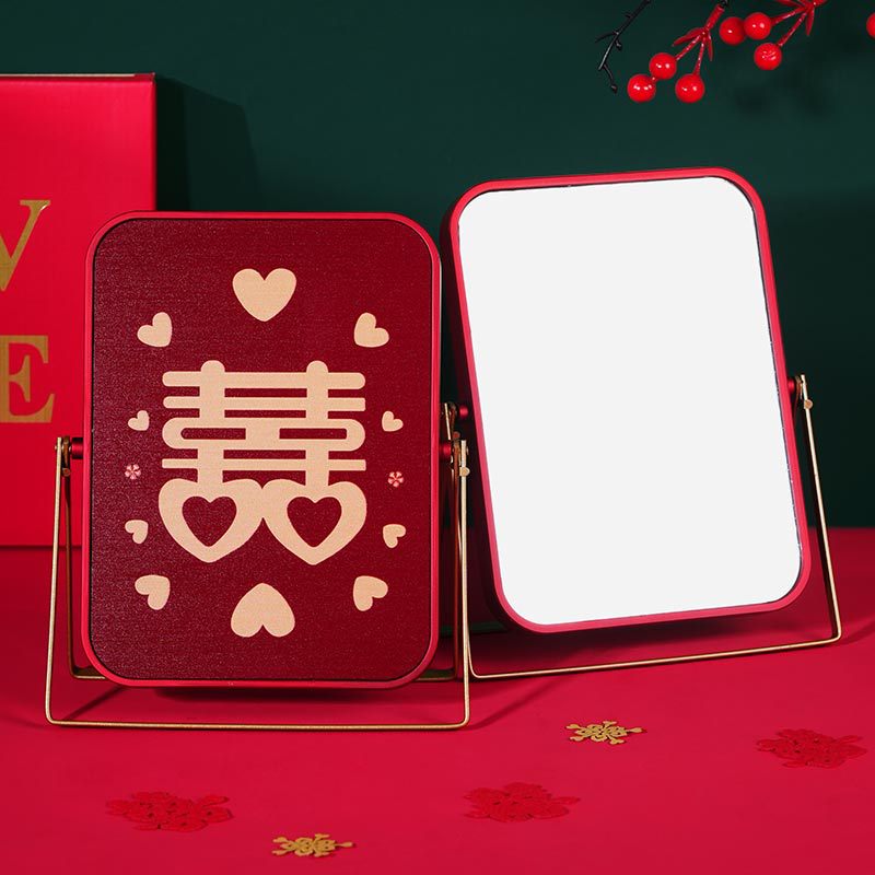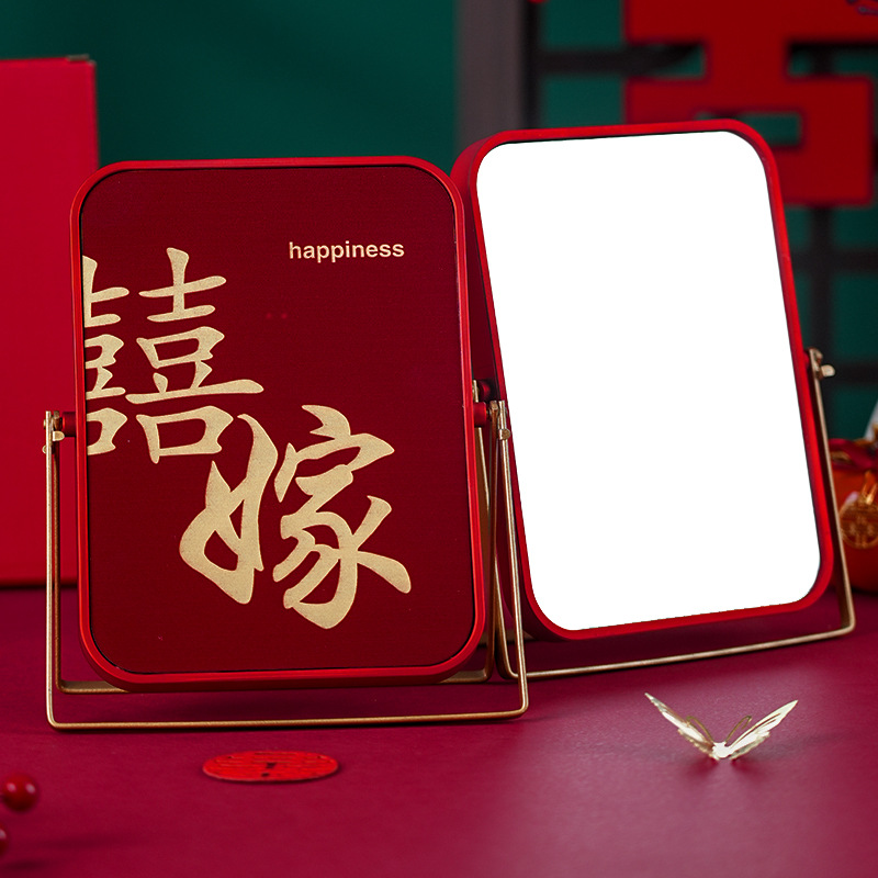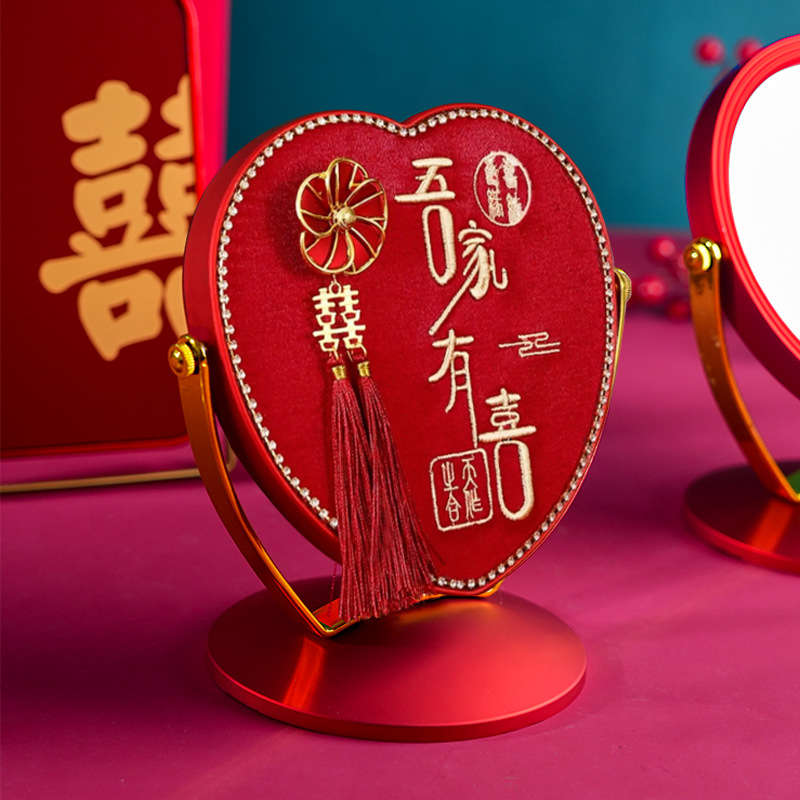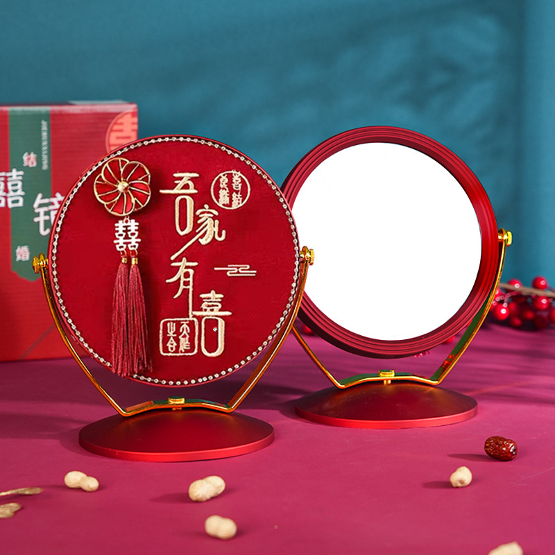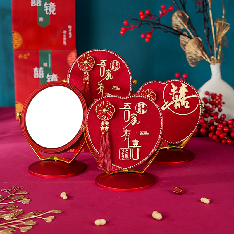 结婚陪嫁化妆镜子一对流苏红色新娘出嫁喜镜女方备婚婚庆用品大全