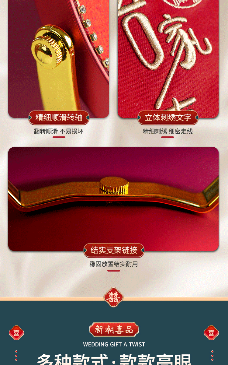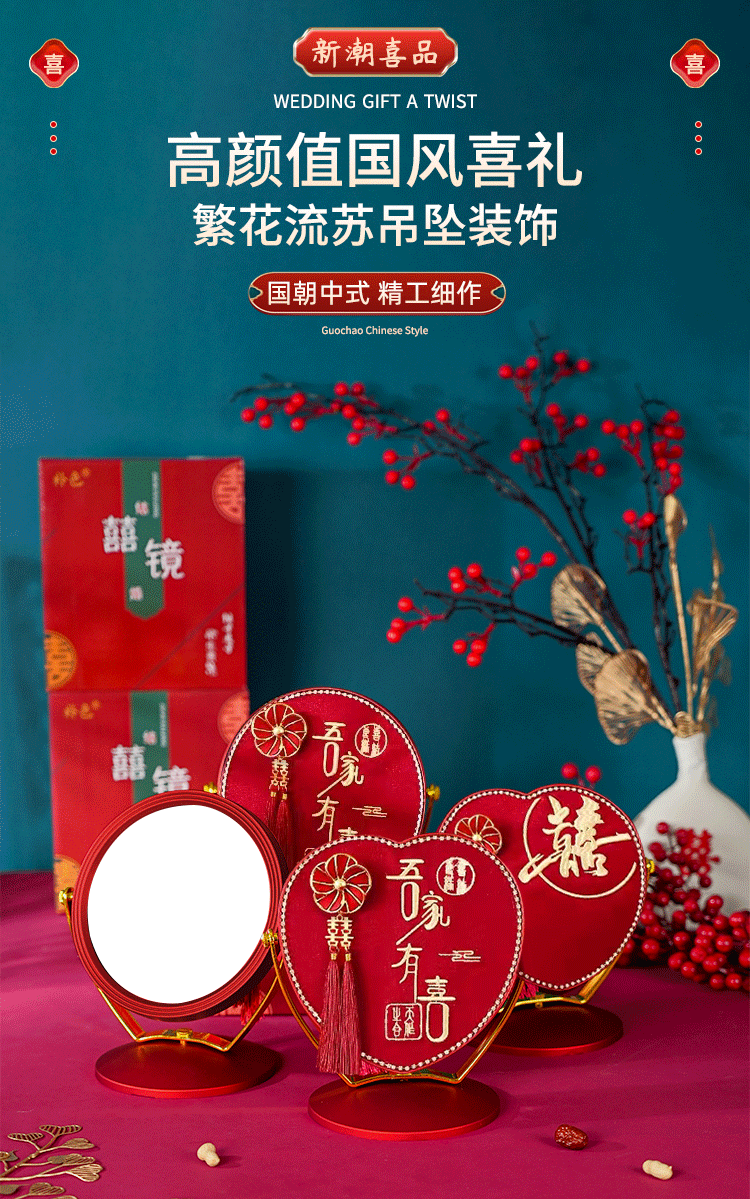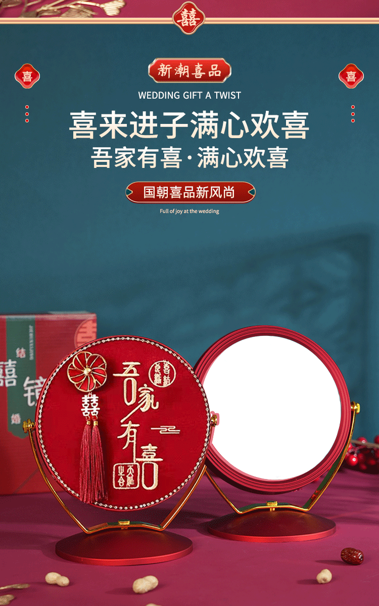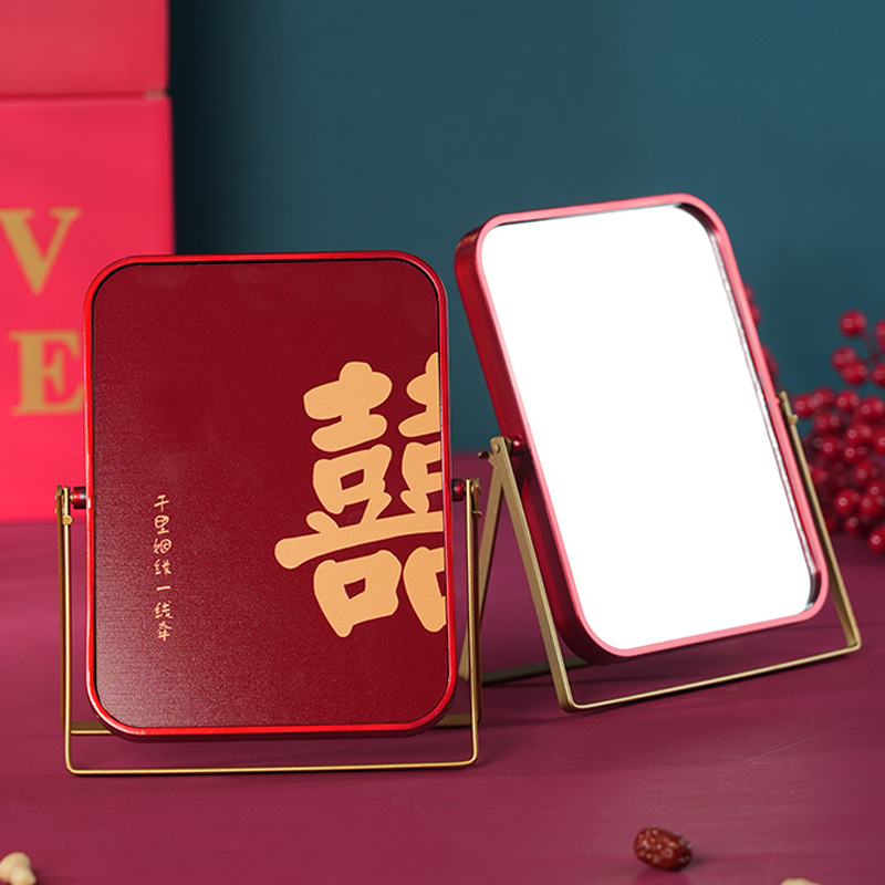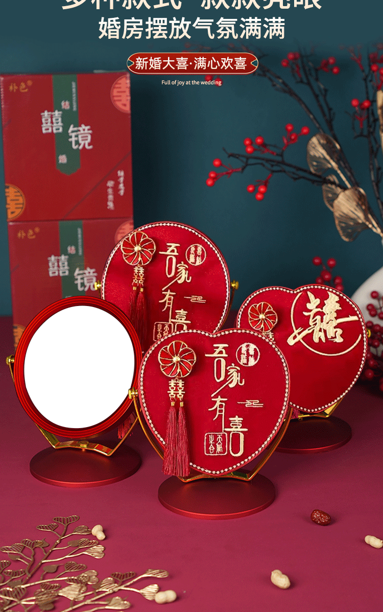 结婚陪嫁化妆镜子一对流苏红色新娘出嫁喜镜女方备婚婚庆用品大全