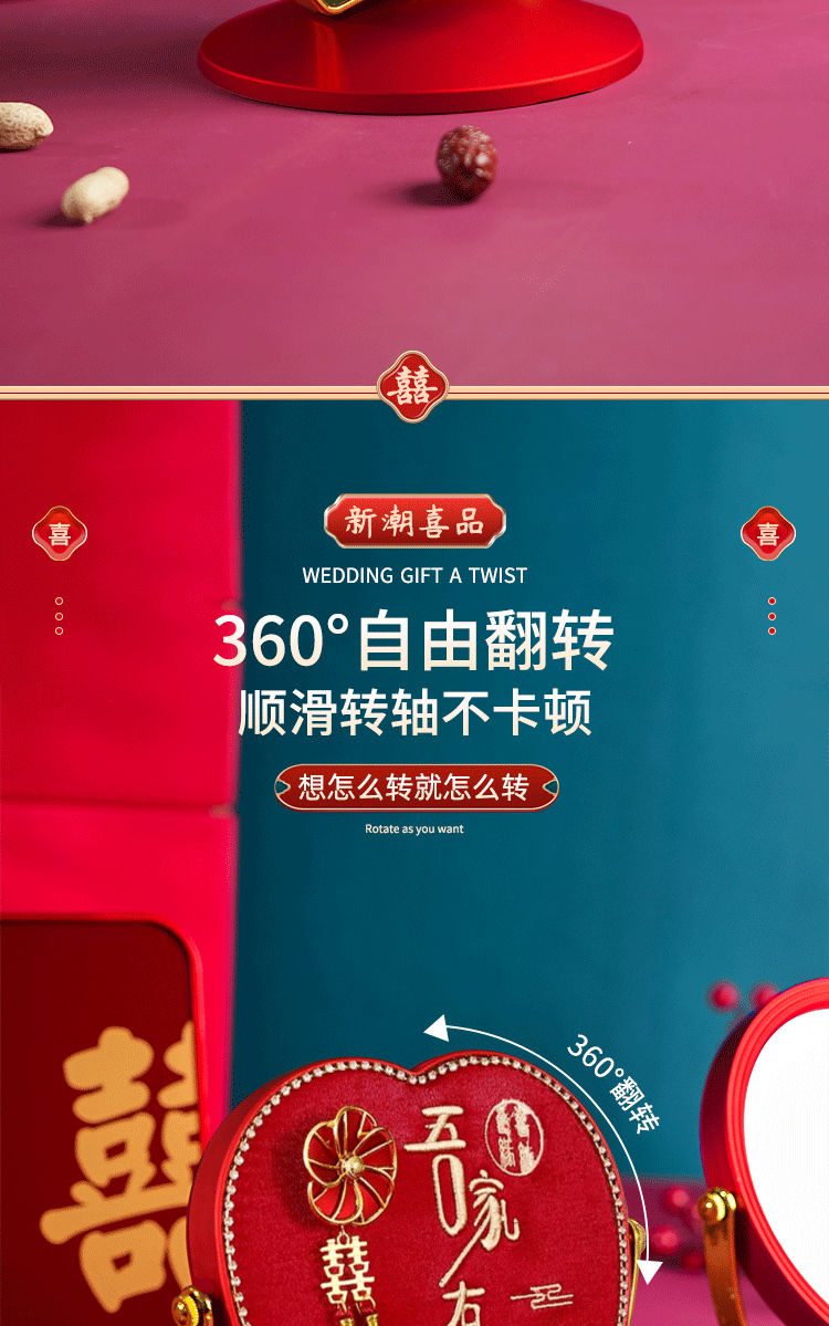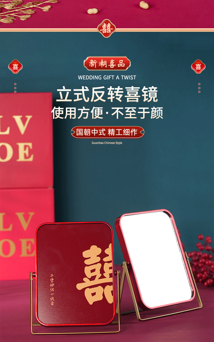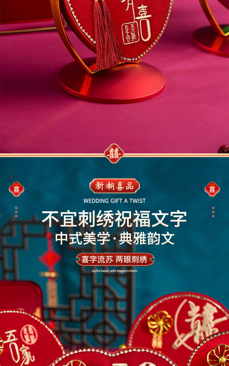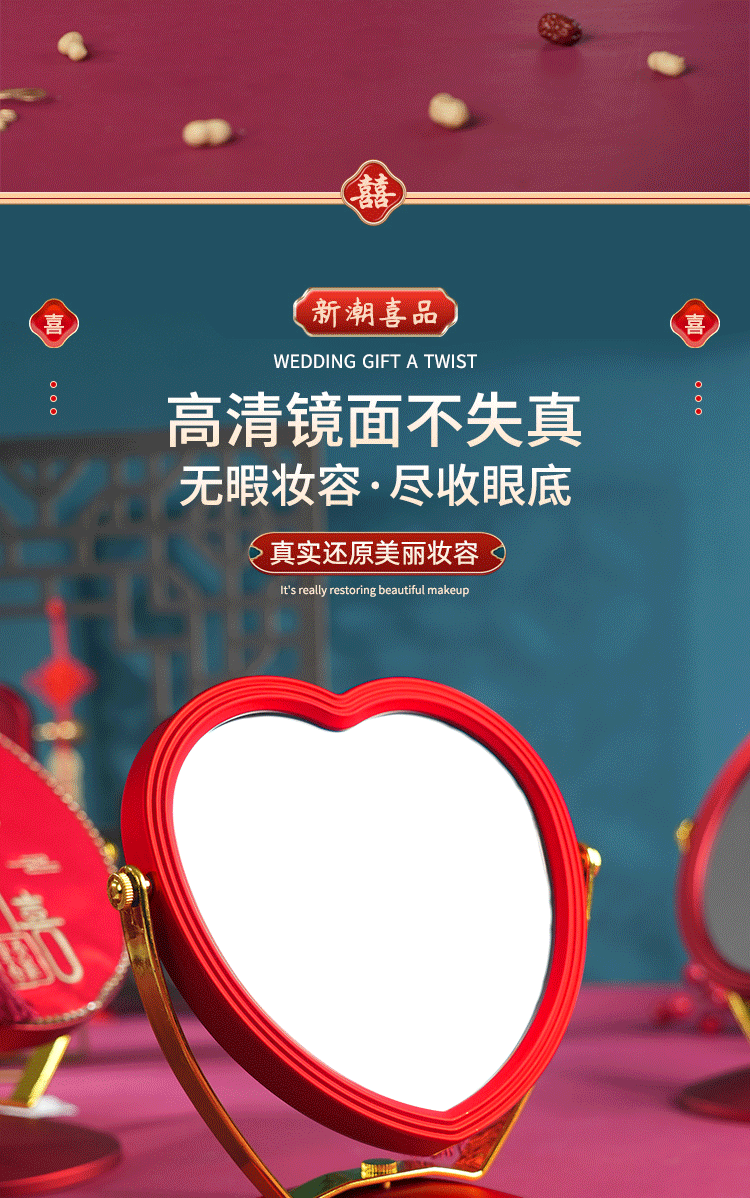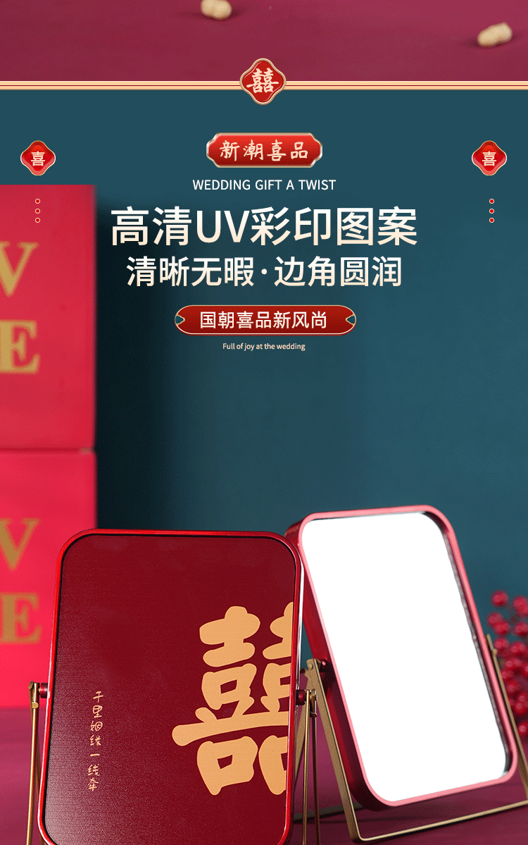 结婚陪嫁化妆镜子一对流苏红色新娘出嫁喜镜女方备婚婚庆用品大全