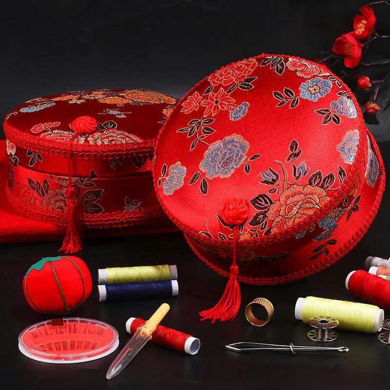 结婚针线盒套装男女方陪嫁多功能针线包家用大红针线包针线收纳盒