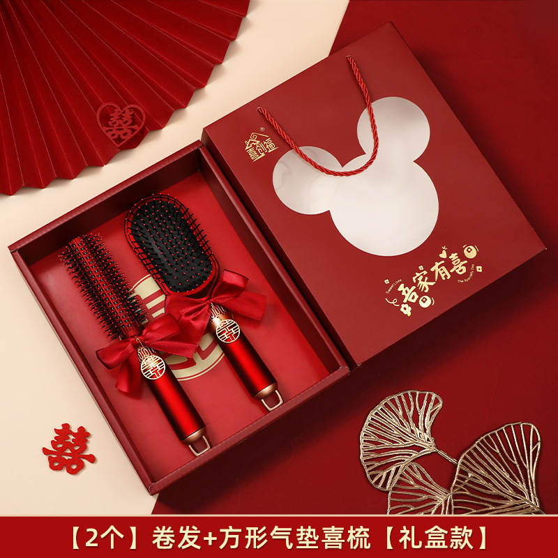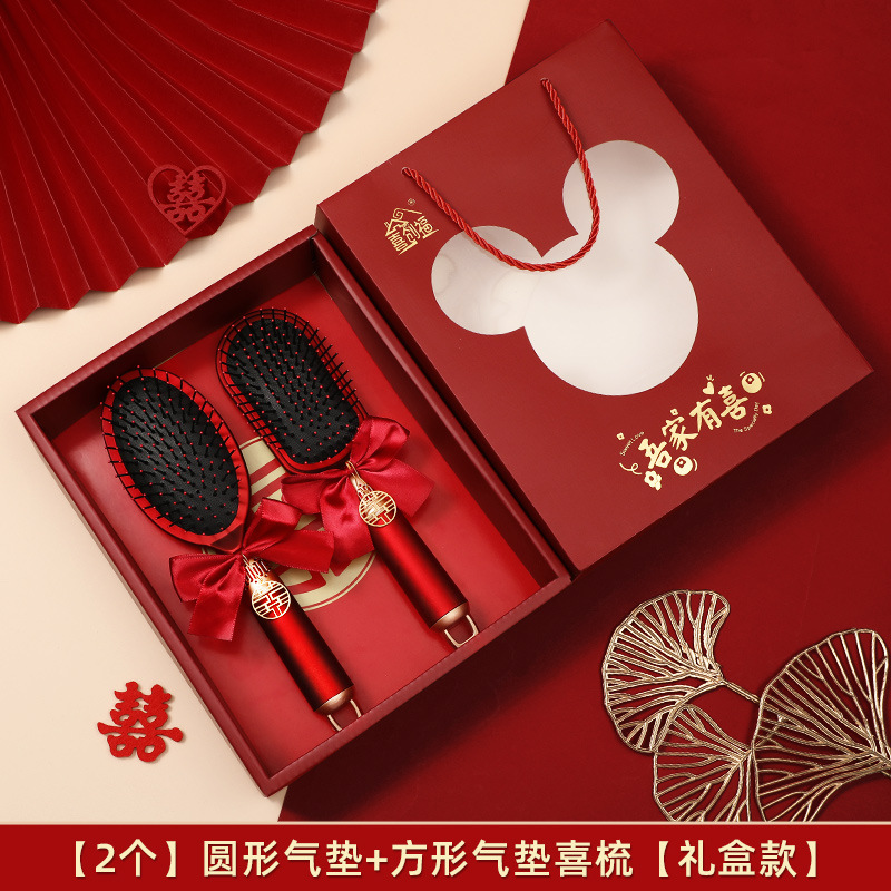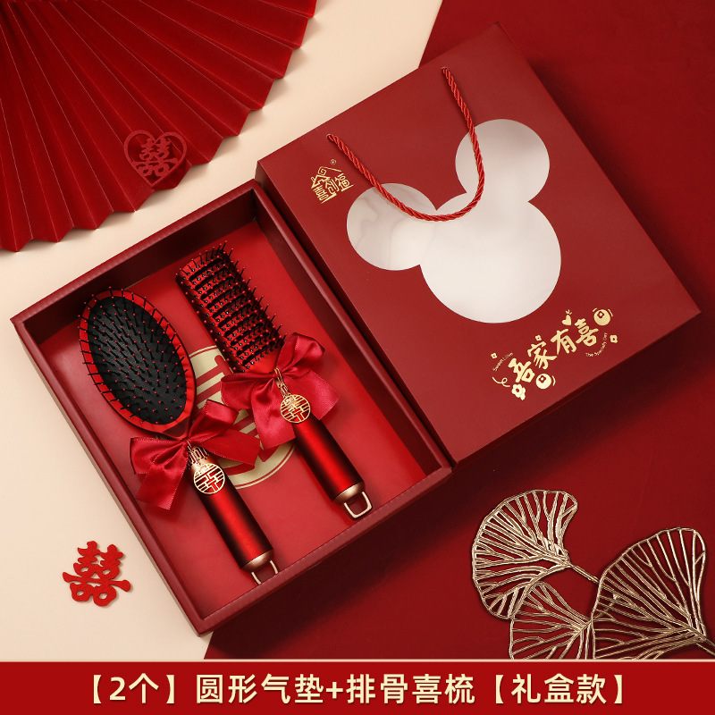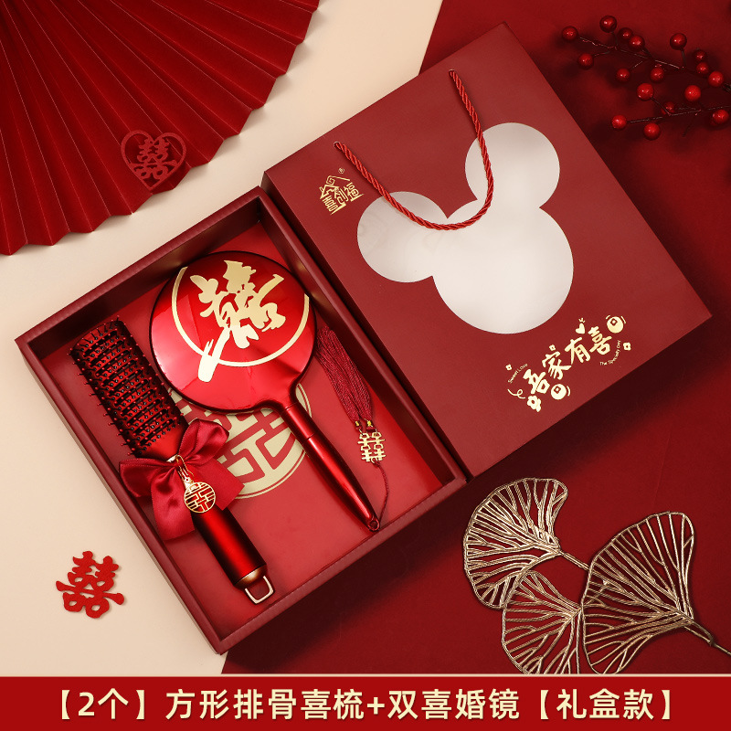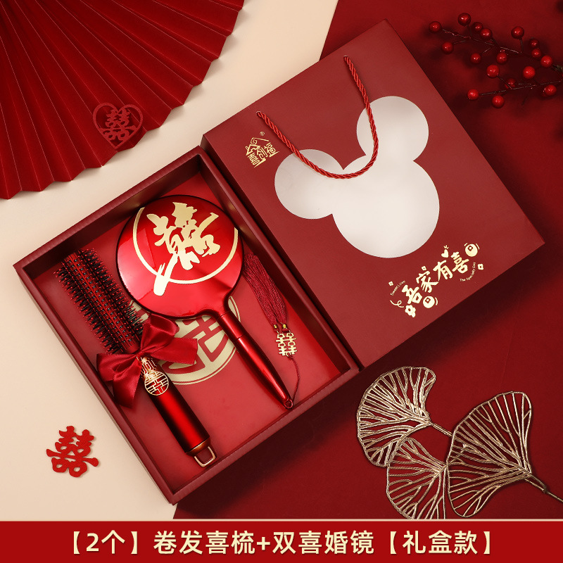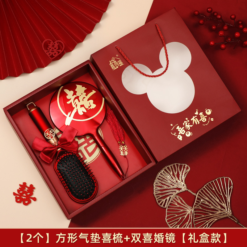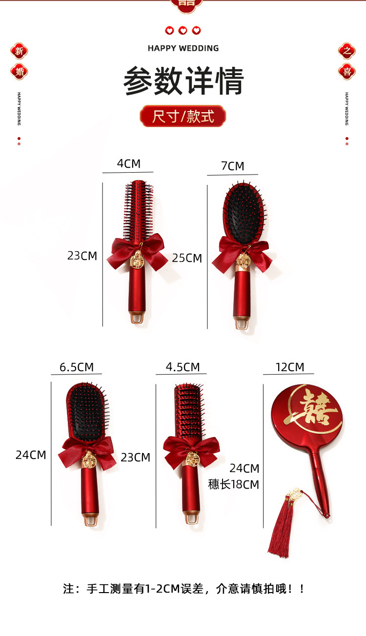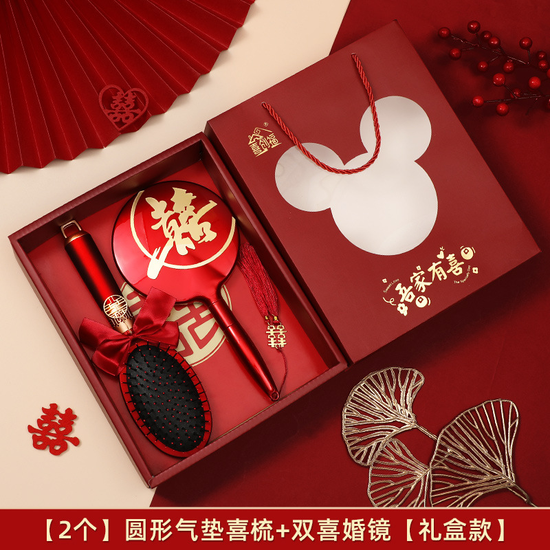 梳子结婚一对镜子陪嫁红色气垫梳喜木梳套装嫁妆物品女方全套用品