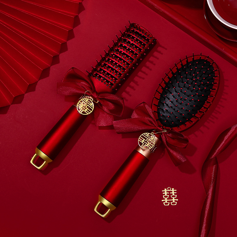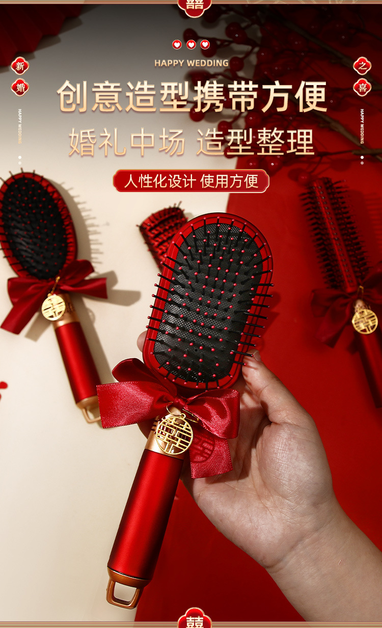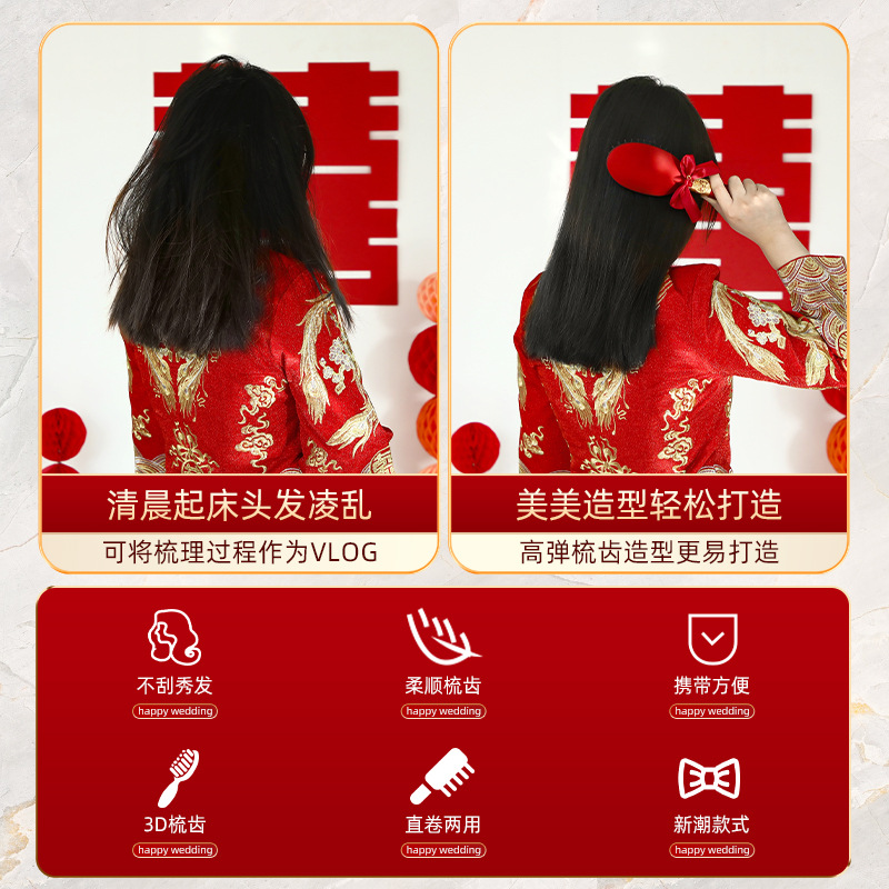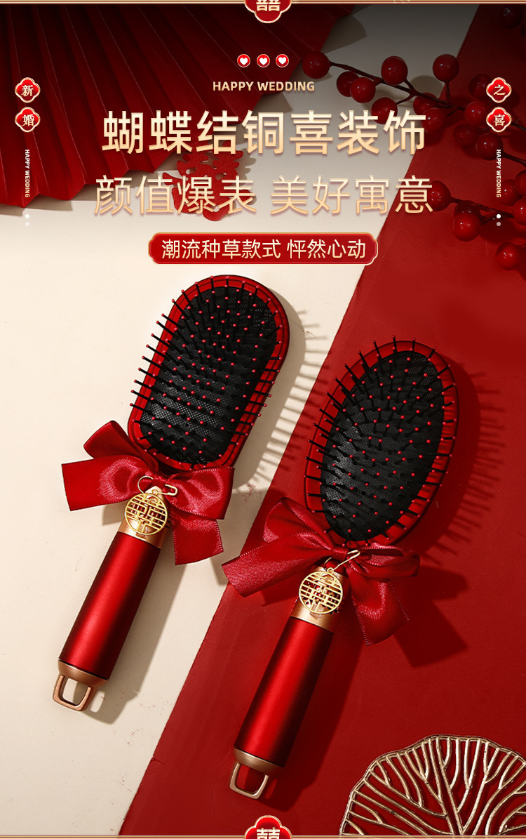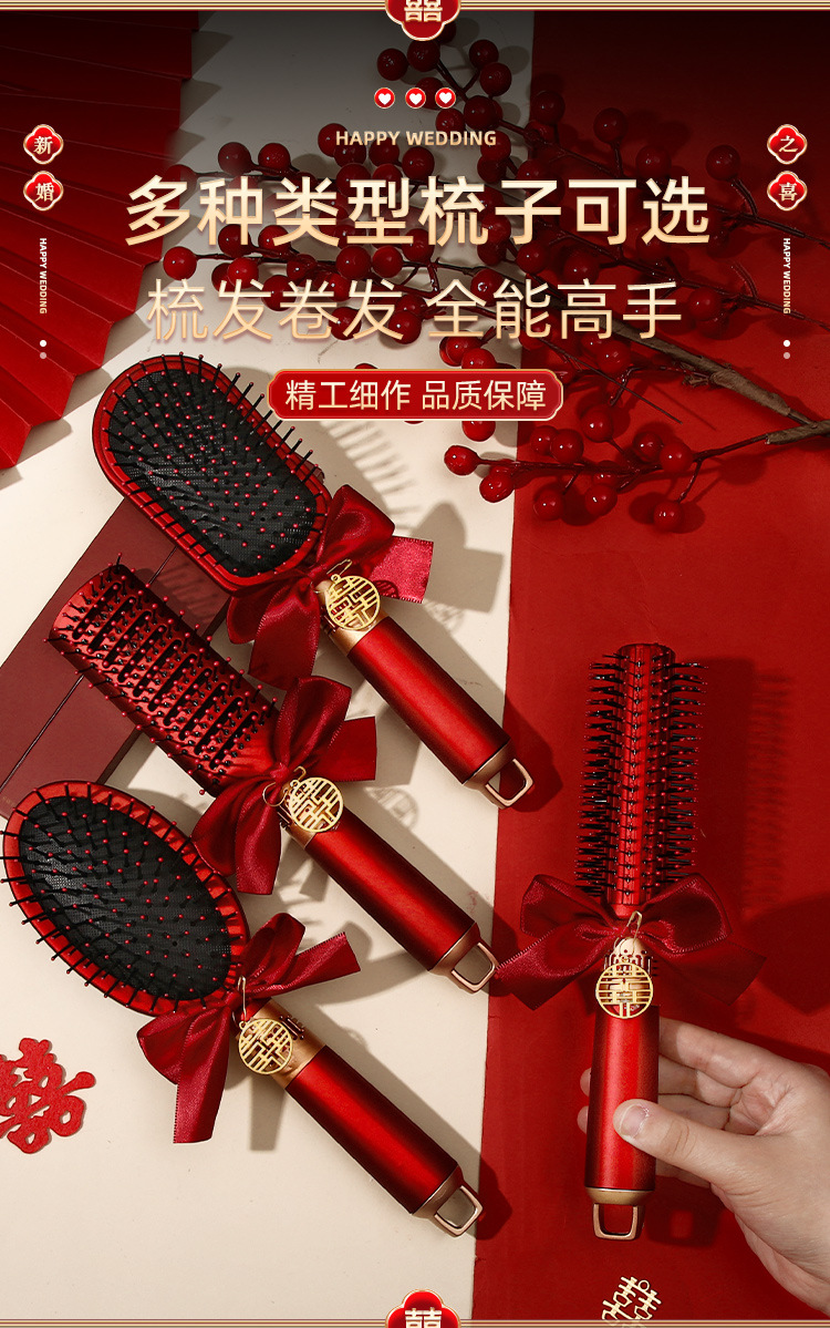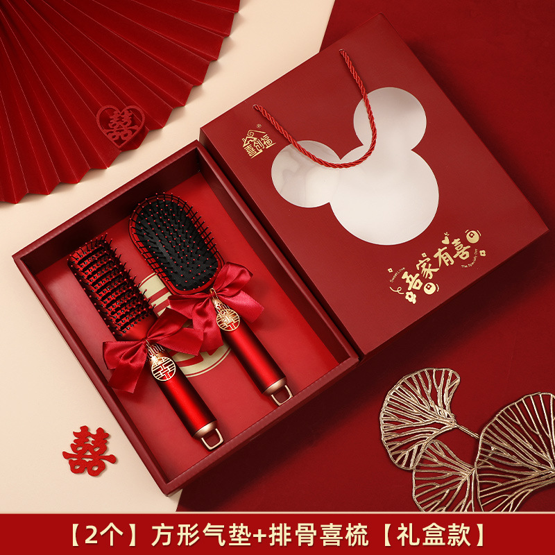 梳子结婚一对镜子陪嫁红色气垫梳喜木梳套装嫁妆物品女方全套用品