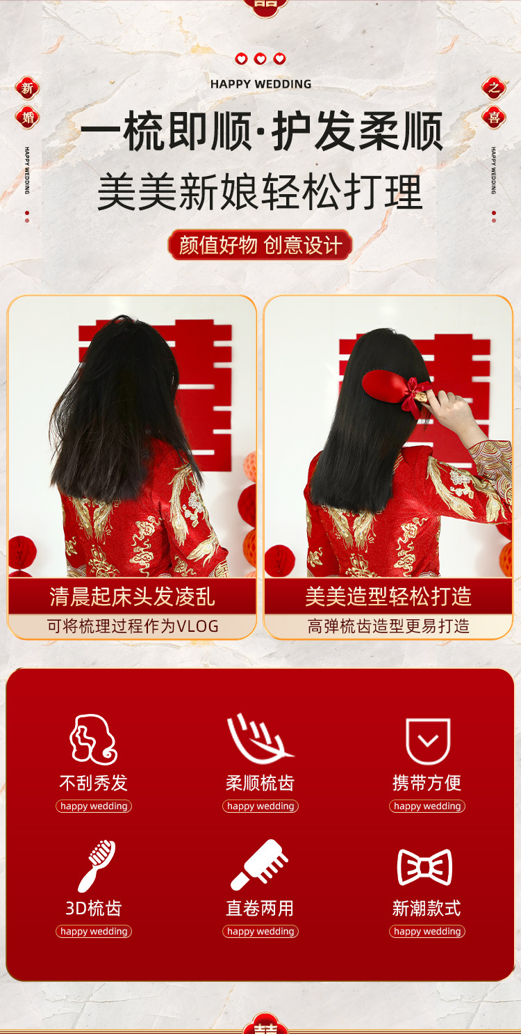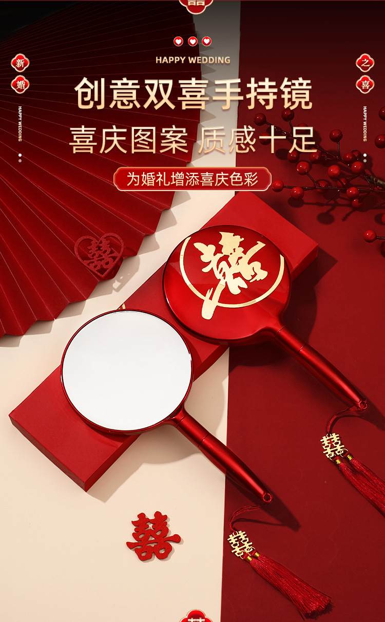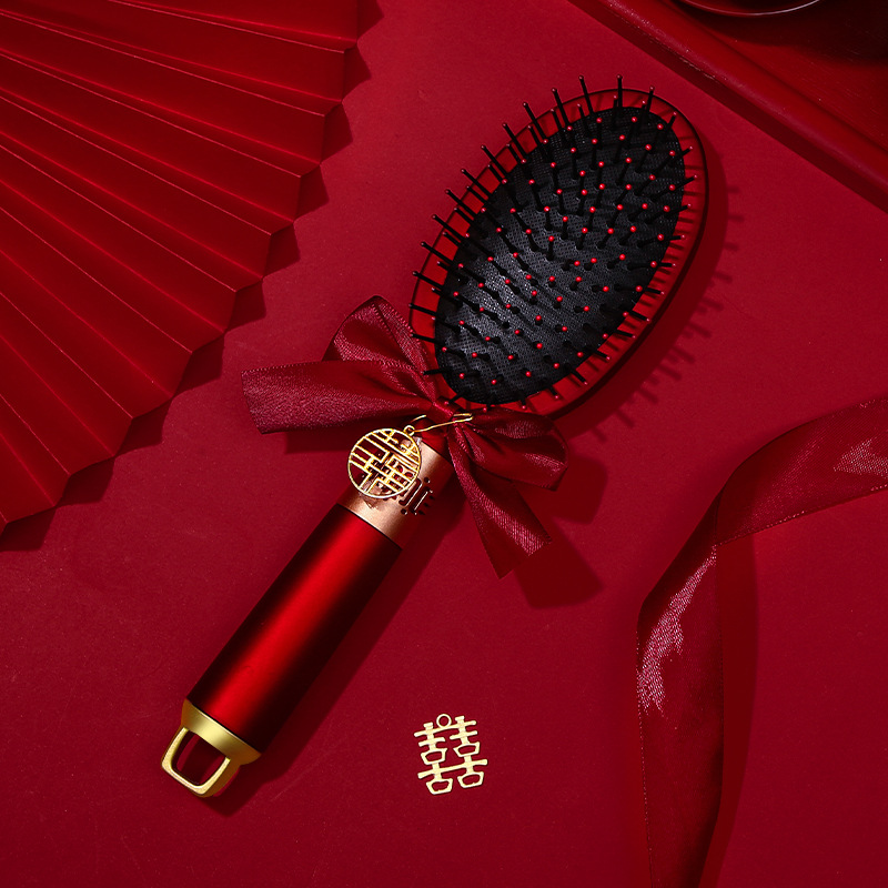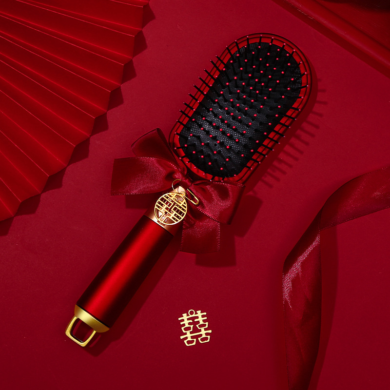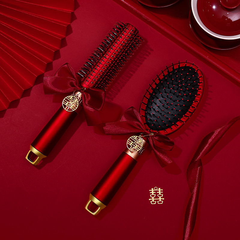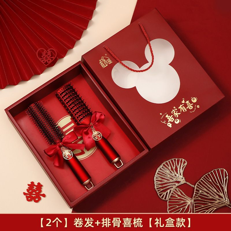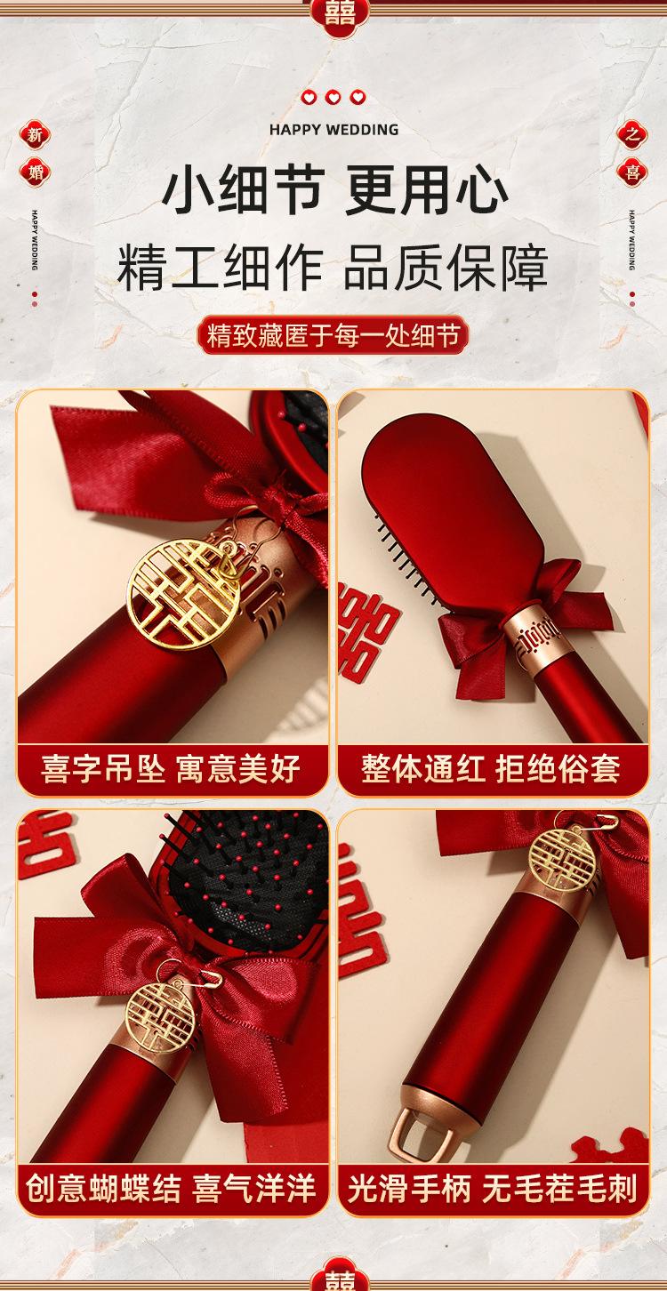 梳子结婚一对镜子陪嫁红色气垫梳喜木梳套装嫁妆物品女方全套用品