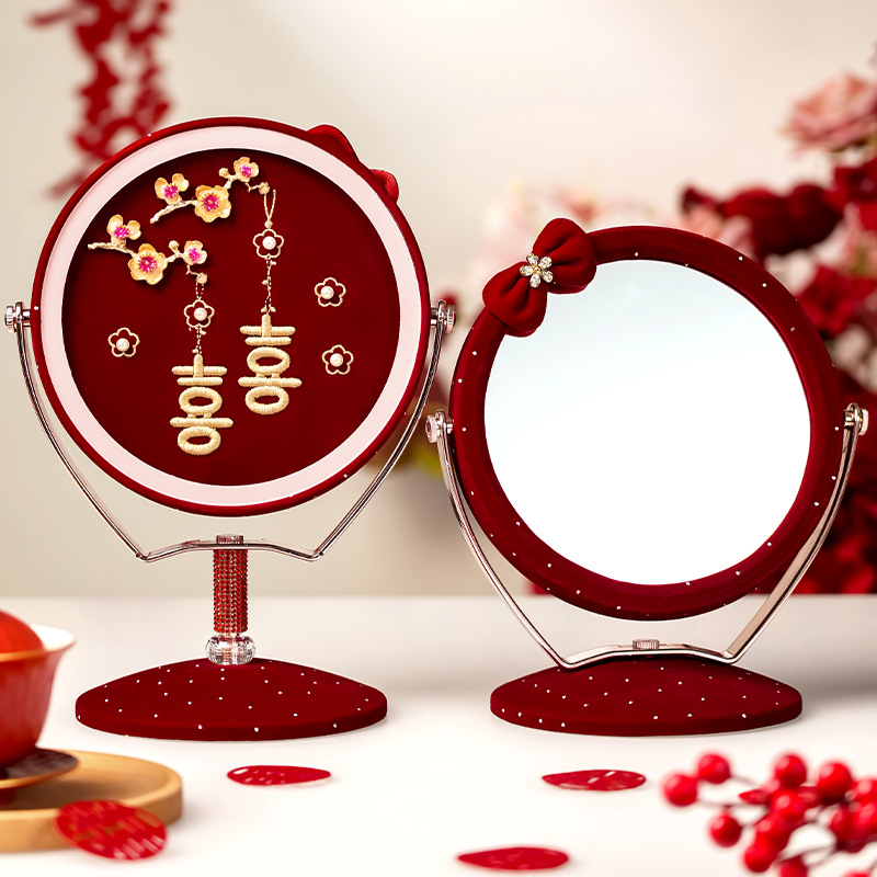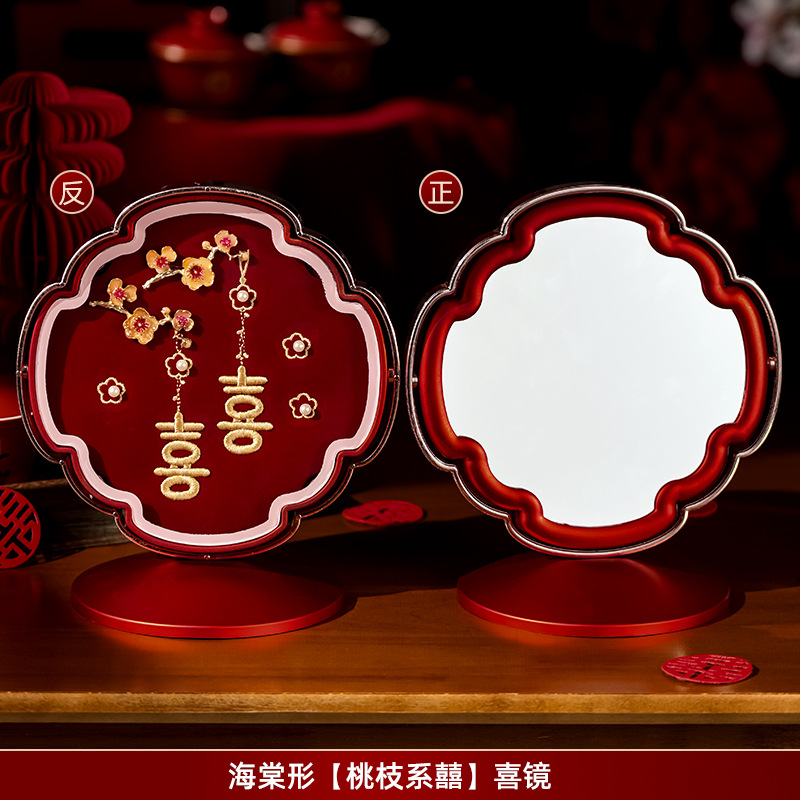 结婚红色镜子套装新娘女方陪嫁出嫁喜庆化妆喜镜备婚婚庆用品大全