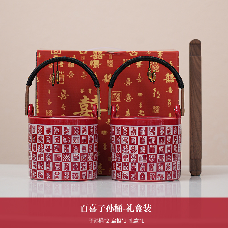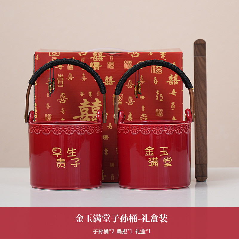 结婚子孙桶婚礼陪嫁用品大全出嫁用喜事陶瓷摆件娘家女方嫁妆宝桶