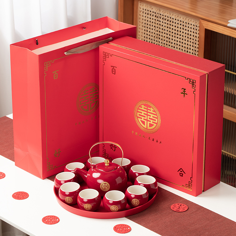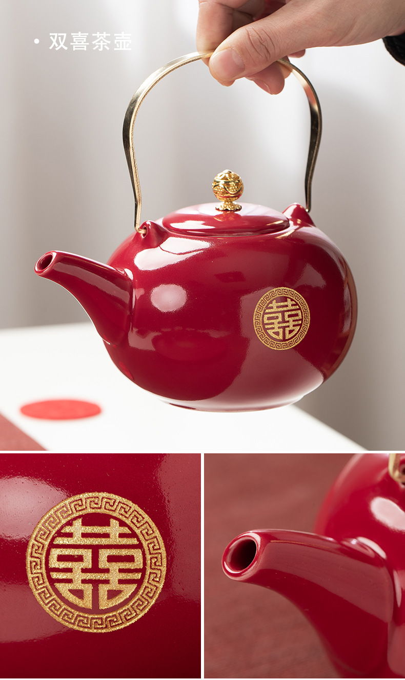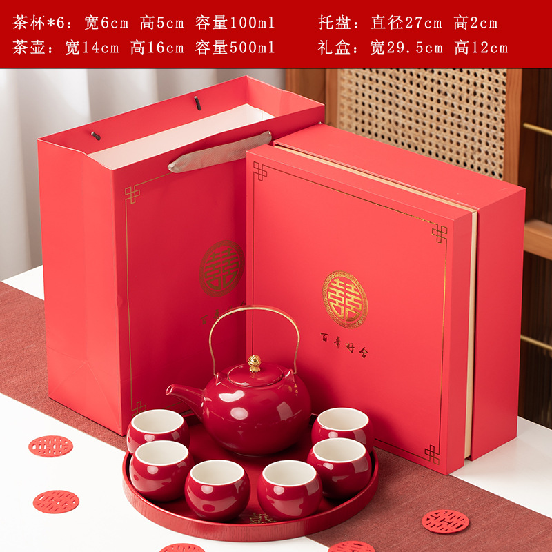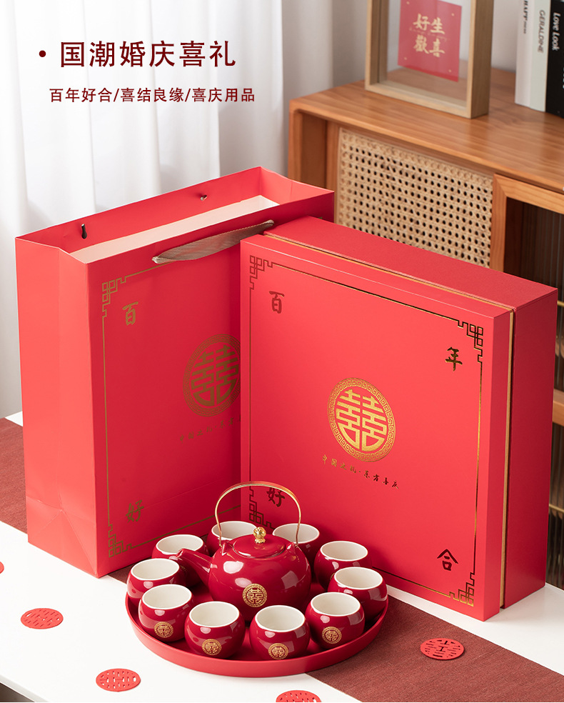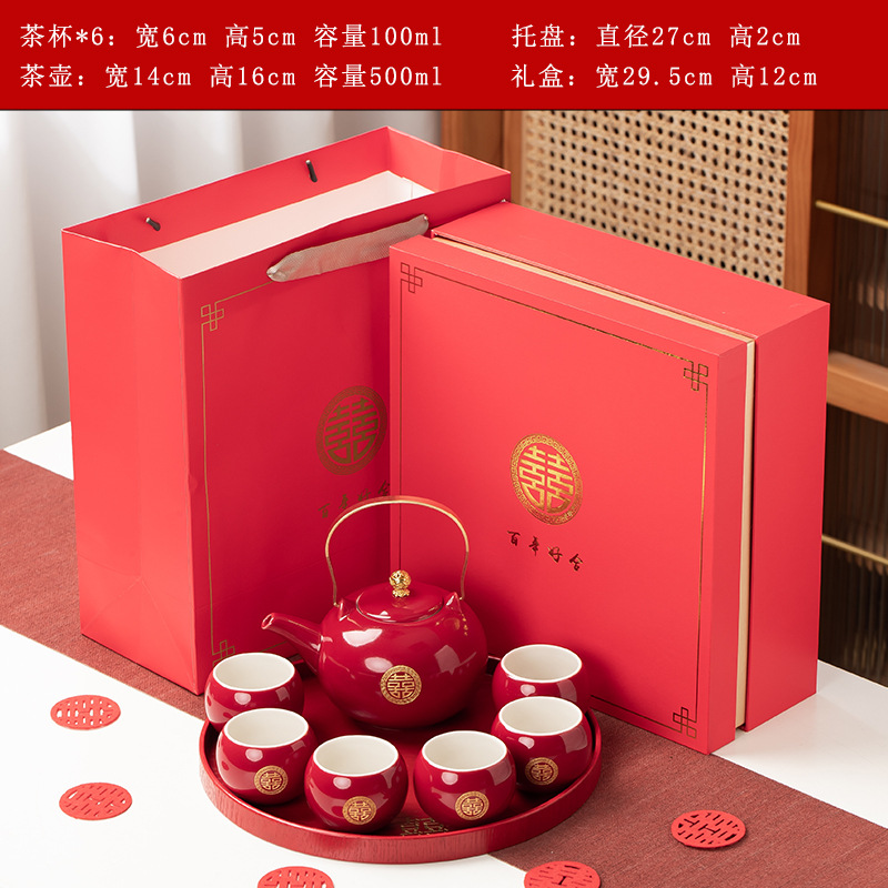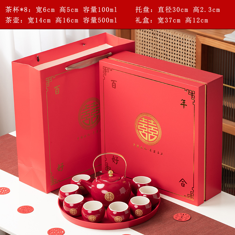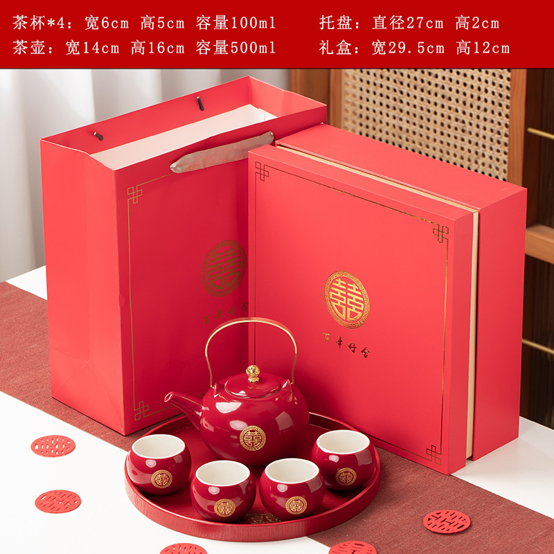 结婚茶具套装红色陪嫁用品婚庆双喜杯创意礼品新人改口敬茶杯子