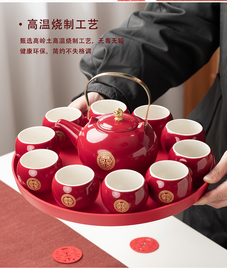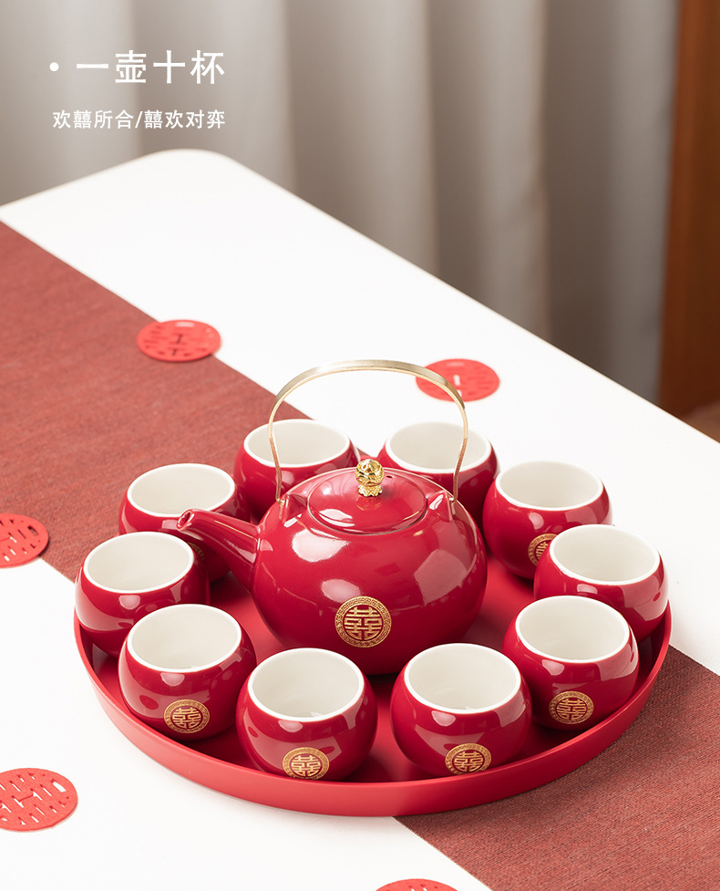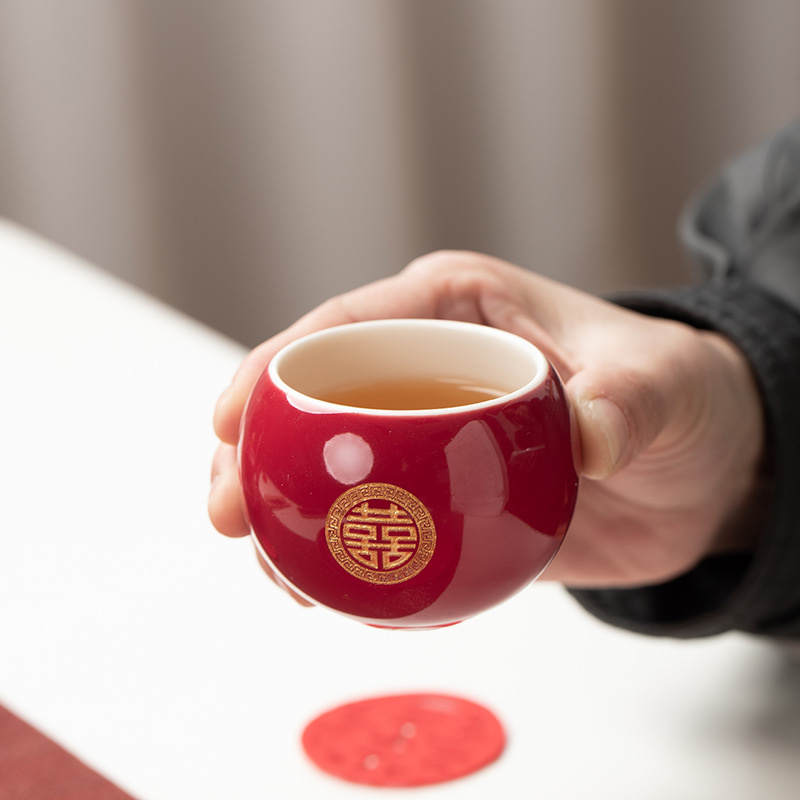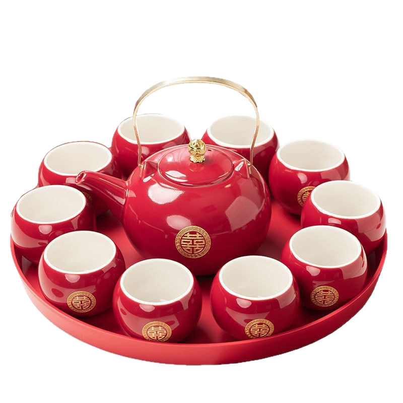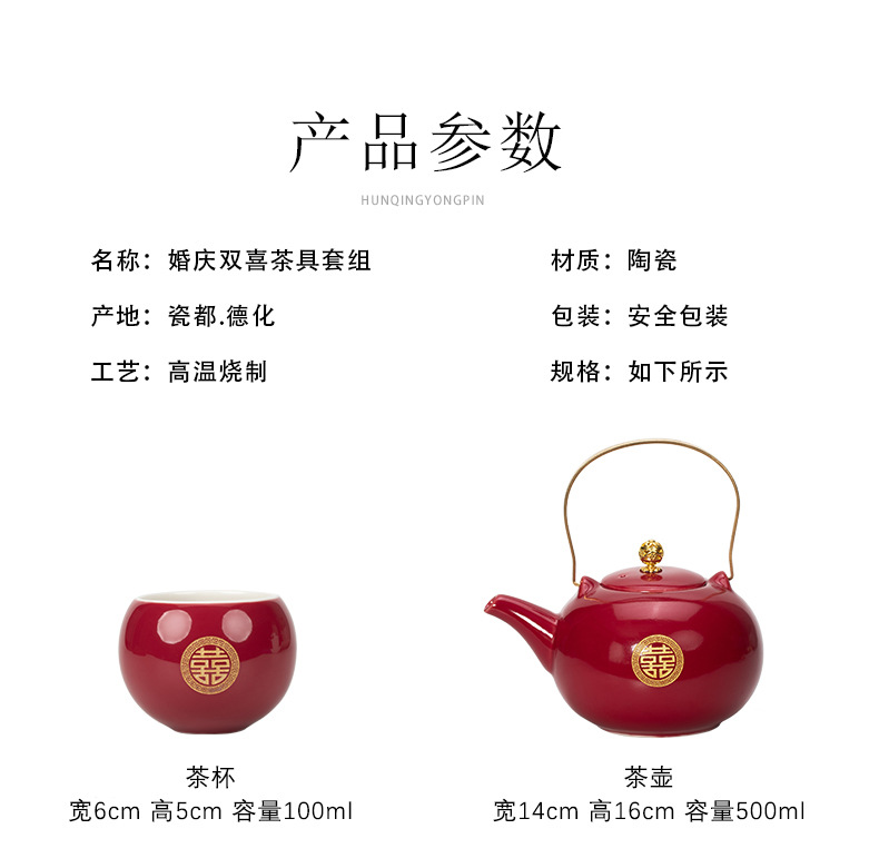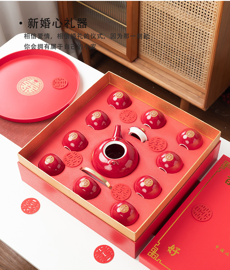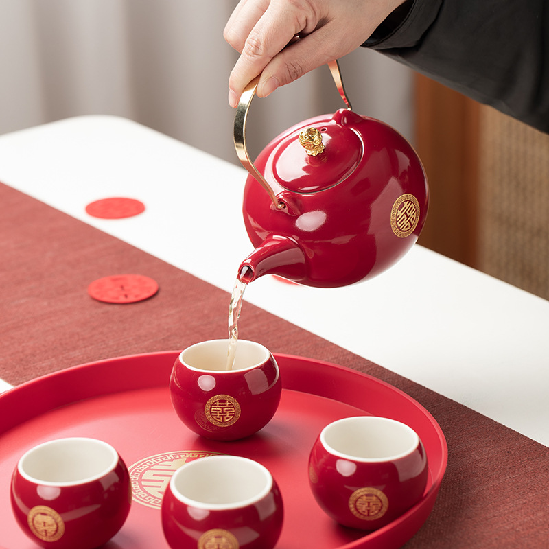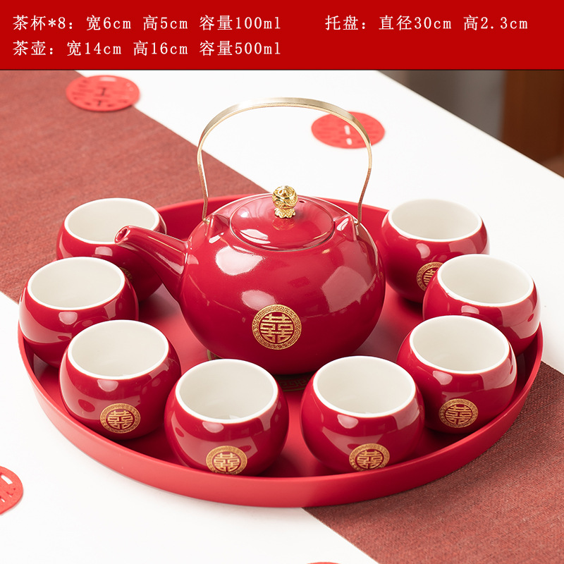 结婚茶具套装红色陪嫁用品婚庆双喜杯创意礼品新人改口敬茶杯子