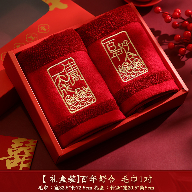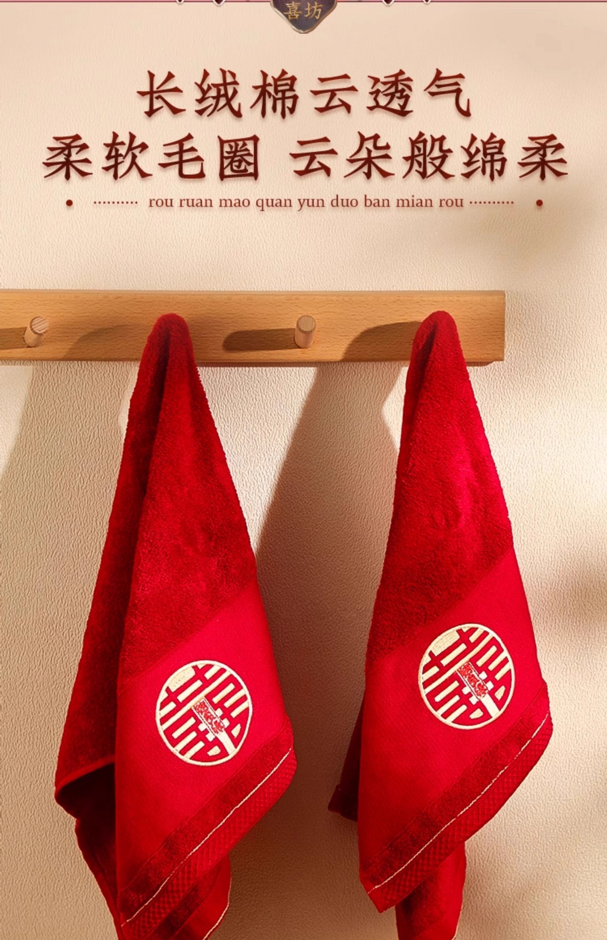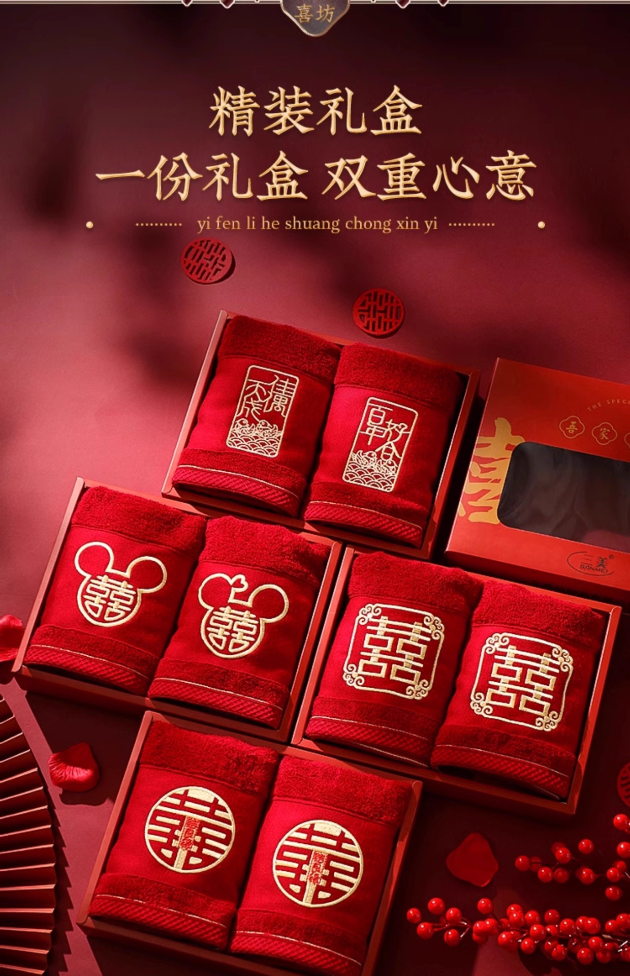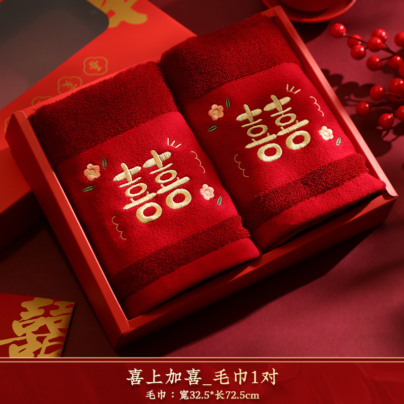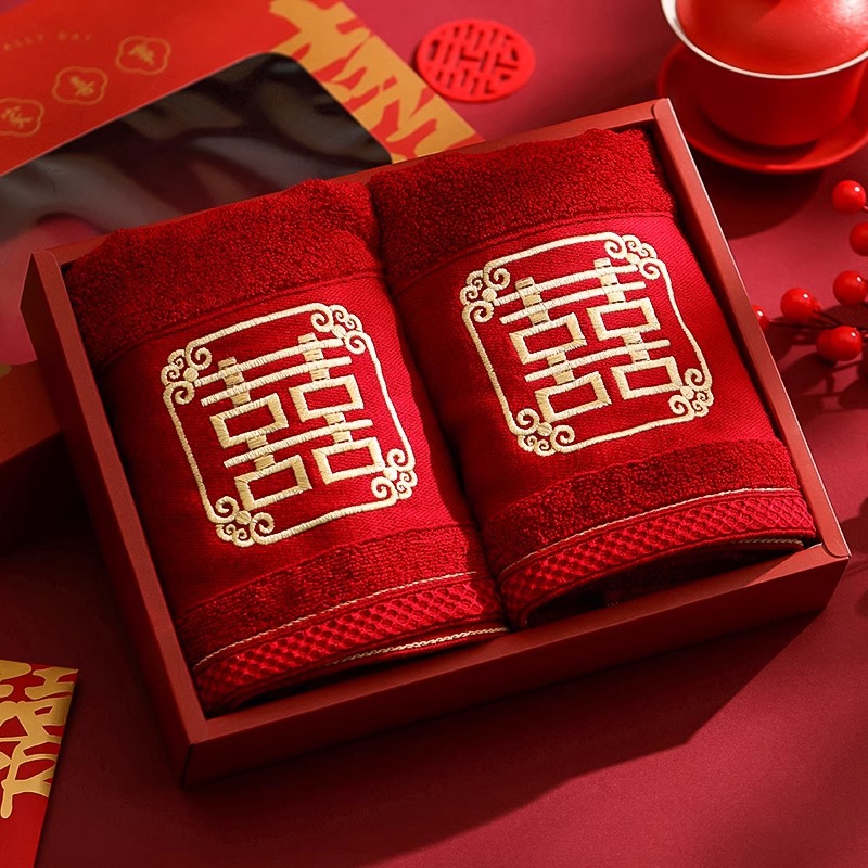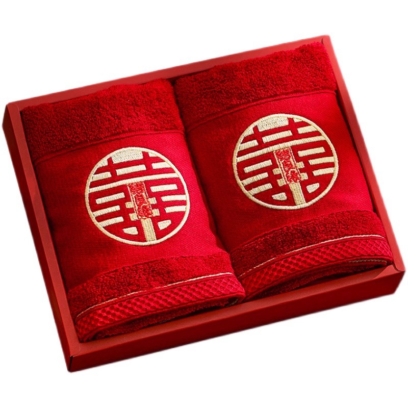 结婚毛巾订婚新婚一对红色喜字喜事用女方陪嫁洗脸用品回礼伴手礼