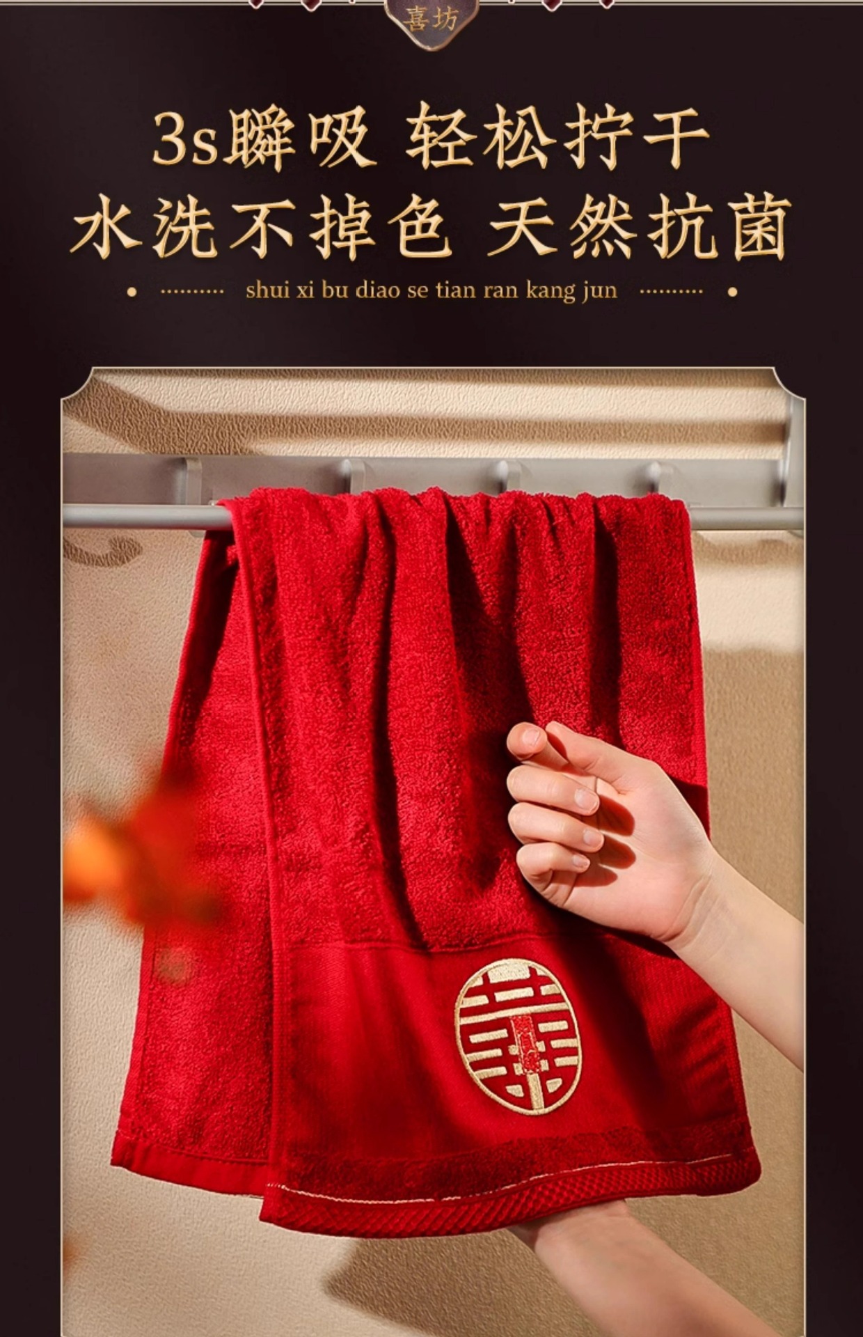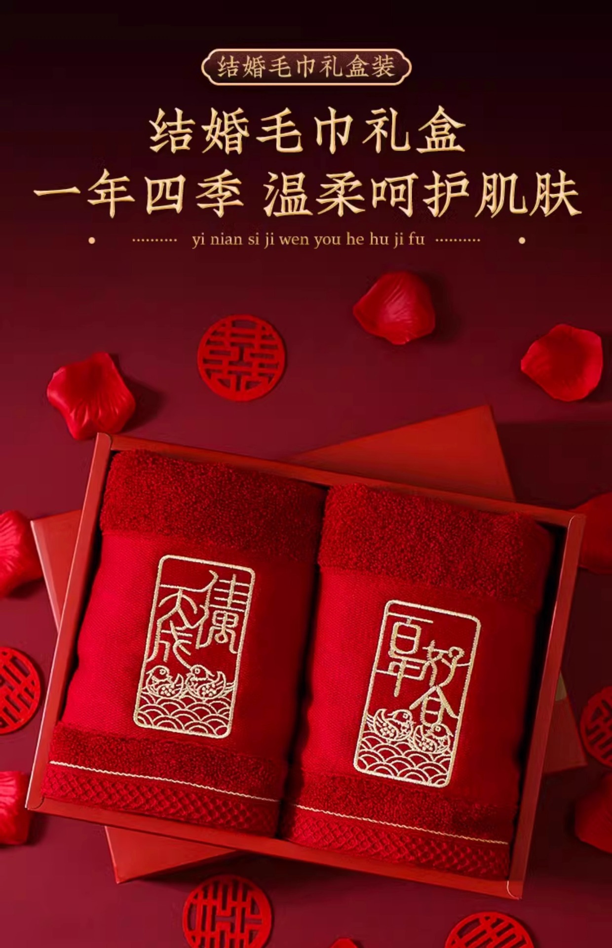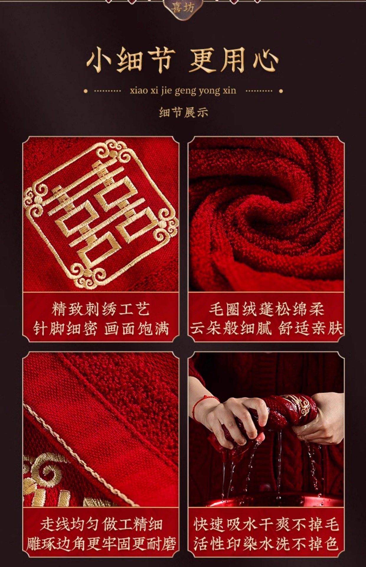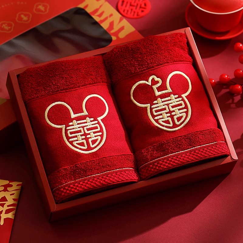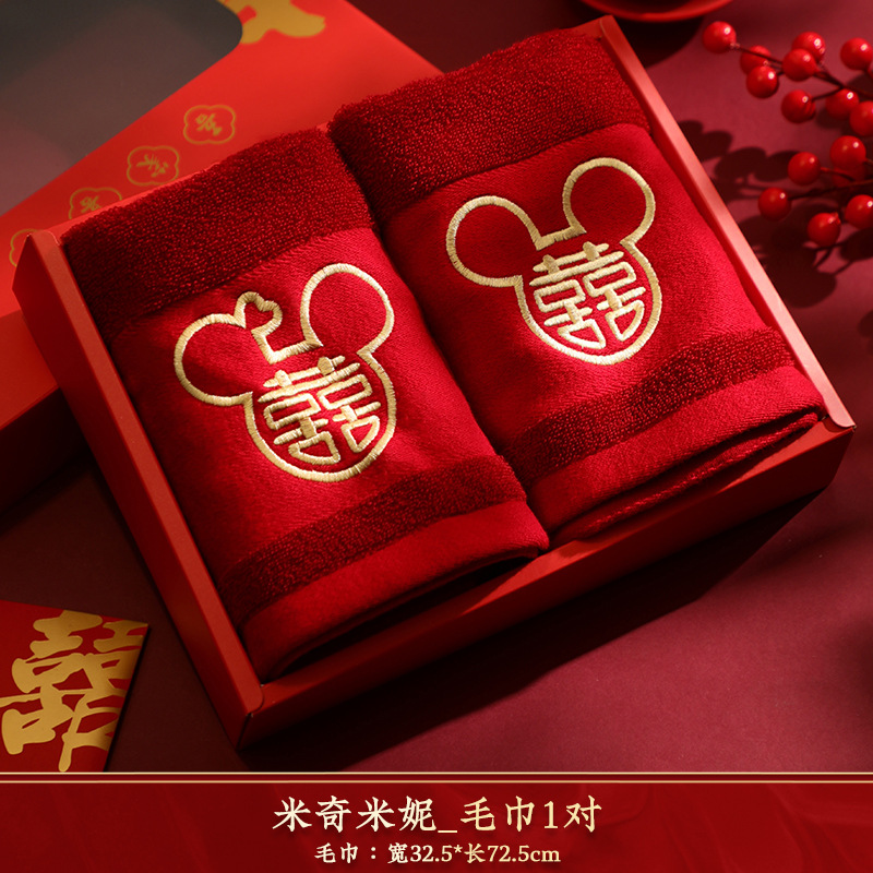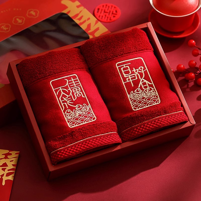 结婚毛巾订婚新婚一对红色喜字喜事用女方陪嫁洗脸用品回礼伴手礼