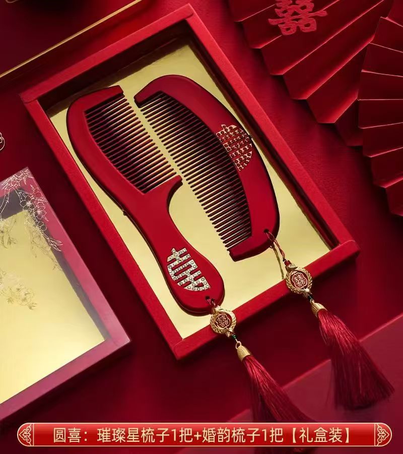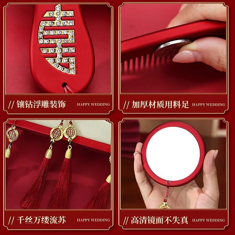 喜庆镜子梳子结婚陪嫁一对套装红色礼盒送新人新娘礼物高档婚庆用