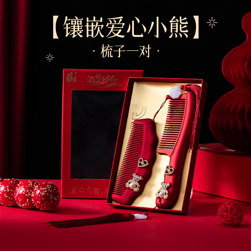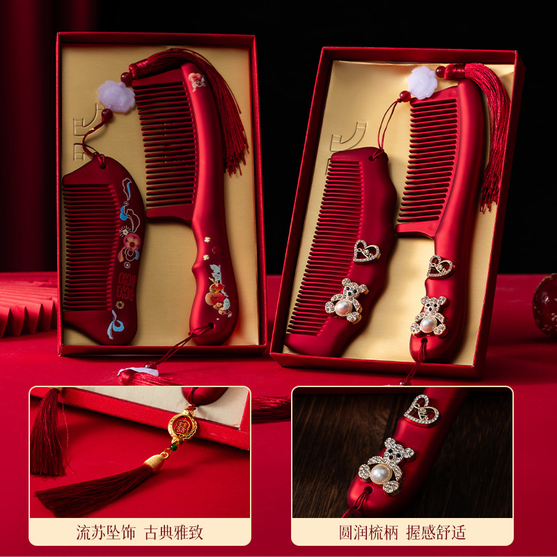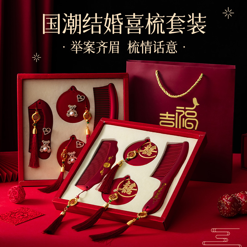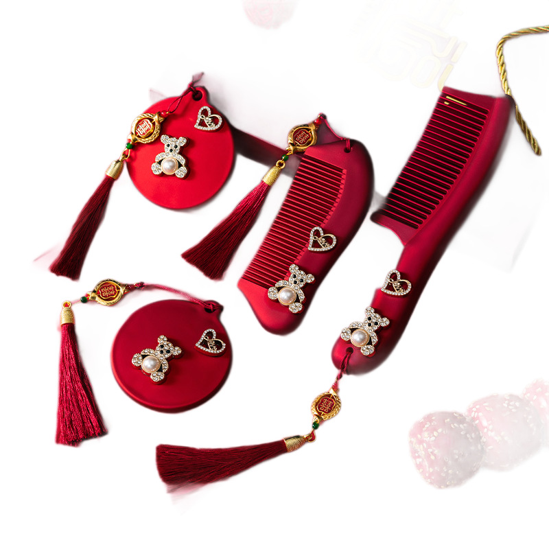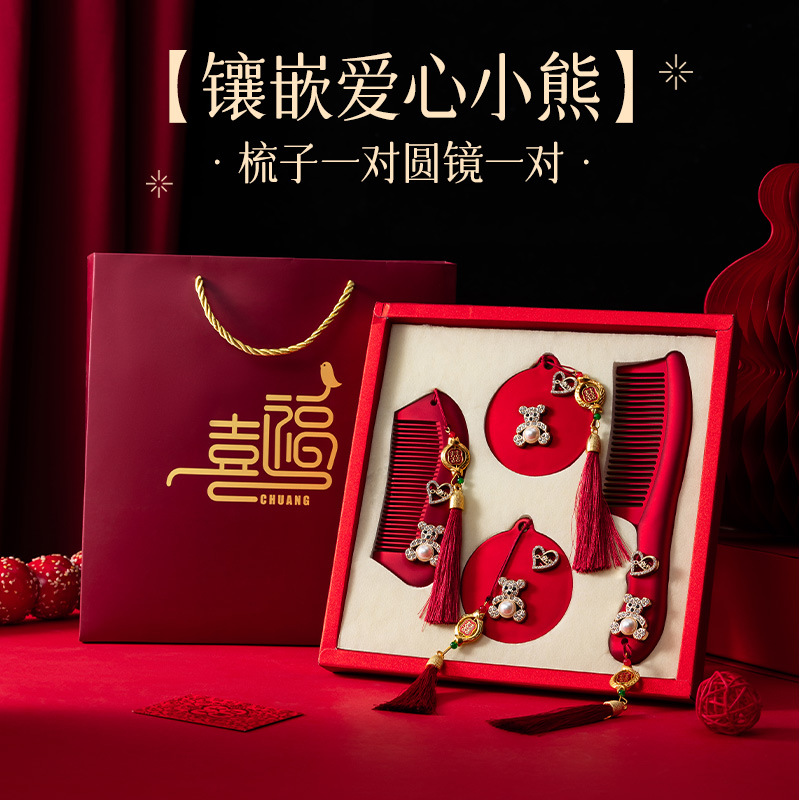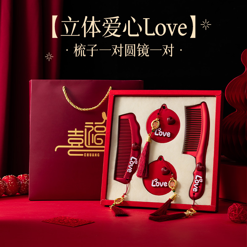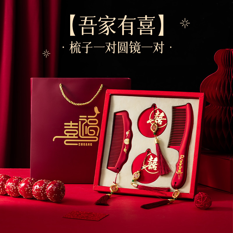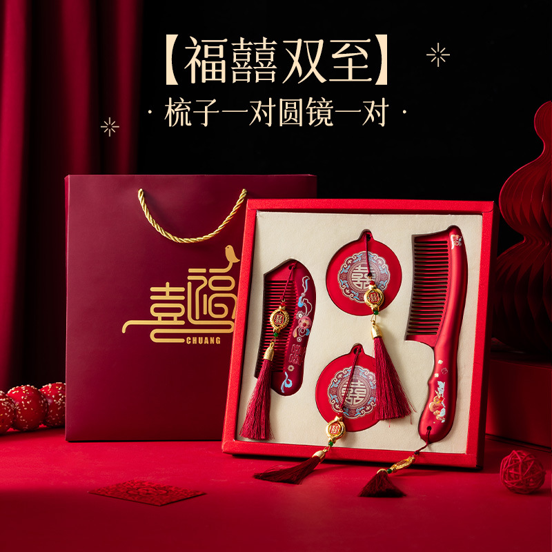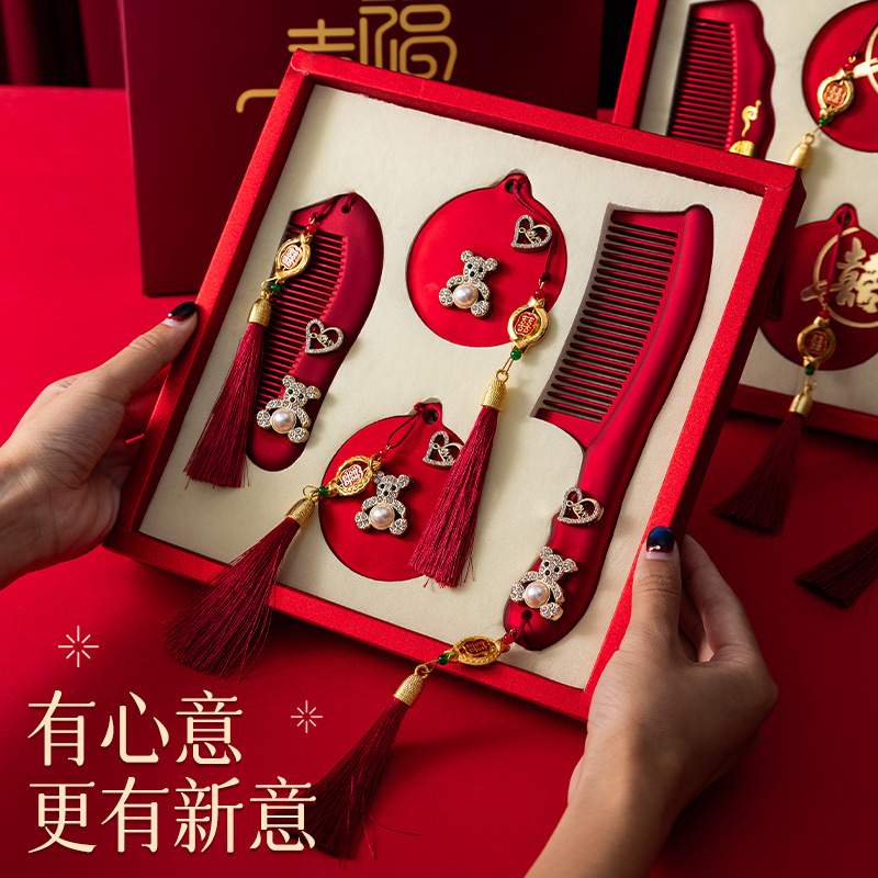 红色镜子梳子结婚陪嫁一对套装礼盒装送新人新娘礼物高档结婚用品