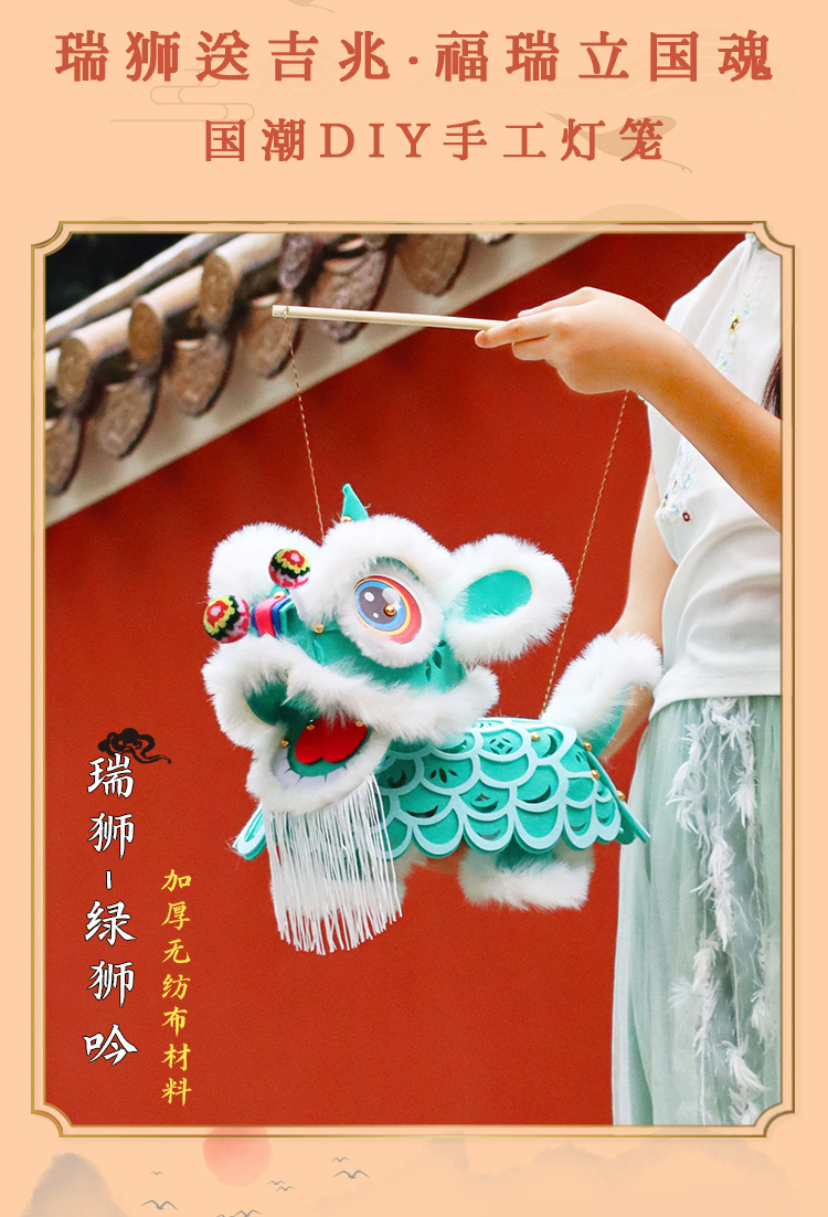 2025中秋节非遗醒狮灯笼儿童亲子手工diy材料包国潮活动创意花灯