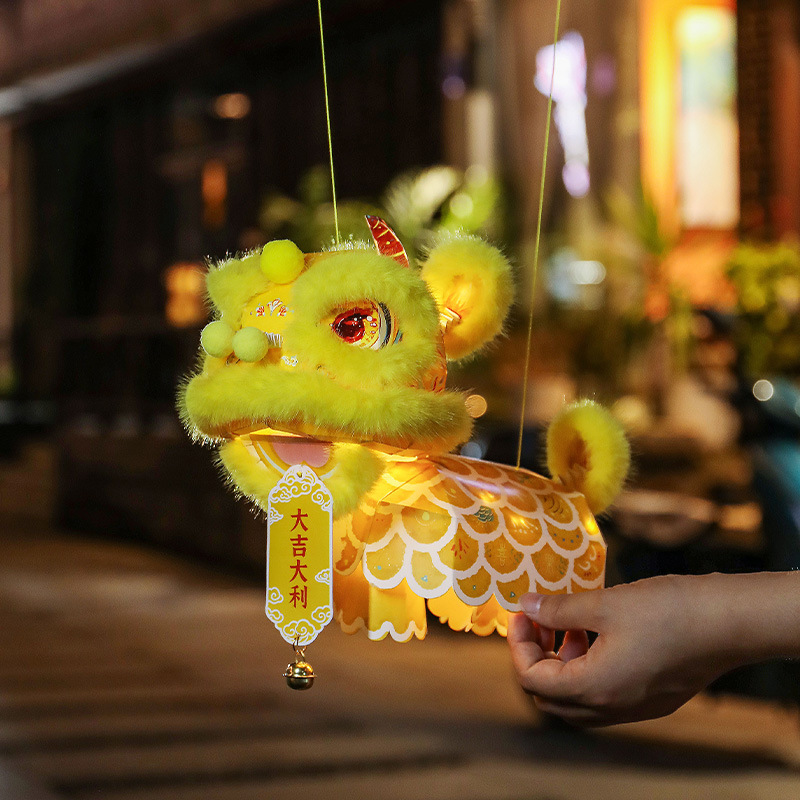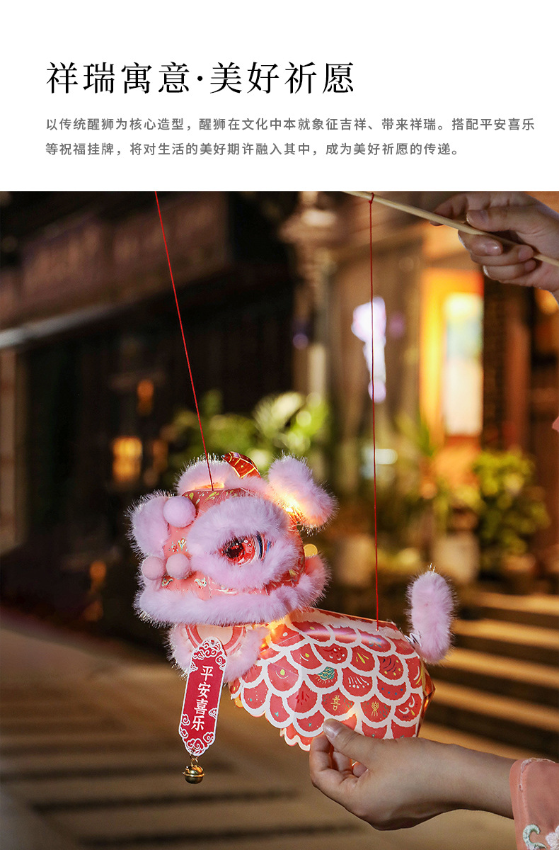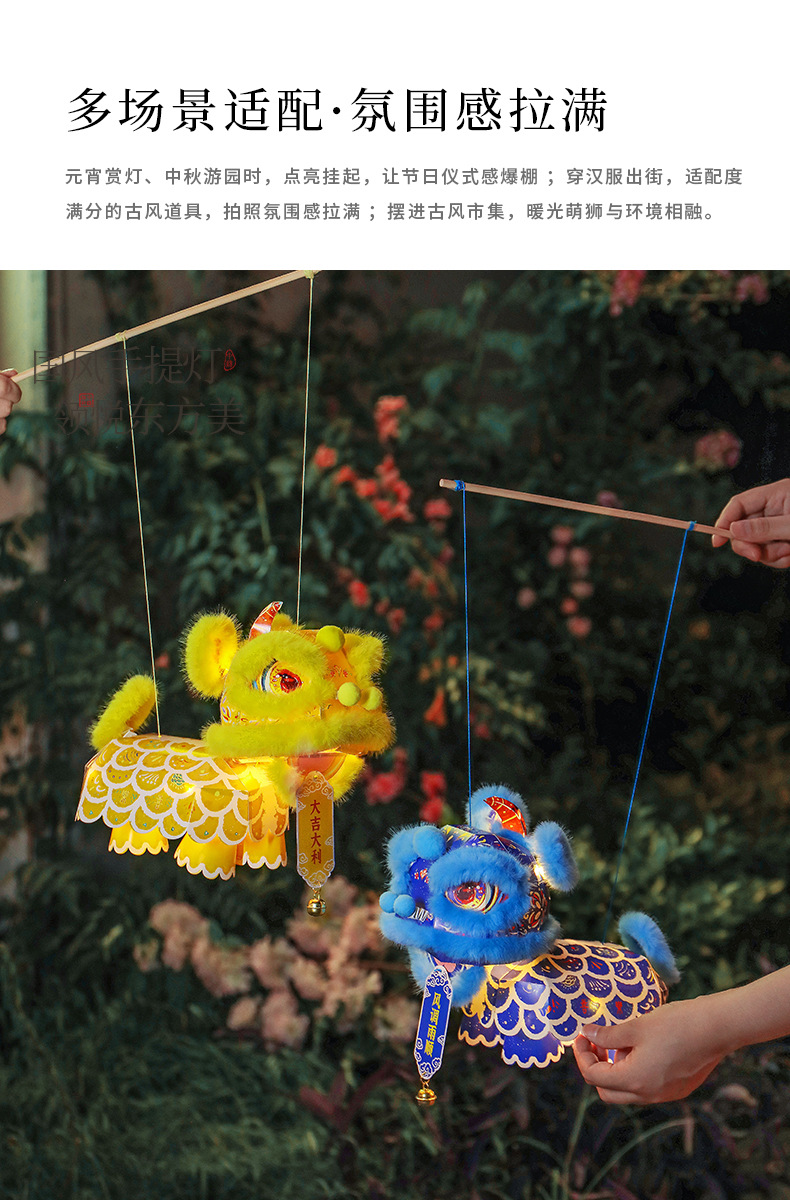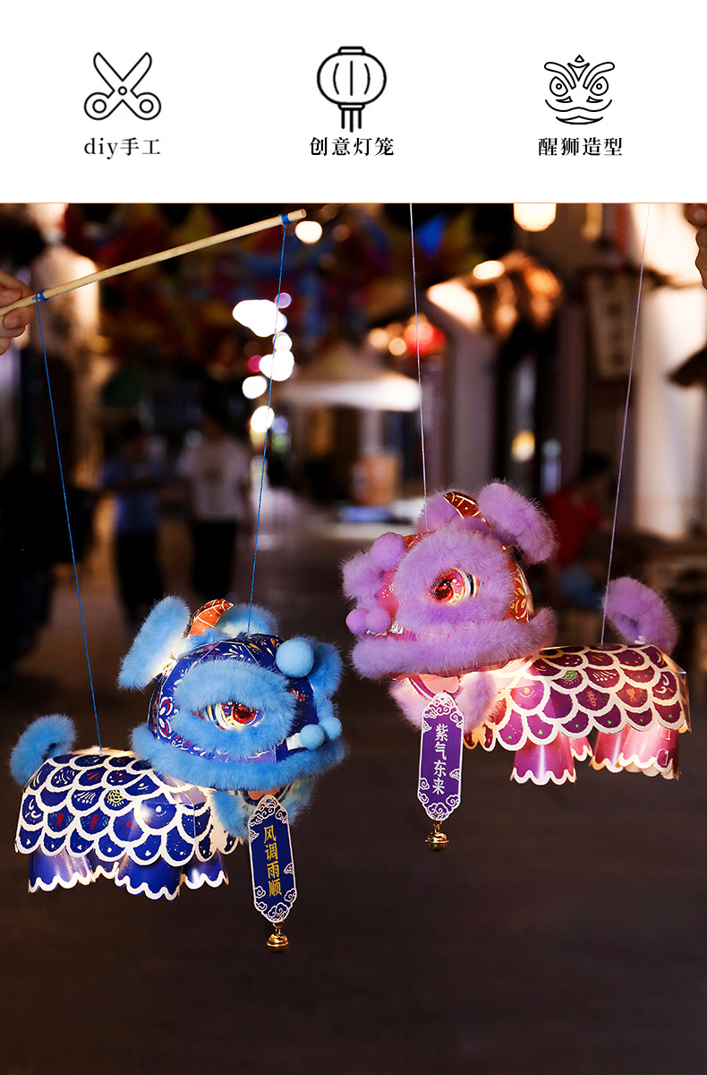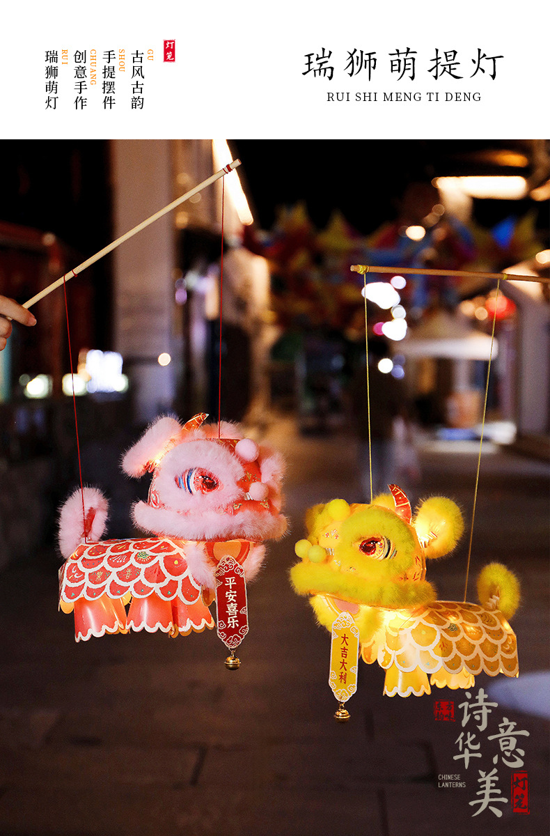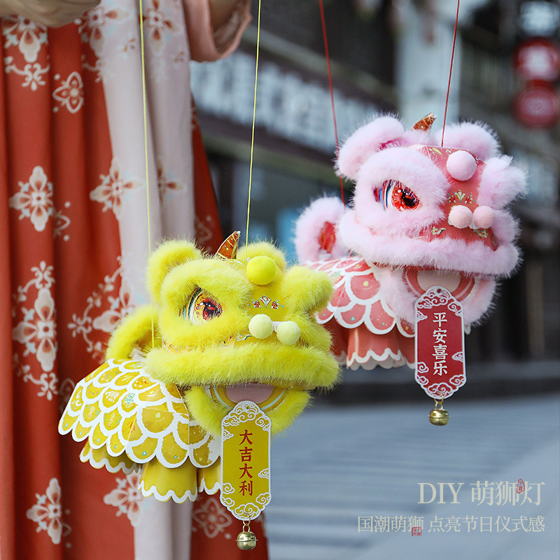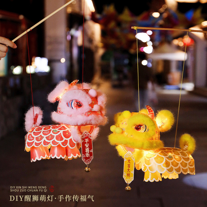 2025新款国风氛围装饰中秋节手工diy材料包led灯手提醒狮灯笼成品