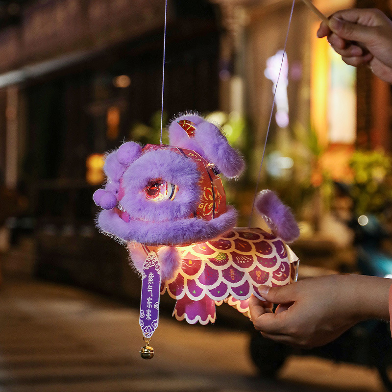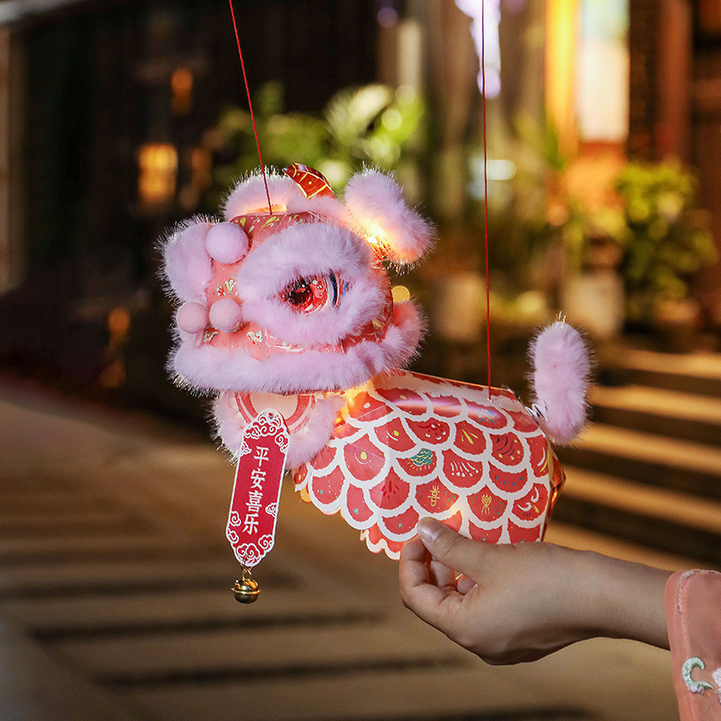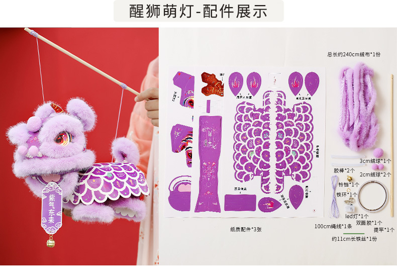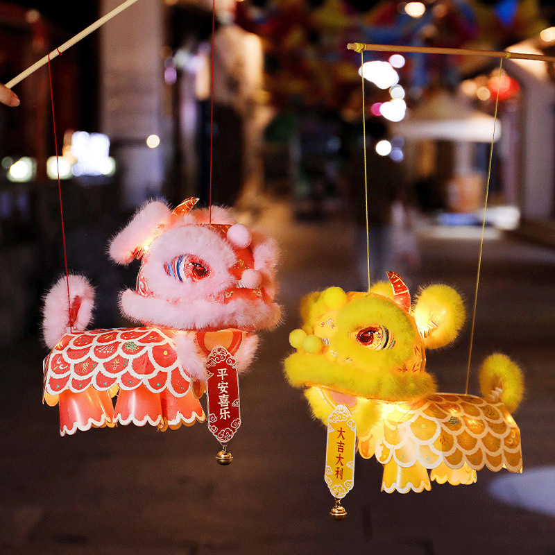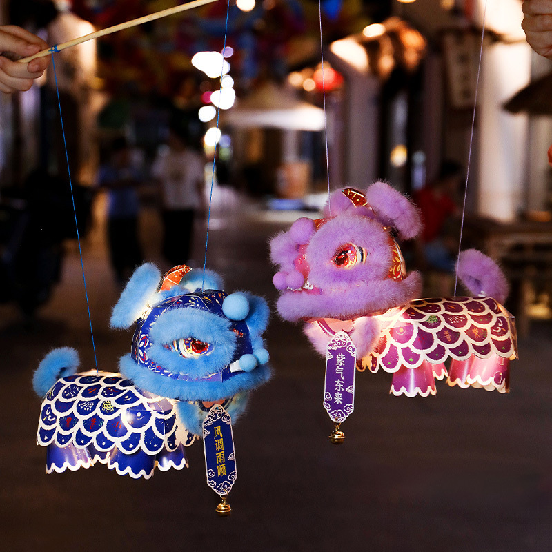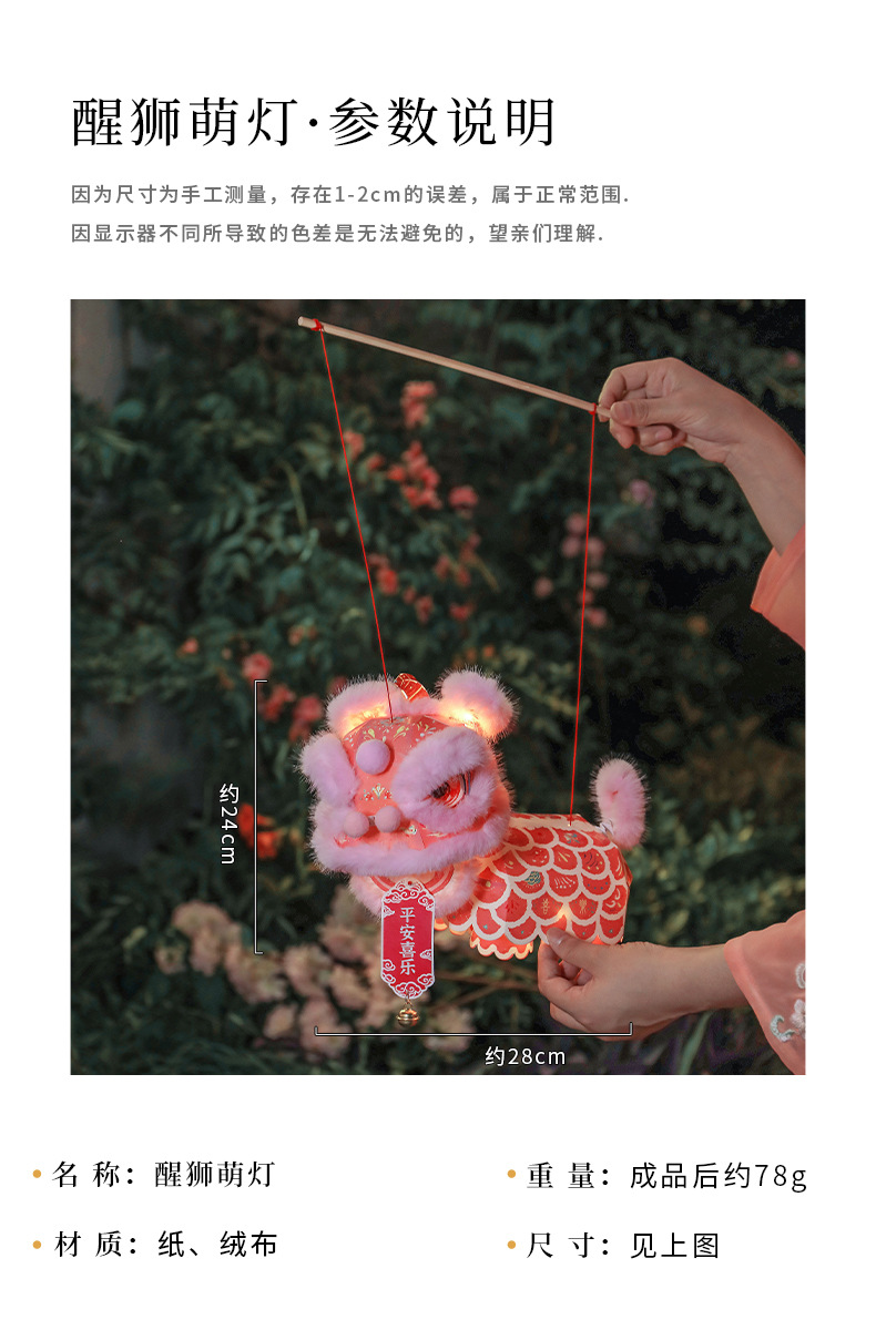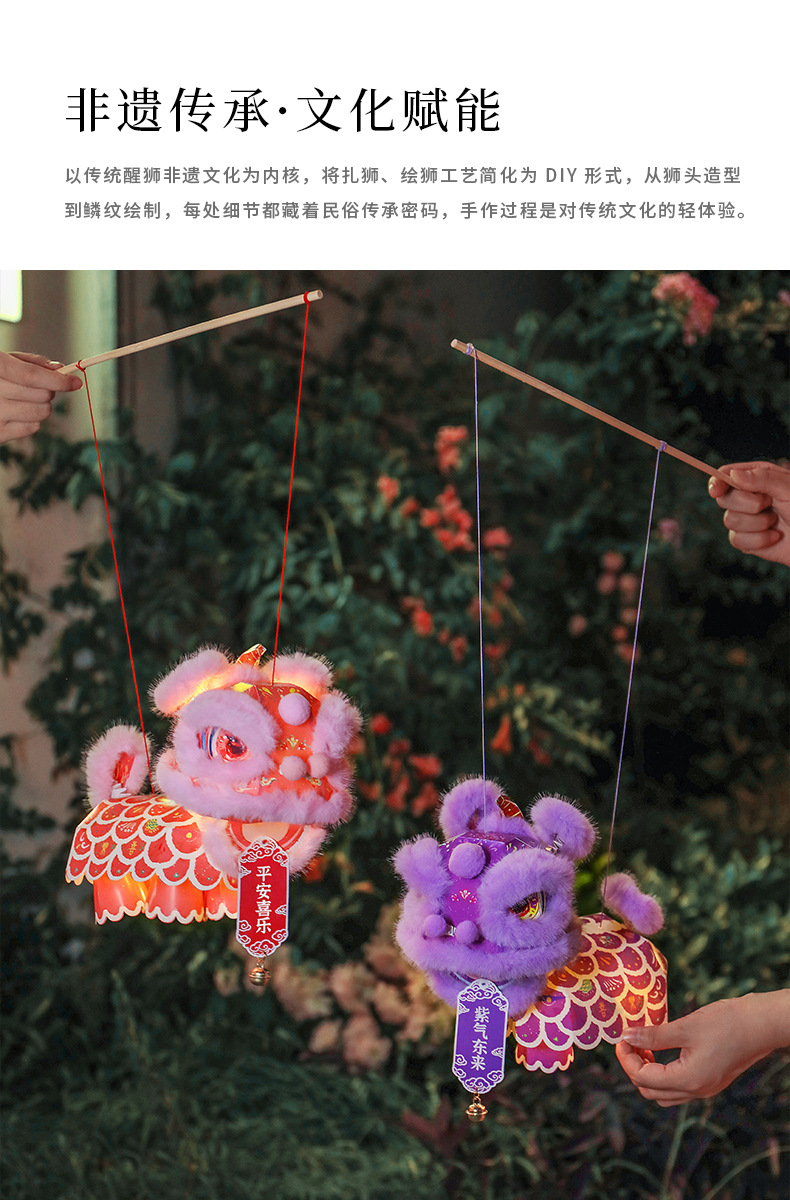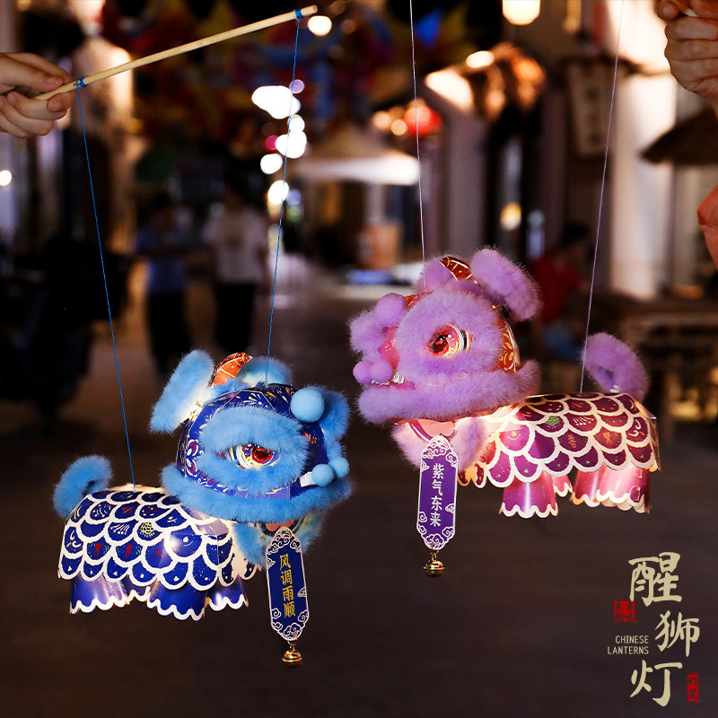 2025新款国风氛围装饰中秋节手工diy材料包led灯手提醒狮灯笼成品