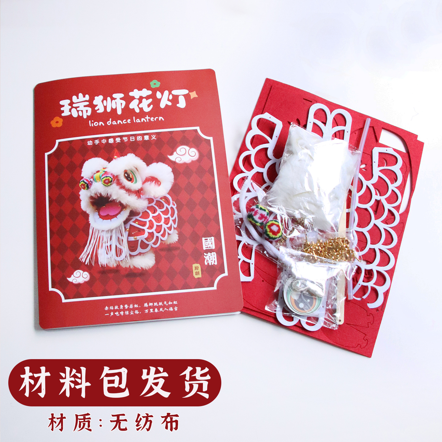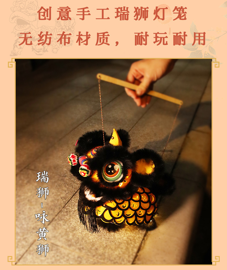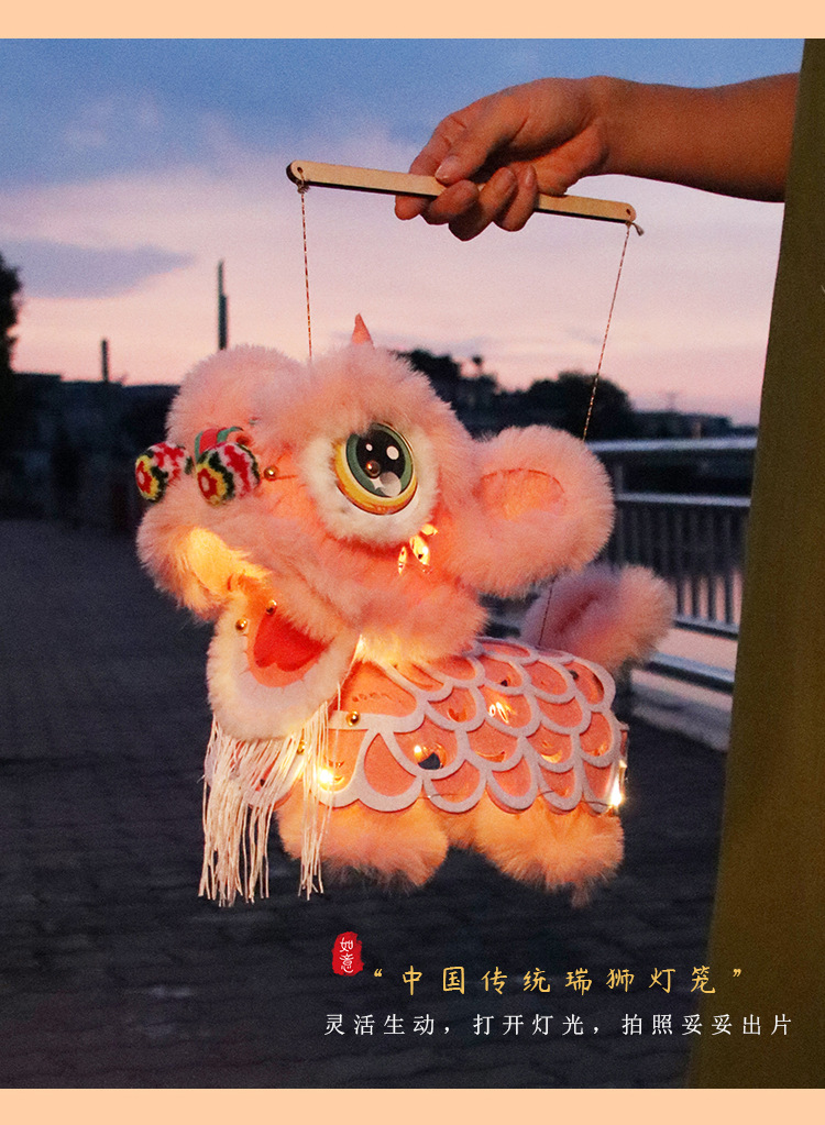 中秋国潮手工diy制作醒狮灯笼新款非遗传统花灯儿童装饰拍照道具