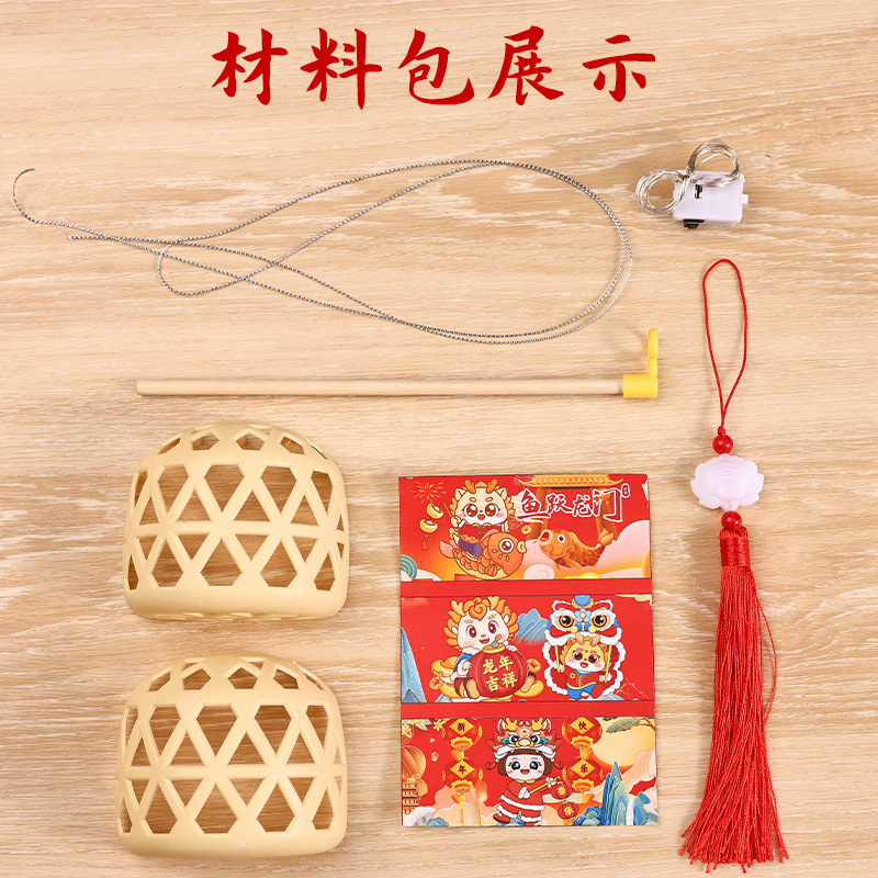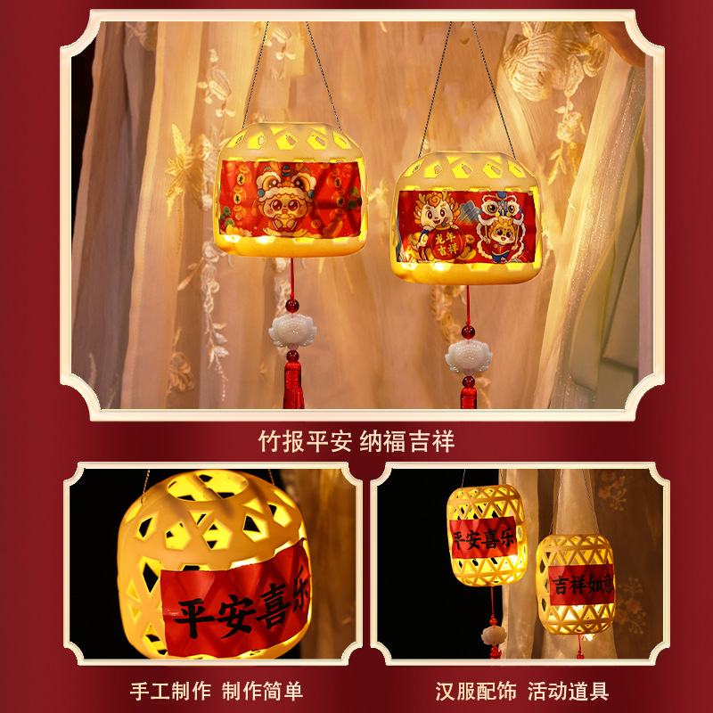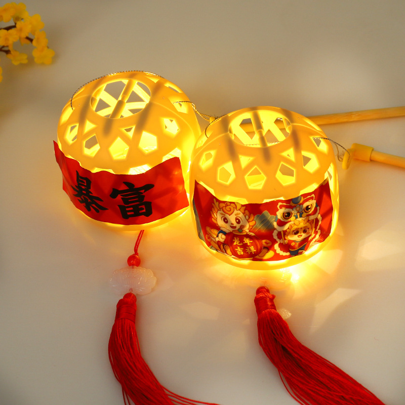 潮汕竹编兔子小灯笼新年儿童手提发光迷你手工制作diy材料包批发