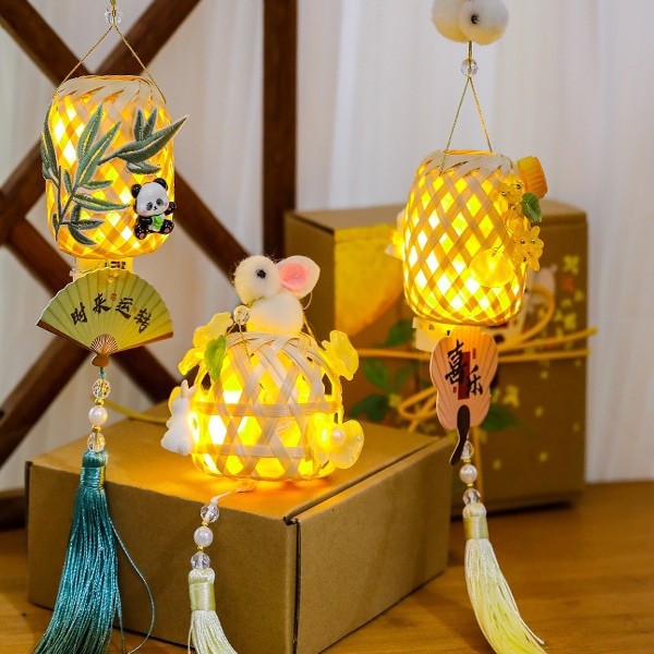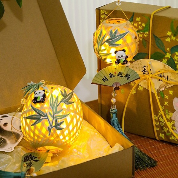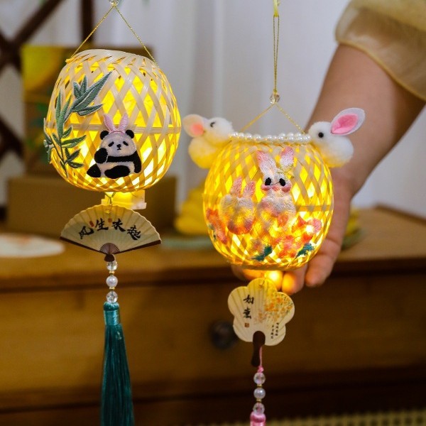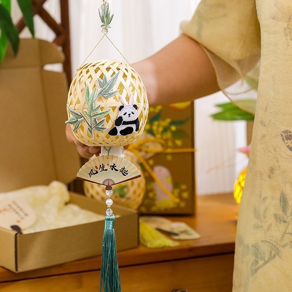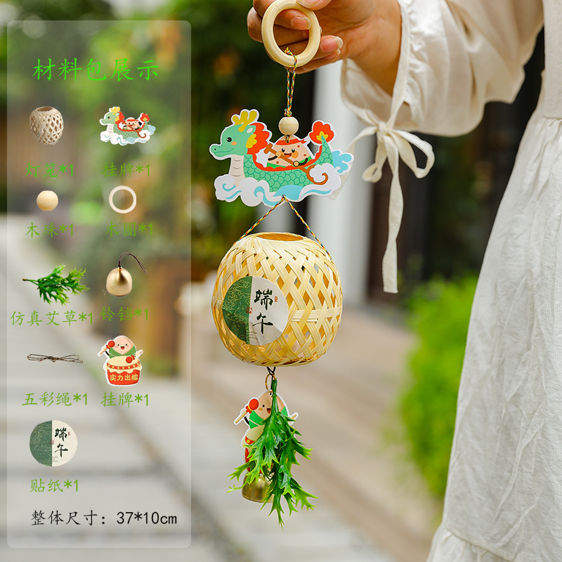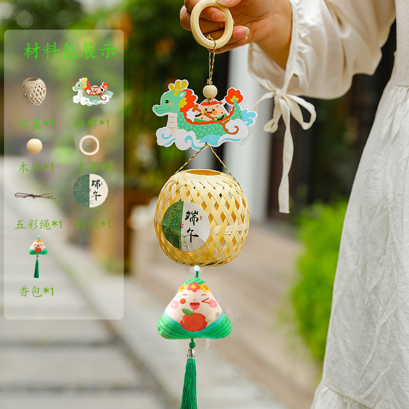 焌然端午节刺绣竹叶竹编灯笼古风手持儿童手提发光花灯材