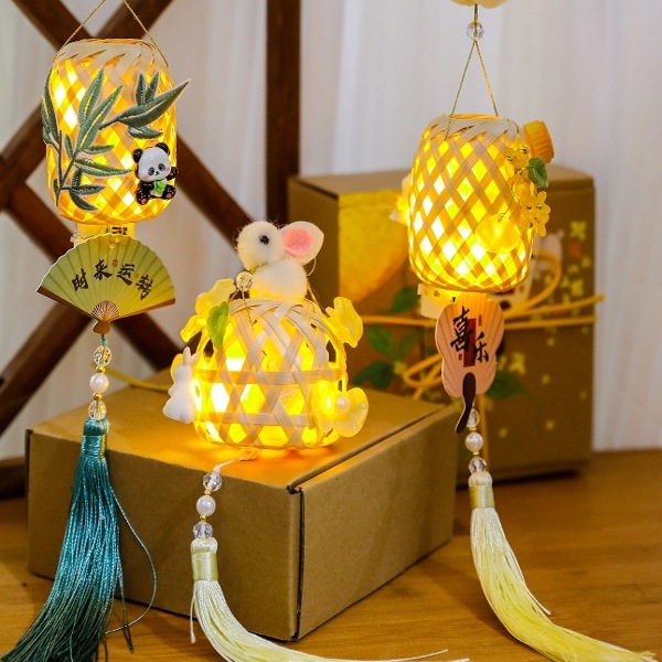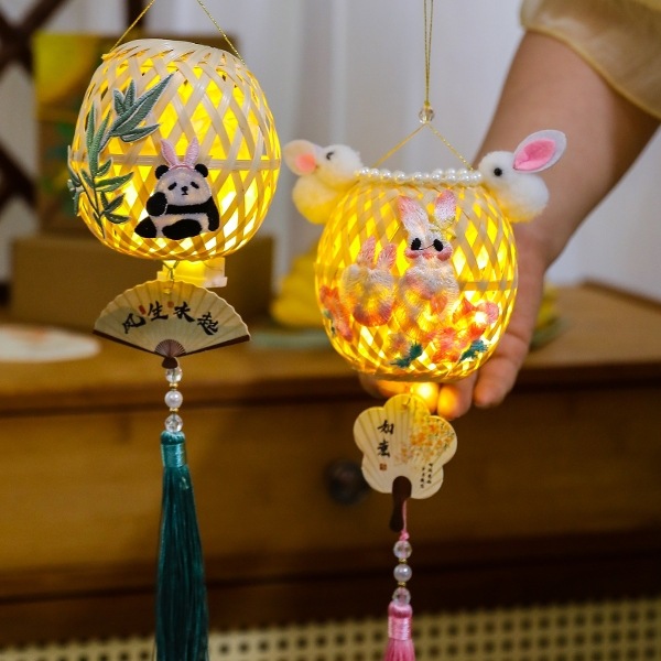 2025端午节刺绣竹叶竹编灯笼古风手持儿童手提发光花灯diy材料包