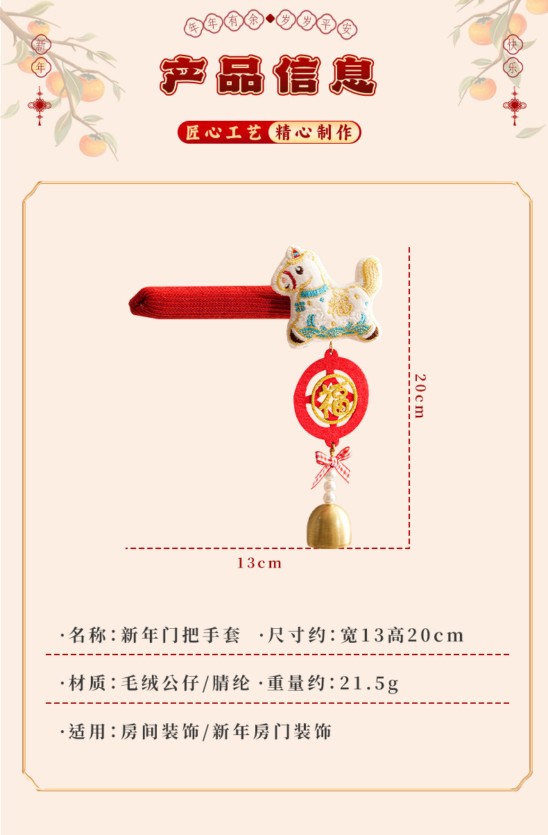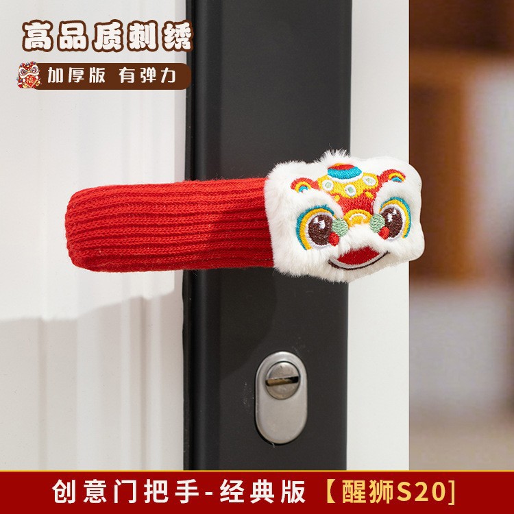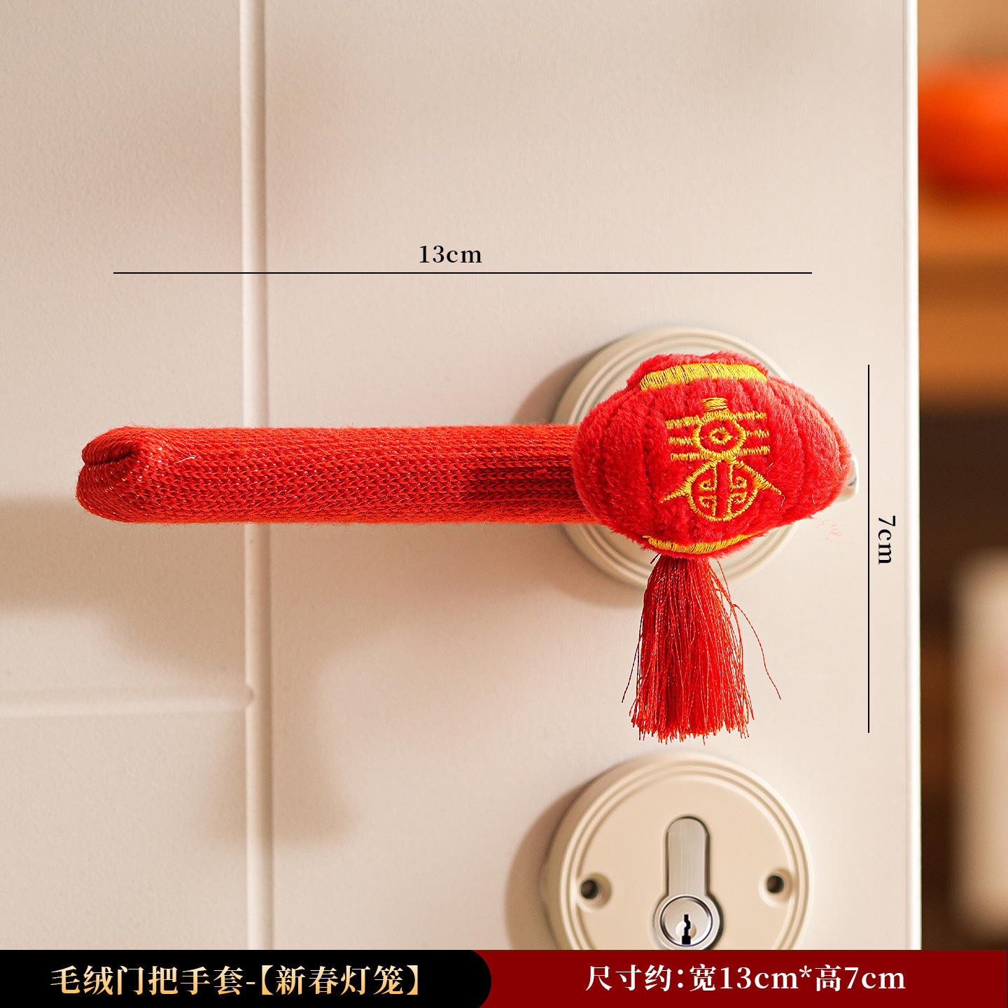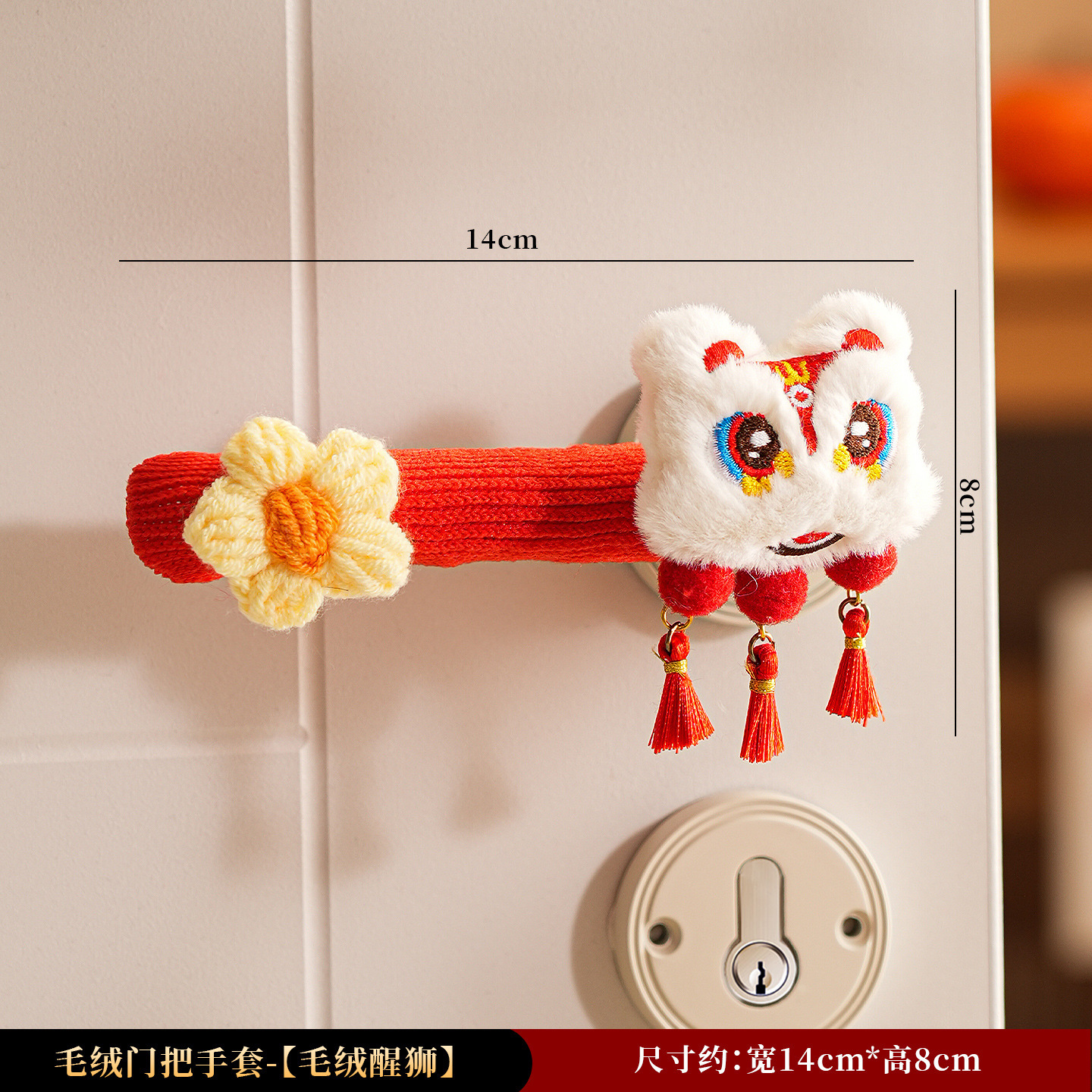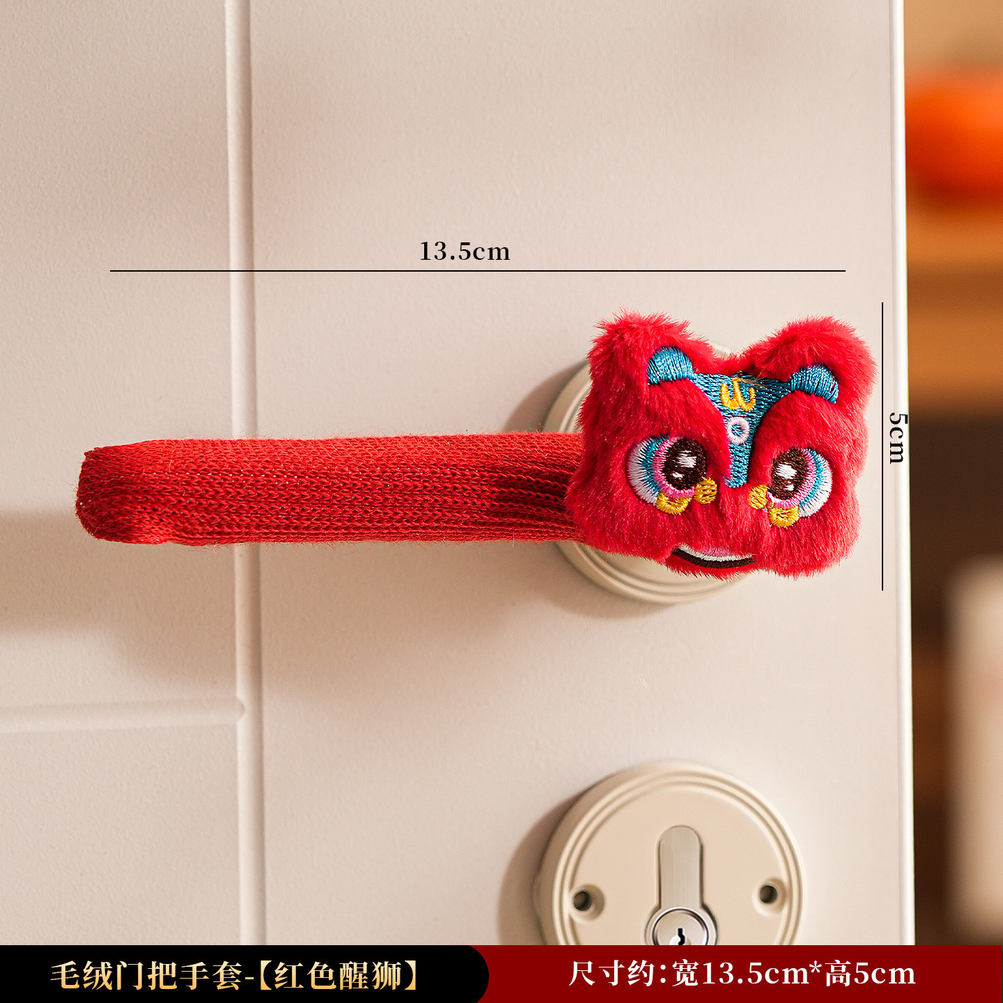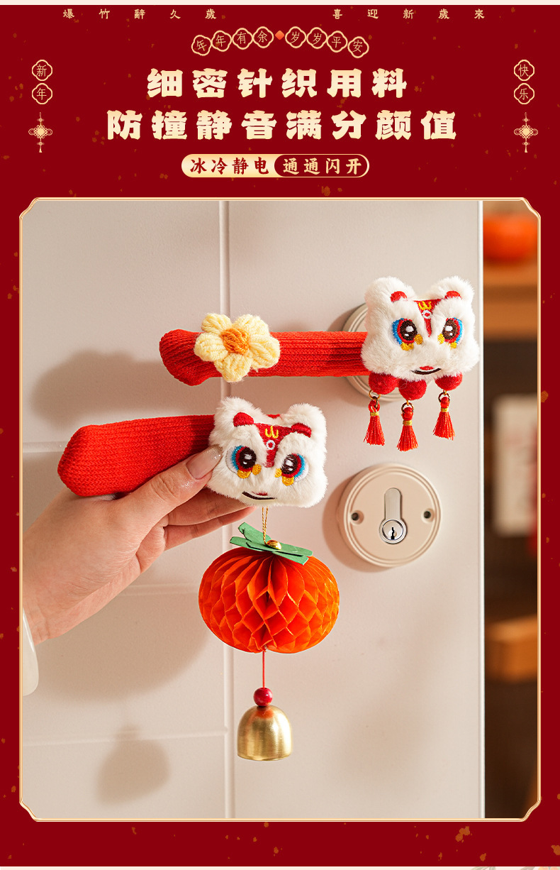 2026新年装饰红色醒狮春节马年场景布置挂件门把手保护套防撞灯笼