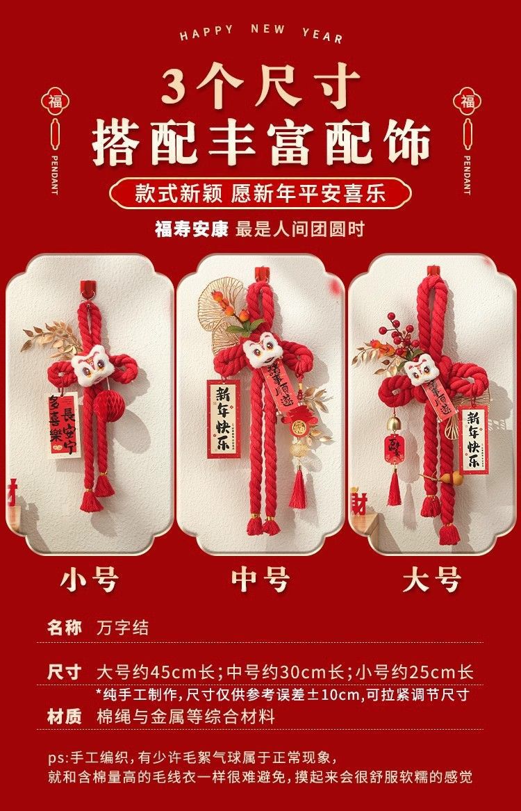 2026中国结新年装饰挂件入户门挂客厅过年喜庆马年红色万字结代发