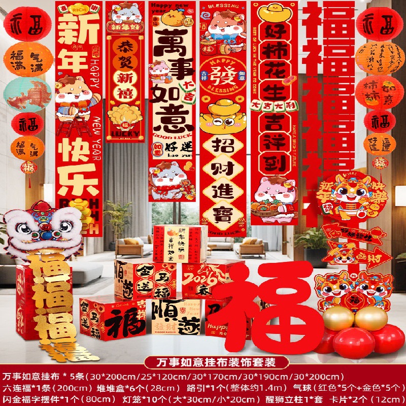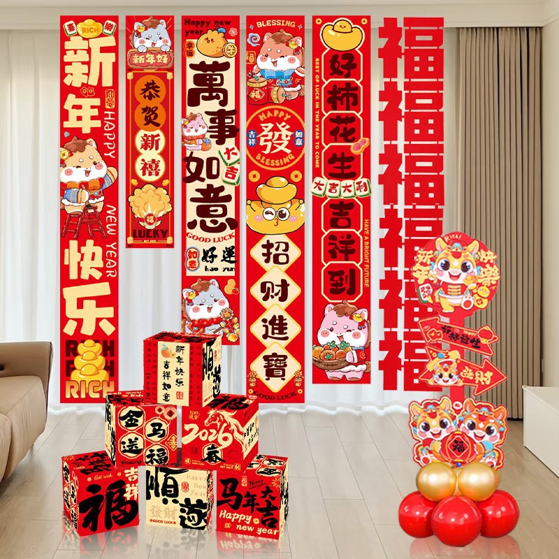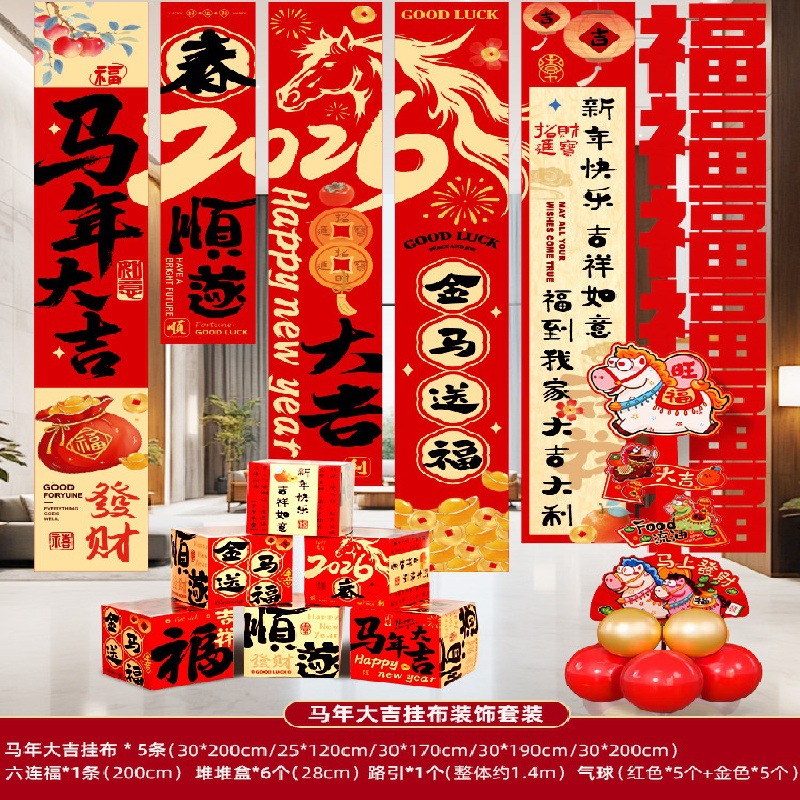 2026新款条幅挂布装饰元旦过马年春节商场幼儿园场景气氛布置