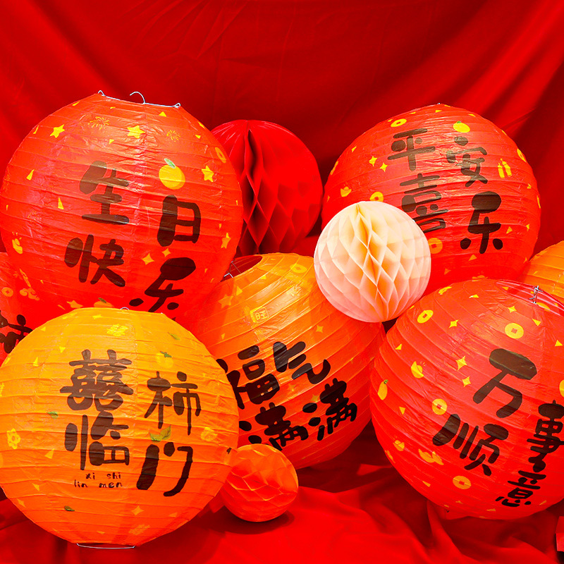 生日快乐灯笼装饰一周岁宝宝背景布置蜂窝球新中式抓周宴拍照道具