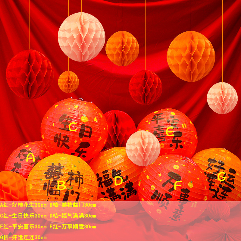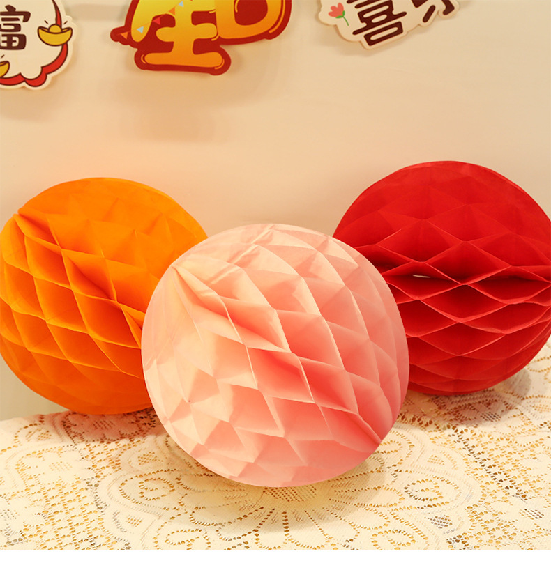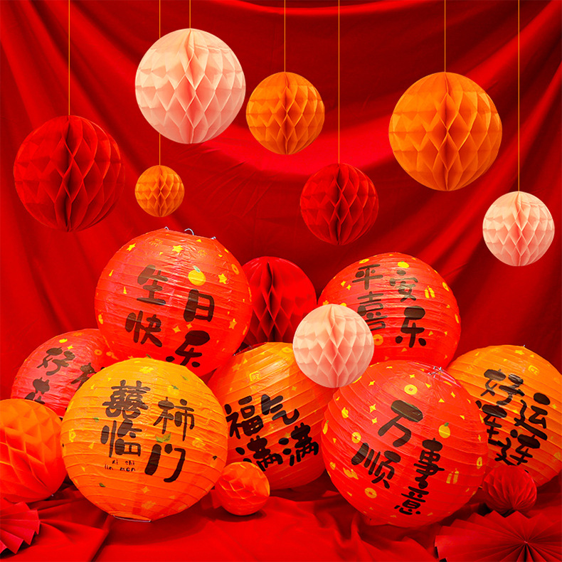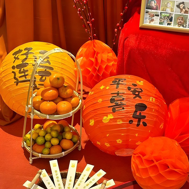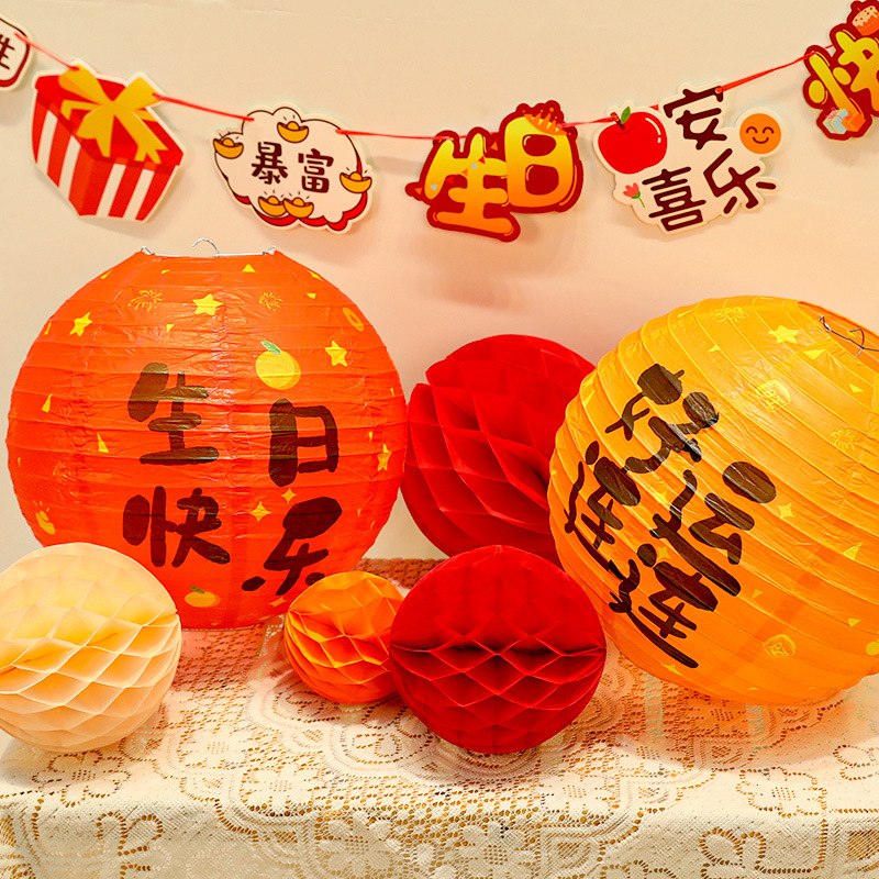 周岁生日布置中式氛围感装饰灯笼蜂窝球立柱宝宝快乐抓周背景挂饰