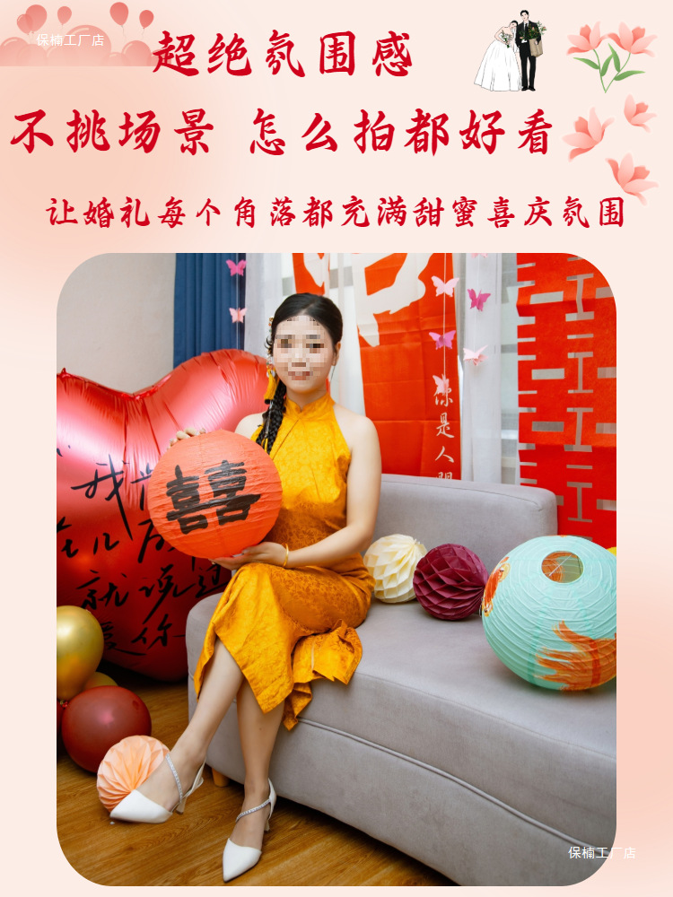 新年结婚喜字灯笼新娘拍照道具婚房布置装饰周岁礼满月抓周蜂窝球