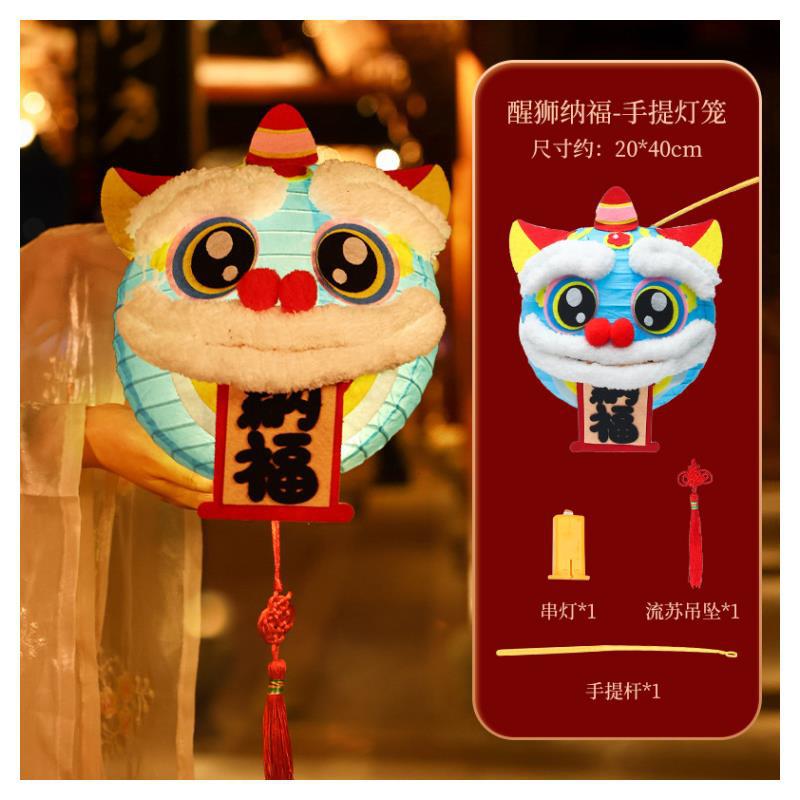 宝宝周岁礼装饰新年醒狮灯笼国潮拍照道具儿童手工diy婚庆花灯