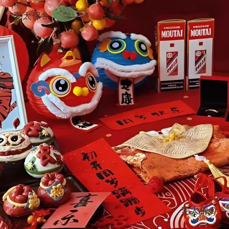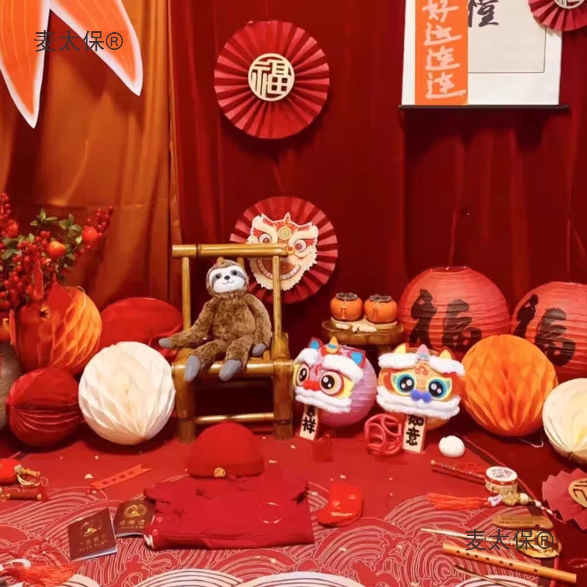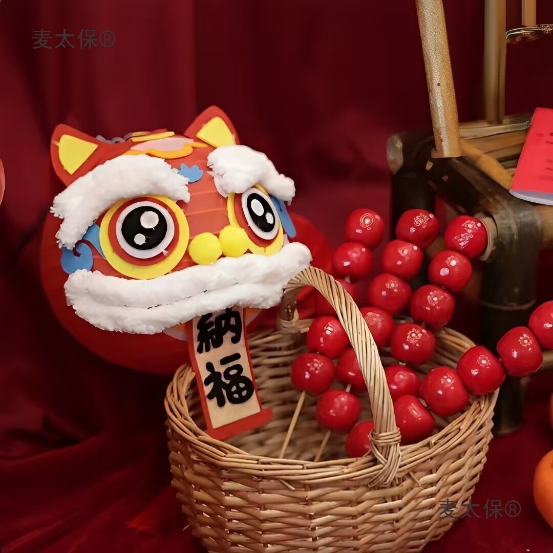 宝周岁礼装饰景醒狮福字灯笼国潮拍照道具灯笼手工DIY新垒麦太保