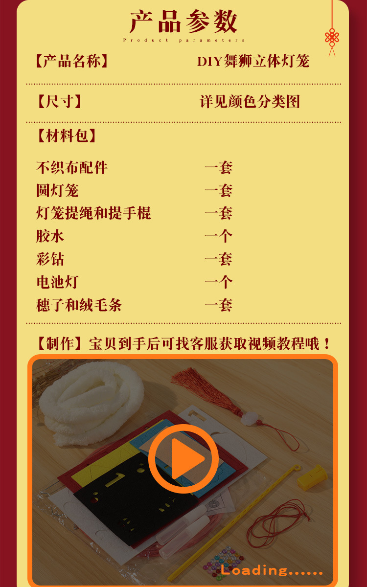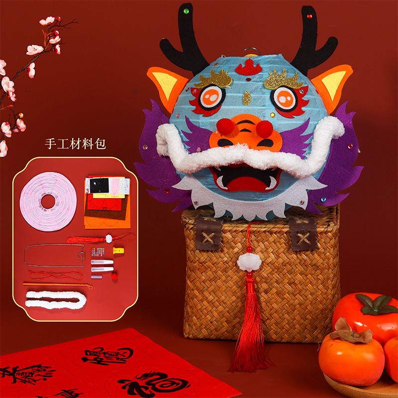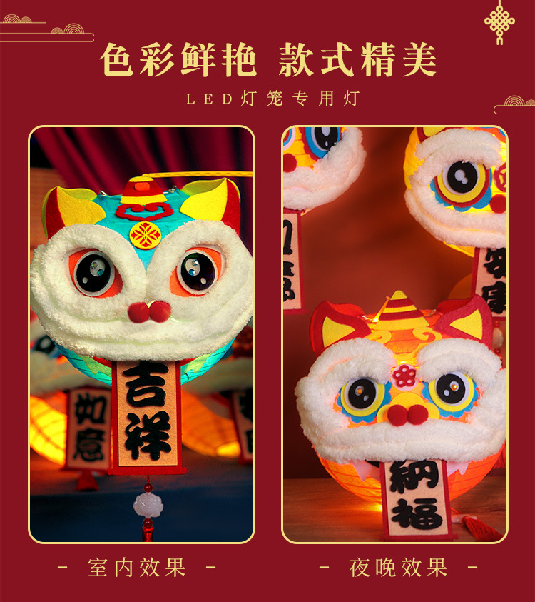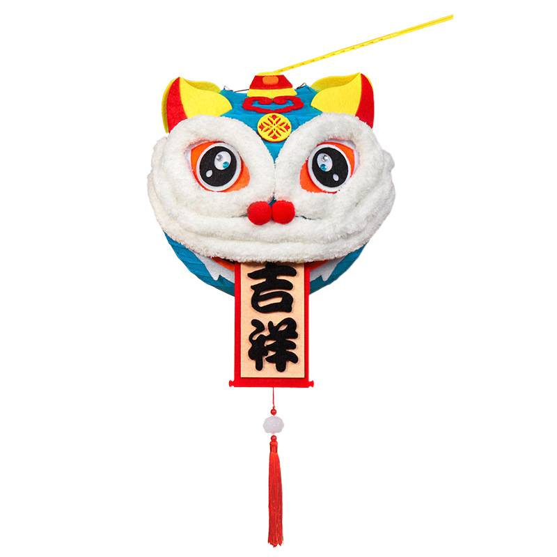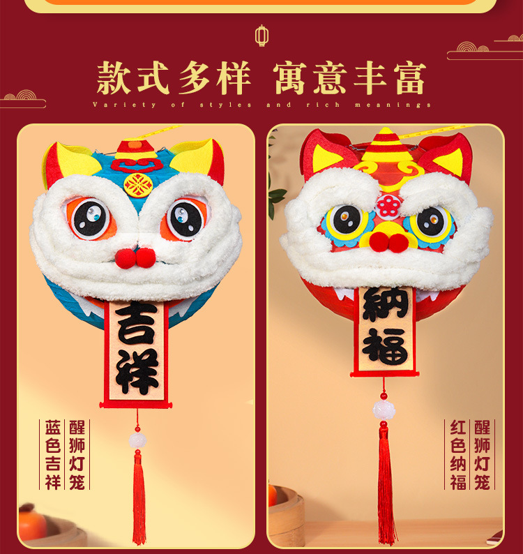 元旦节醒狮灯笼宝宝周岁礼装饰国潮拍照道具儿童手工diy婚庆花
