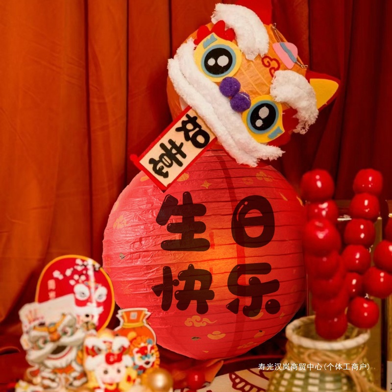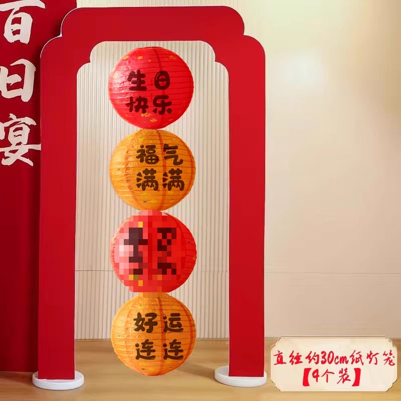 生日快乐灯笼一周岁宝宝背景布置纸灯笼蜂窝球中式抓周宴道具用品