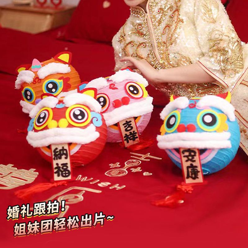 姐妹团新娘拍照道具婚礼布置装饰结婚灯笼醒狮宝宝周岁拍照留念
