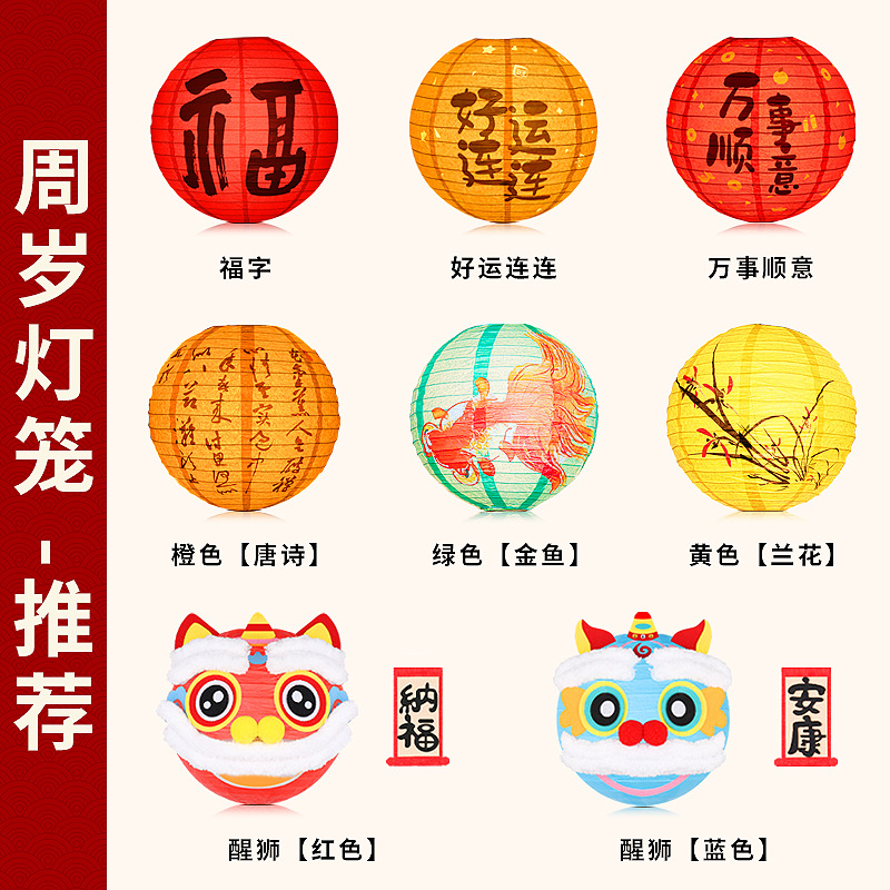 周岁生日布置家庭版里新中式生日快乐灯笼福蜂窝球抓周礼拍照道具