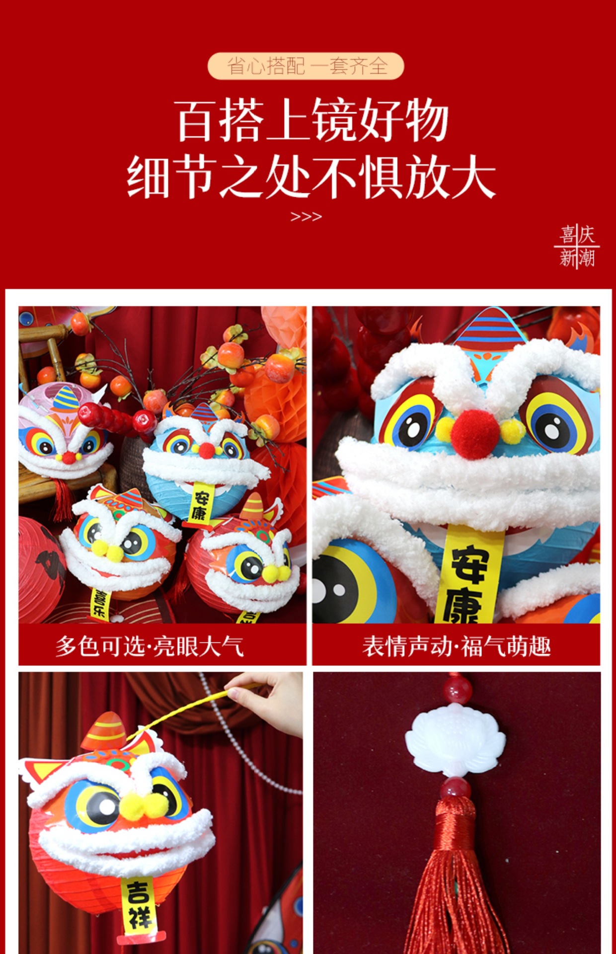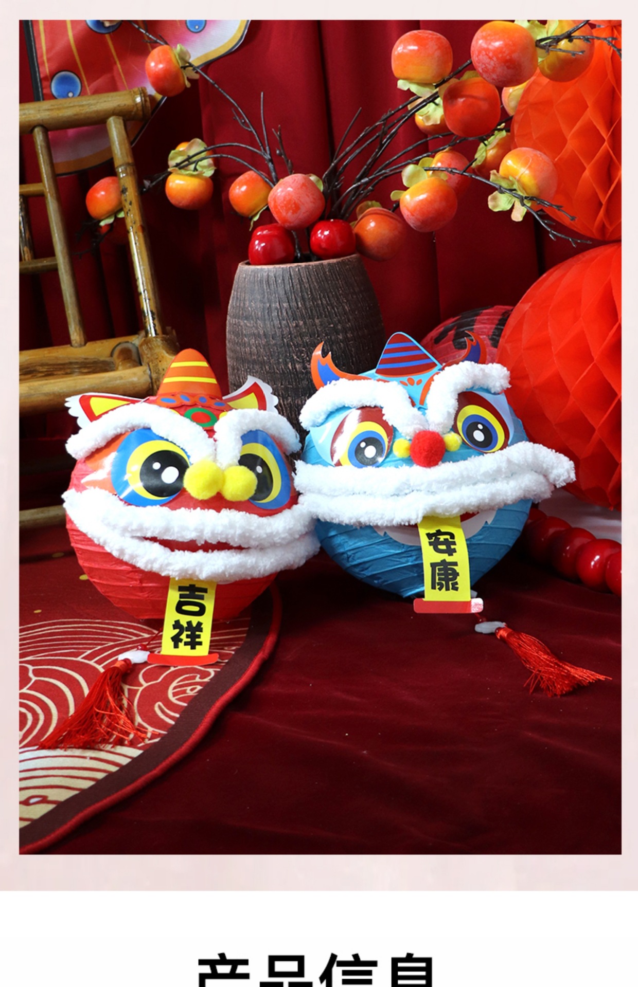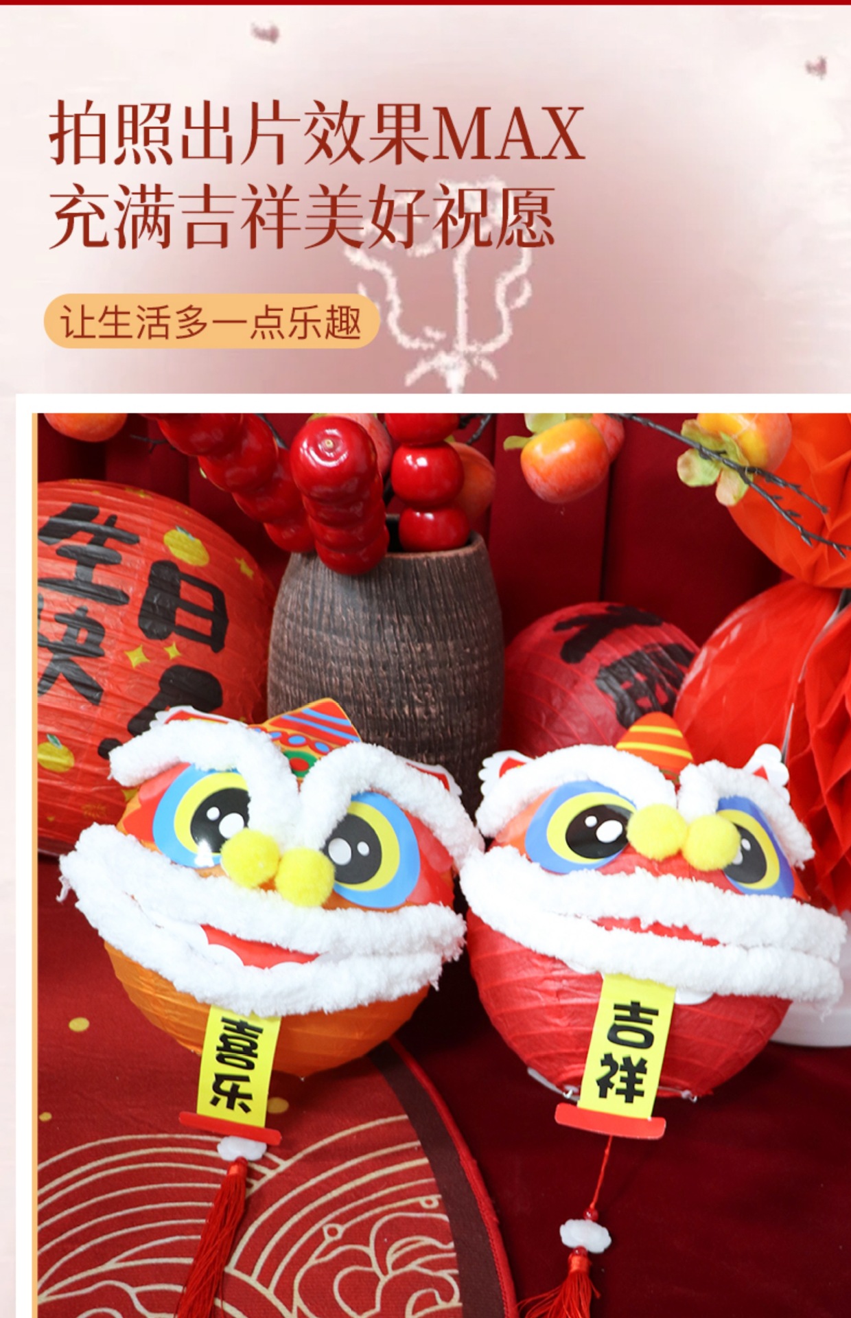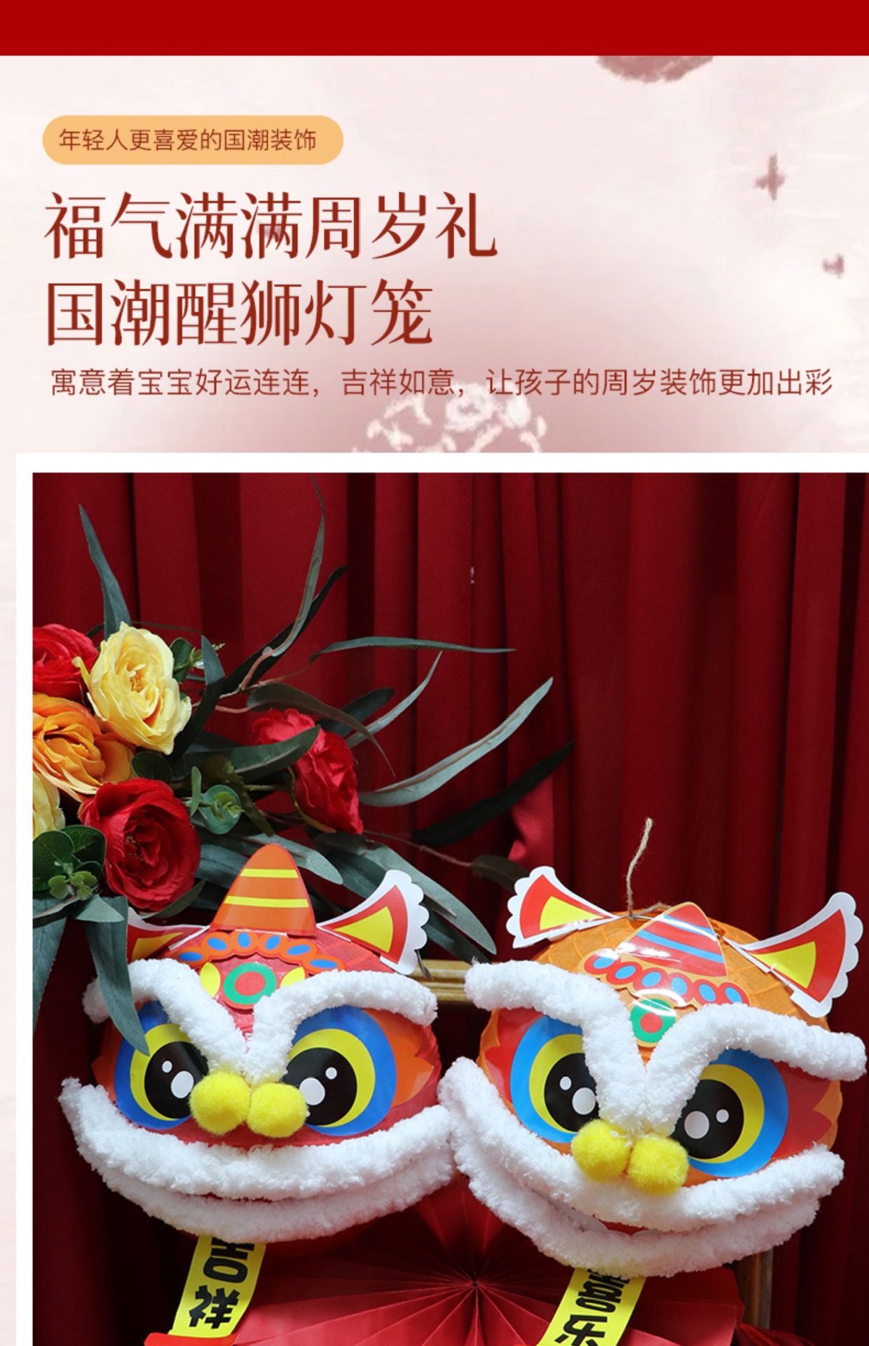 周岁礼装饰宝宝生日醒狮灯笼布置新中式场景抓周拍照氛围福字灯笼