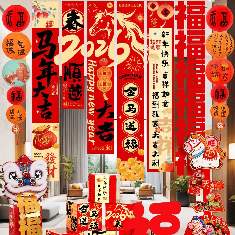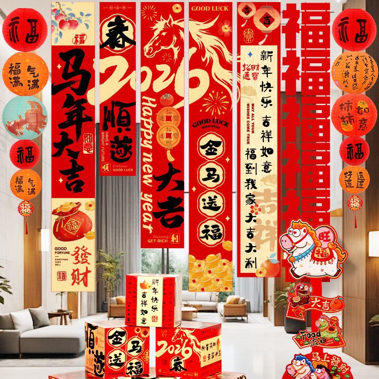 2026新款条幅挂布装饰元旦过马年春节商场幼儿园创意场景气氛布置