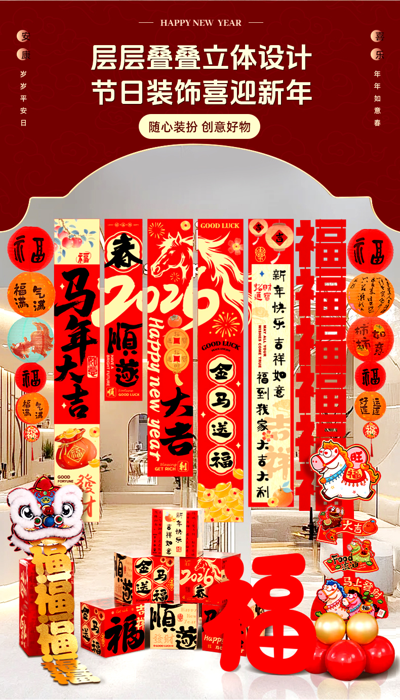 ✅2026新款条幅挂布装饰元旦过马年春节商场幼儿园创意场景气氛布