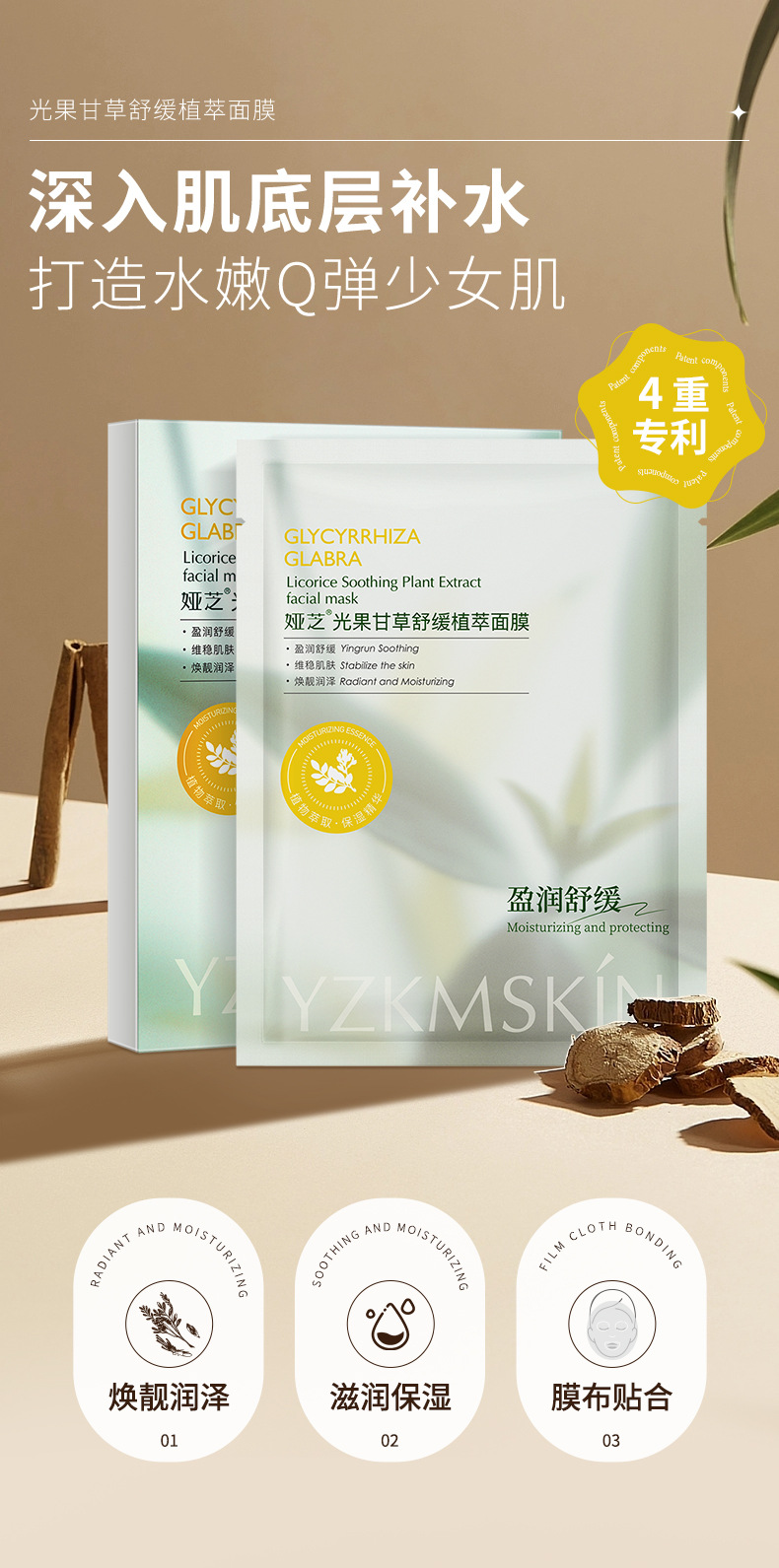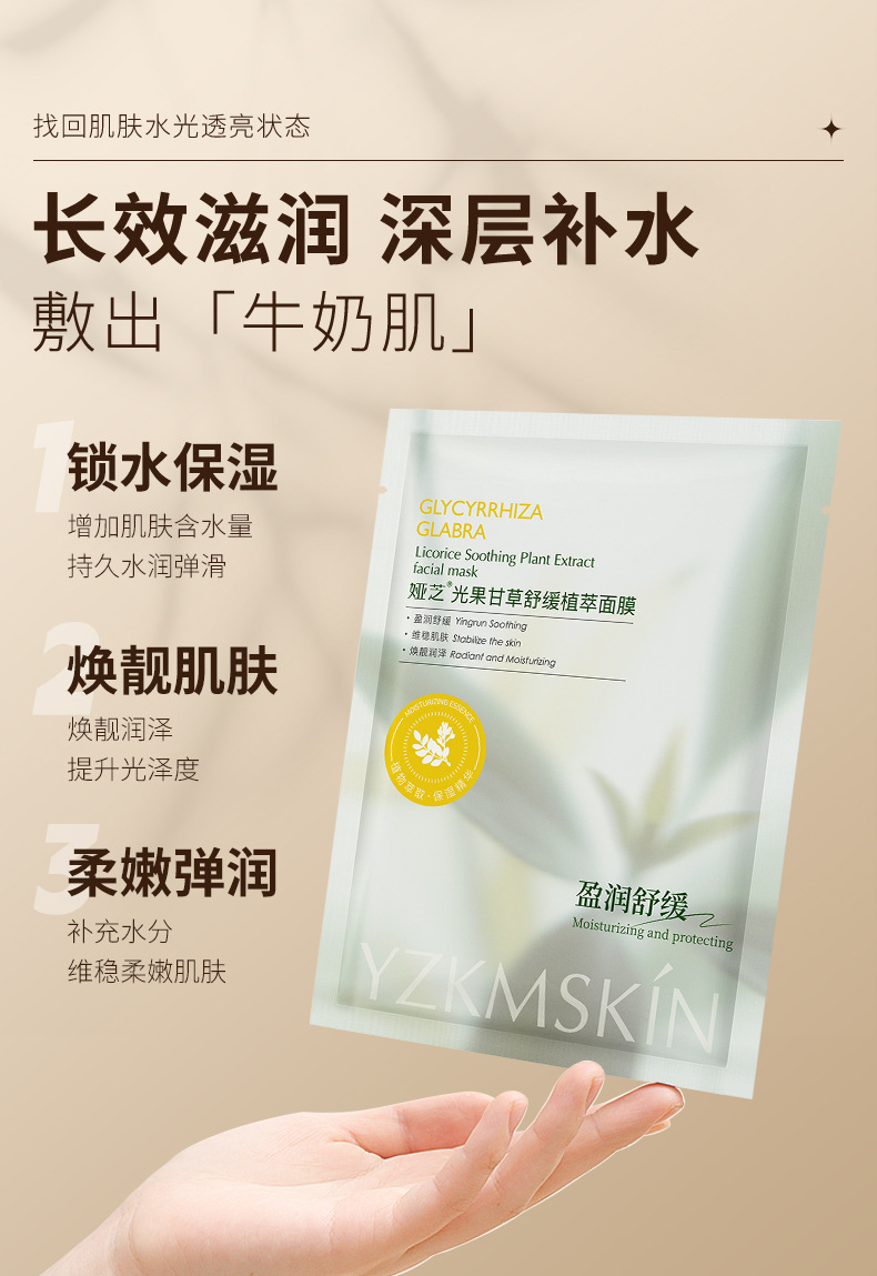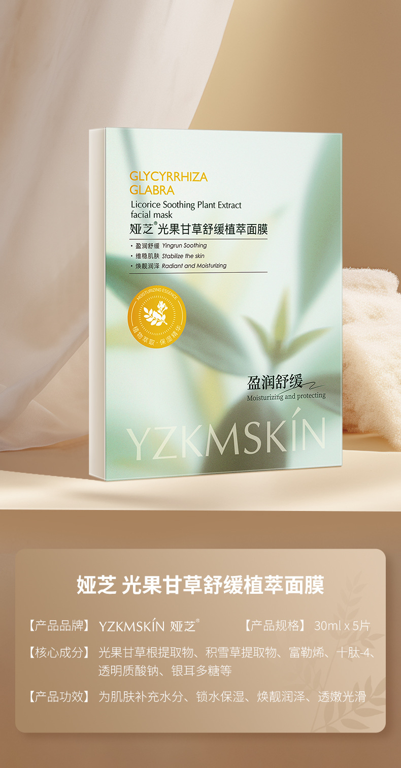 娅芝光果甘草舒缓面膜 敏感肌泛红去熬夜减黄气补水保湿贴片面膜