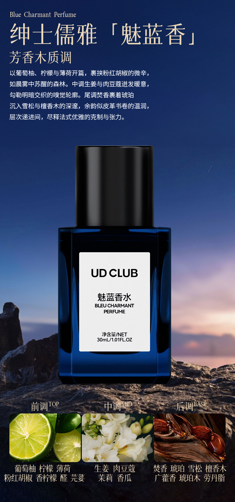 跨境UDCLUB魅蓝蔚蓝男士古龙香水高级感大地玉龙茶香香水持久留香