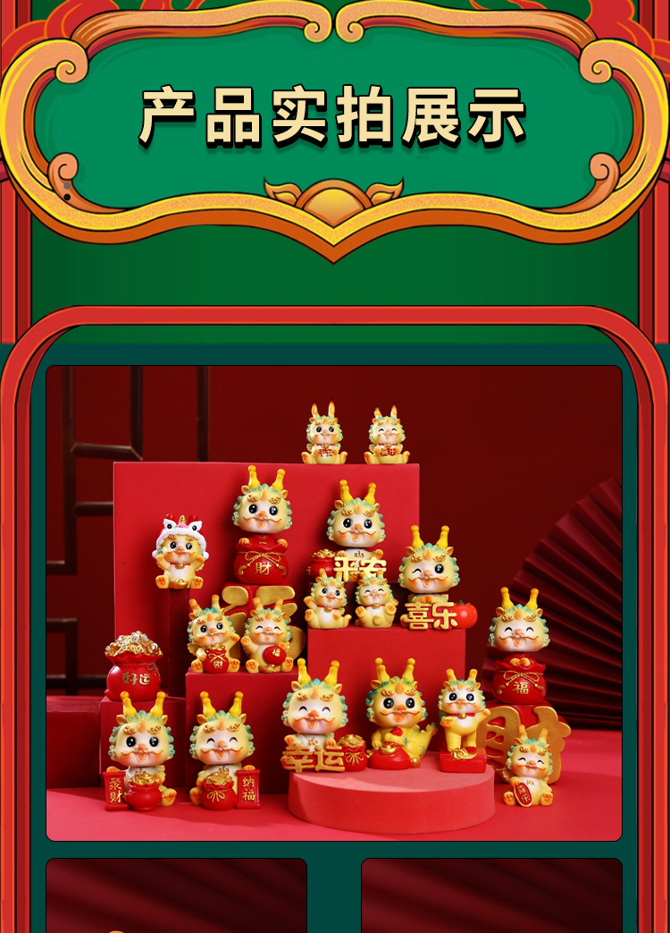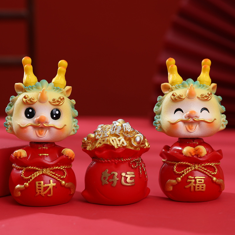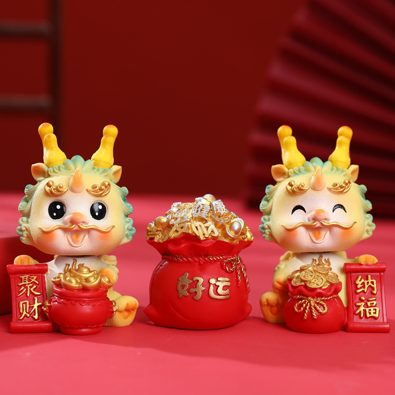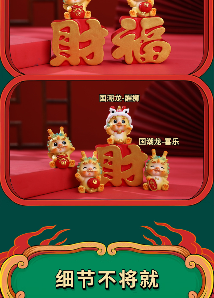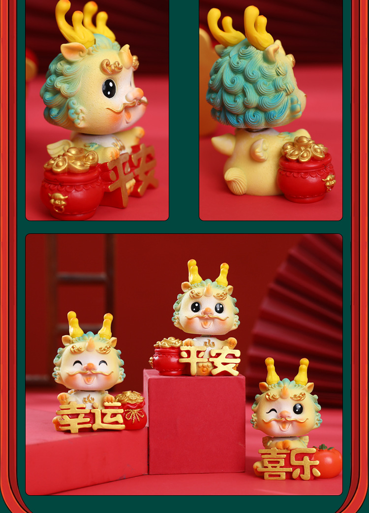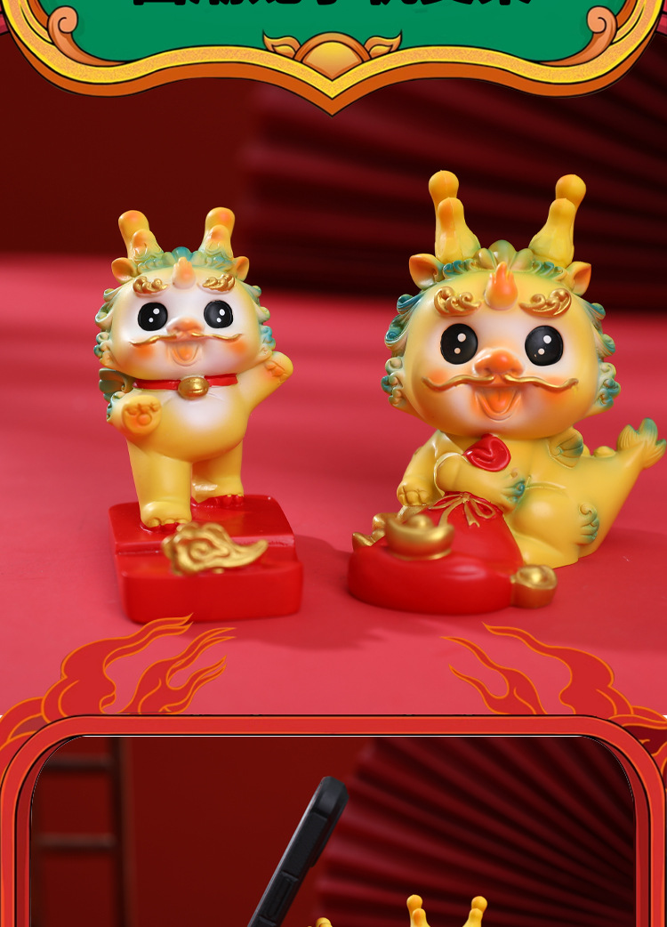 生肖国潮龙汽车中控台装饰摆件蛋糕烘培龙宝宝周岁装饰摆件礼品批
