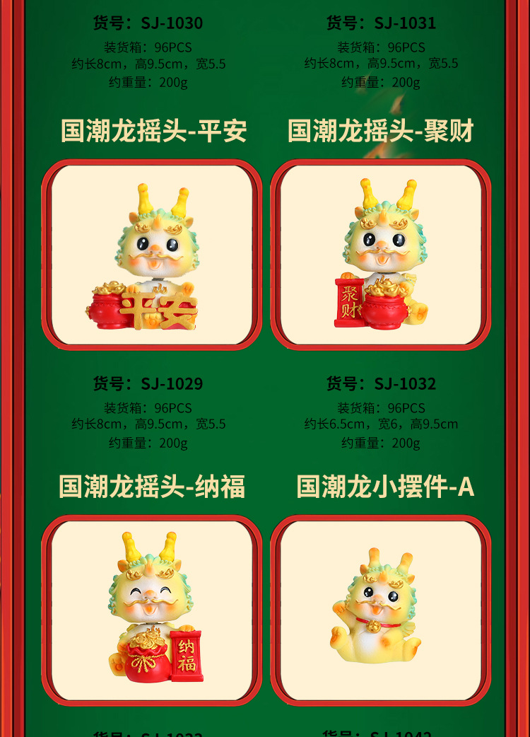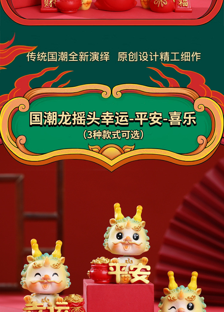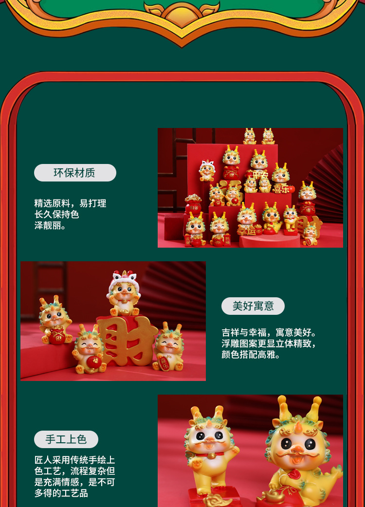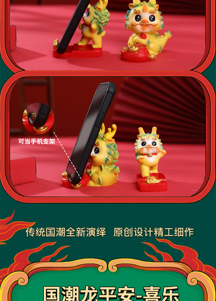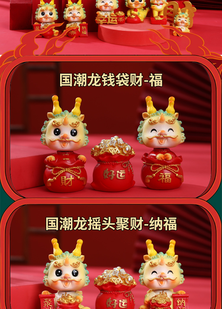 生肖国潮龙汽车中控台装饰摆件蛋糕烘培龙宝宝周岁装饰摆件礼品批