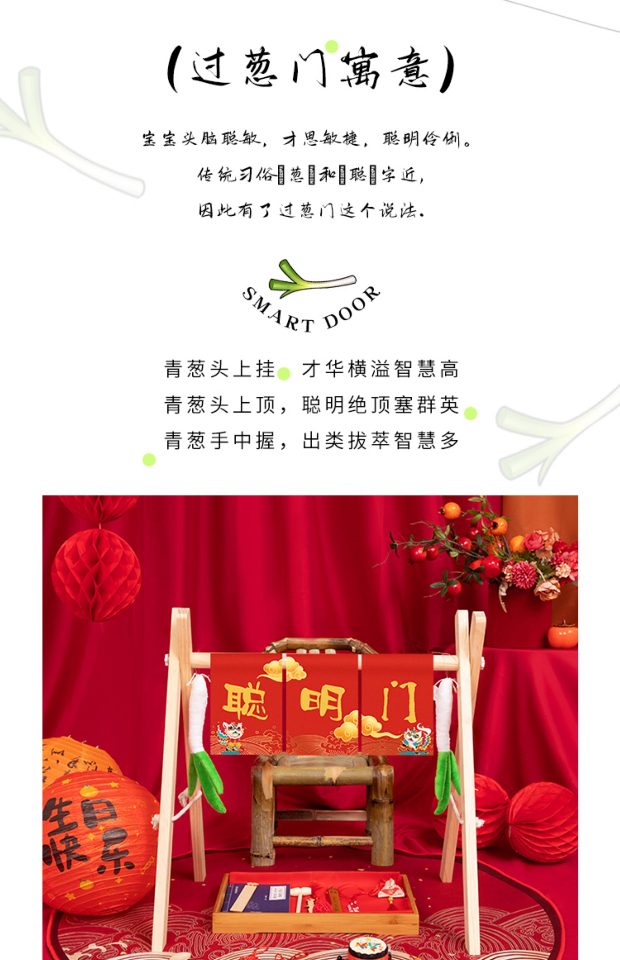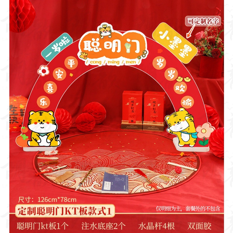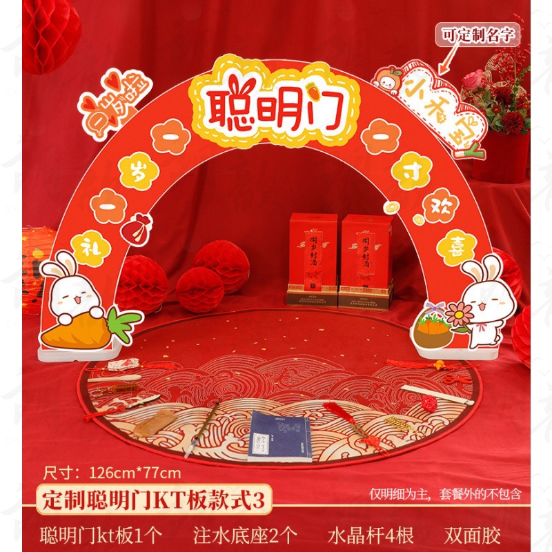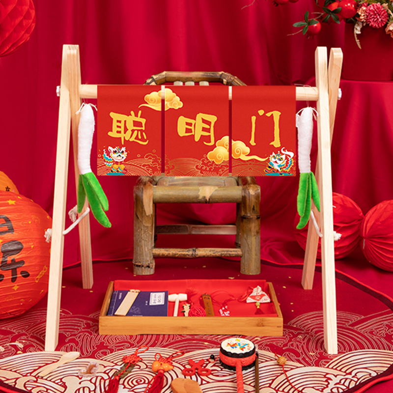 中式宝宝周岁礼宴生日布置抓周用品过葱门仪式聪明门装饰道具木架