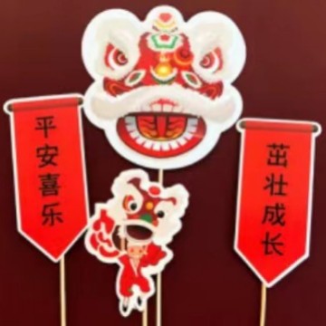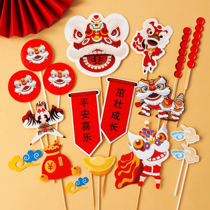 中式舞狮生日蛋糕装饰糖葫芦醒狮平安喜乐宝宝周岁中国风蛋糕插件