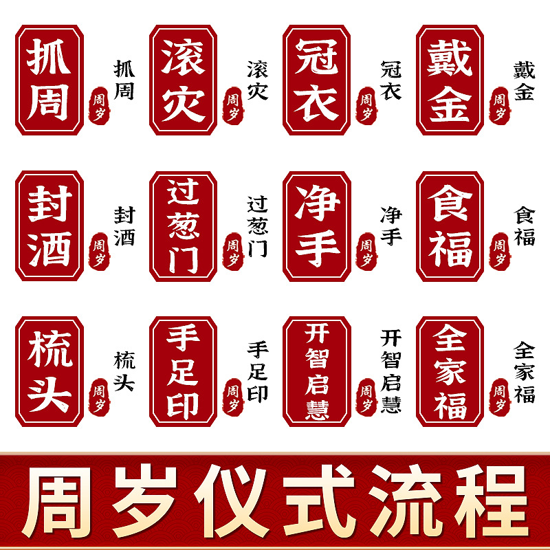 周岁仪式拍照道具宝宝生日抓周用品布置聪明门启智锣食福碗封酒贴