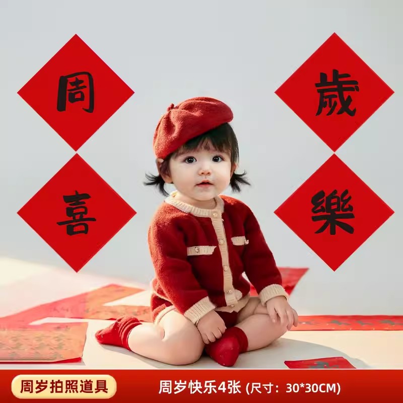 周岁拍照道具小对联抓周用品兔宝宝一周岁生日男女孩布置仪式装饰