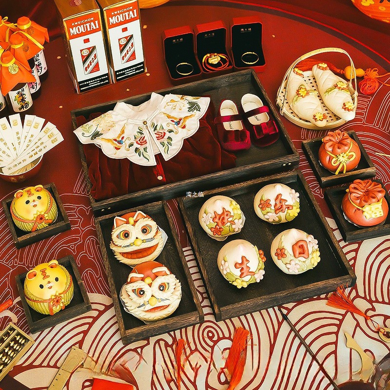 花馍馍周岁托盘衣服礼服盘子宝宝抓周礼用品生日布置仪式拍照批发