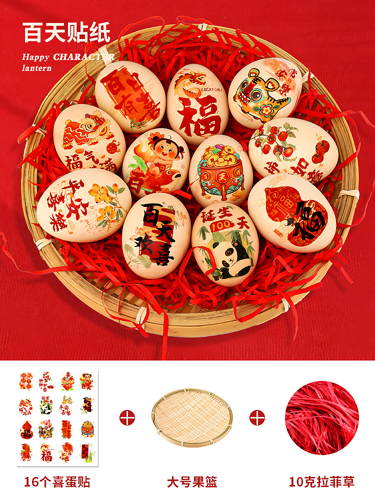 周岁鸡蛋贴喜蛋贴纸生孩子百日宴宝宝生日满月礼抓周装饰布置拍照
