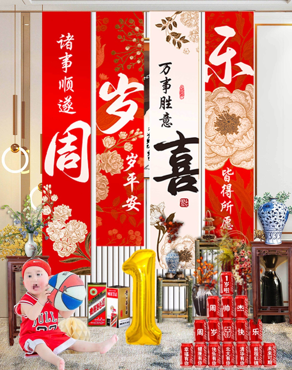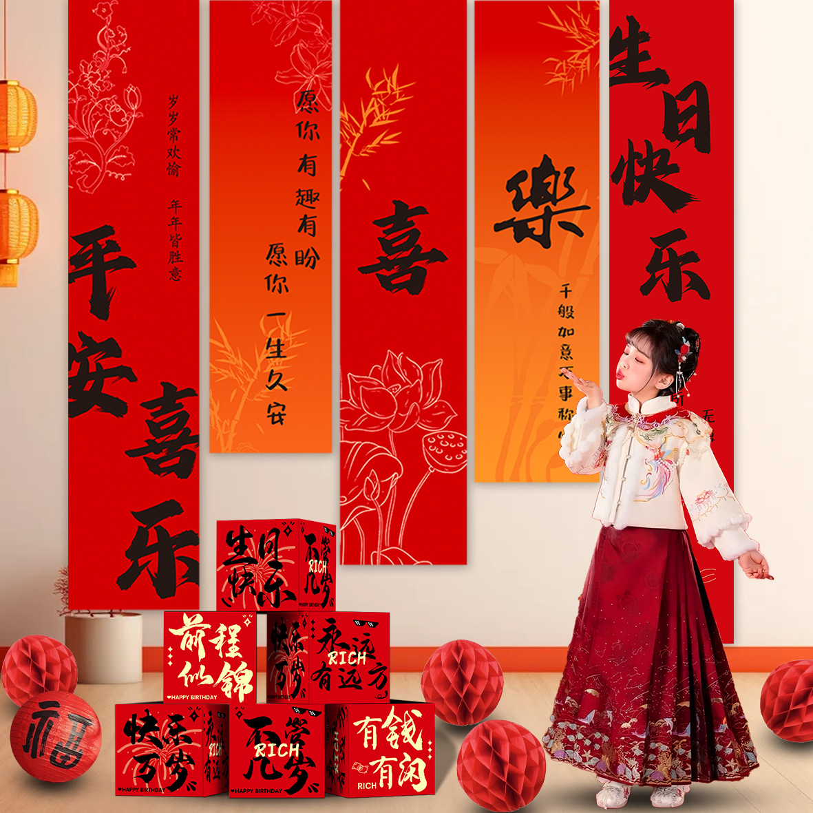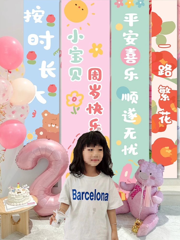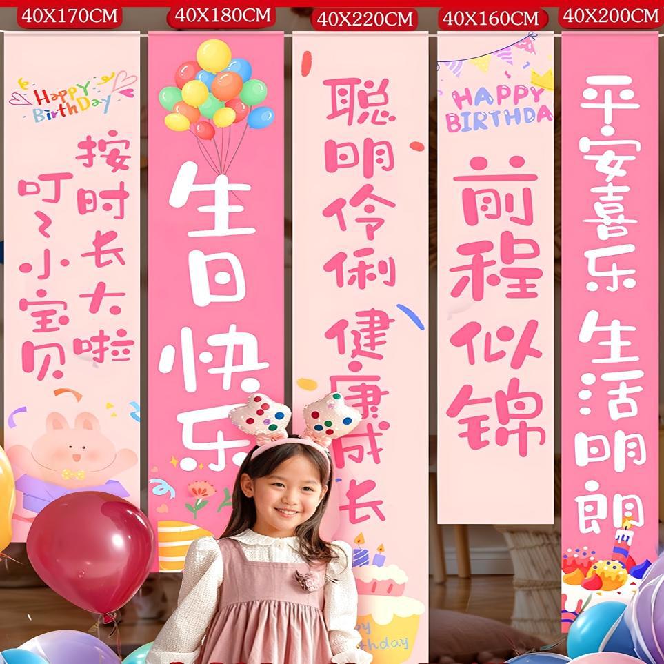 生日背景布挂布儿童条幅布置装饰场景男孩女孩快乐派对背景墙挂布